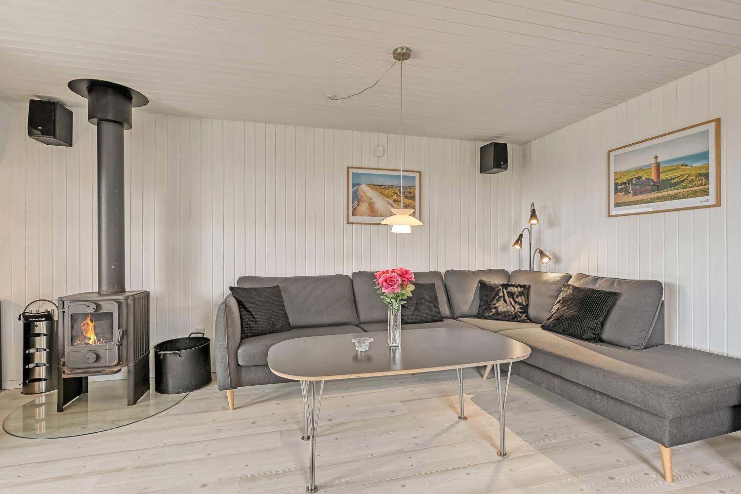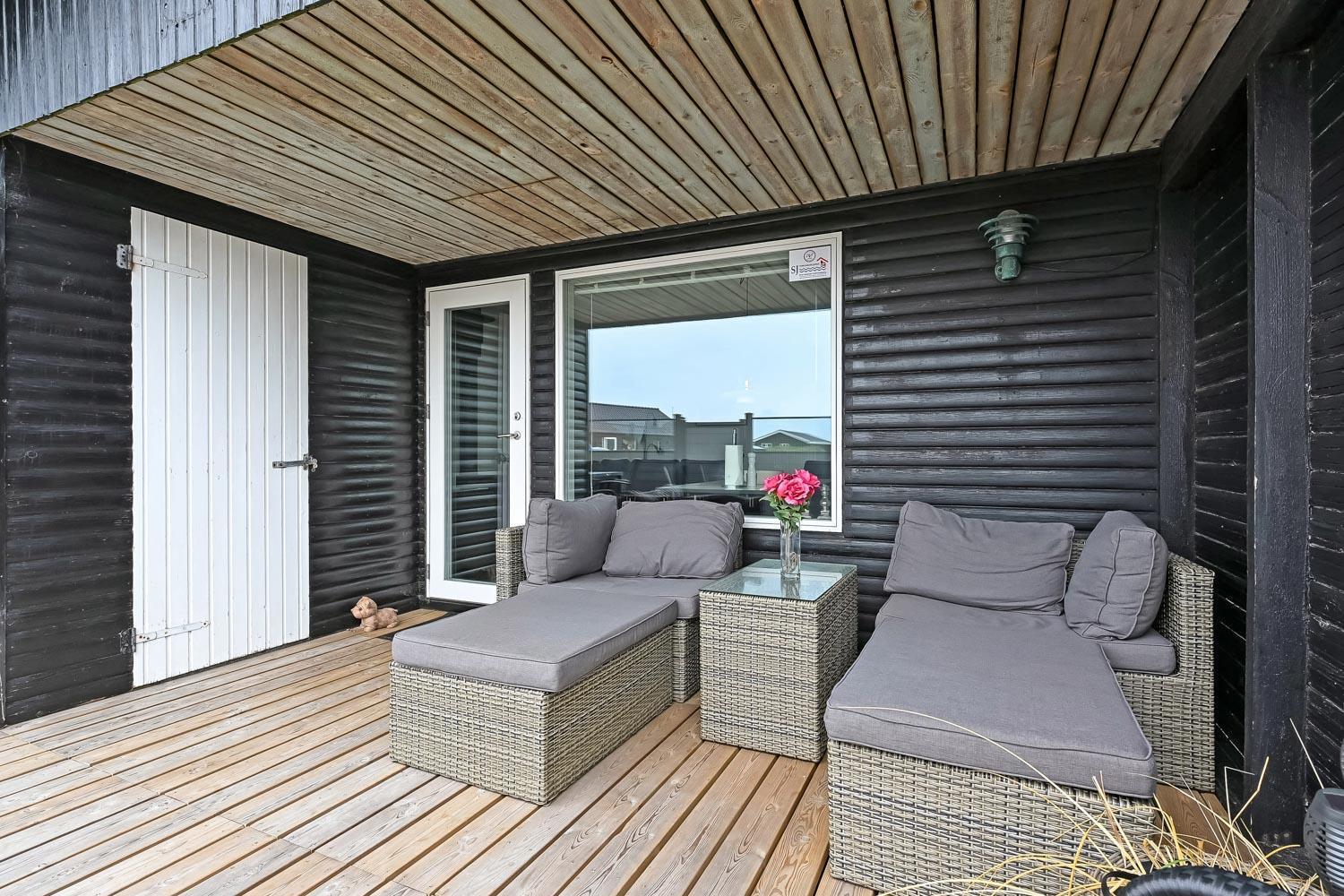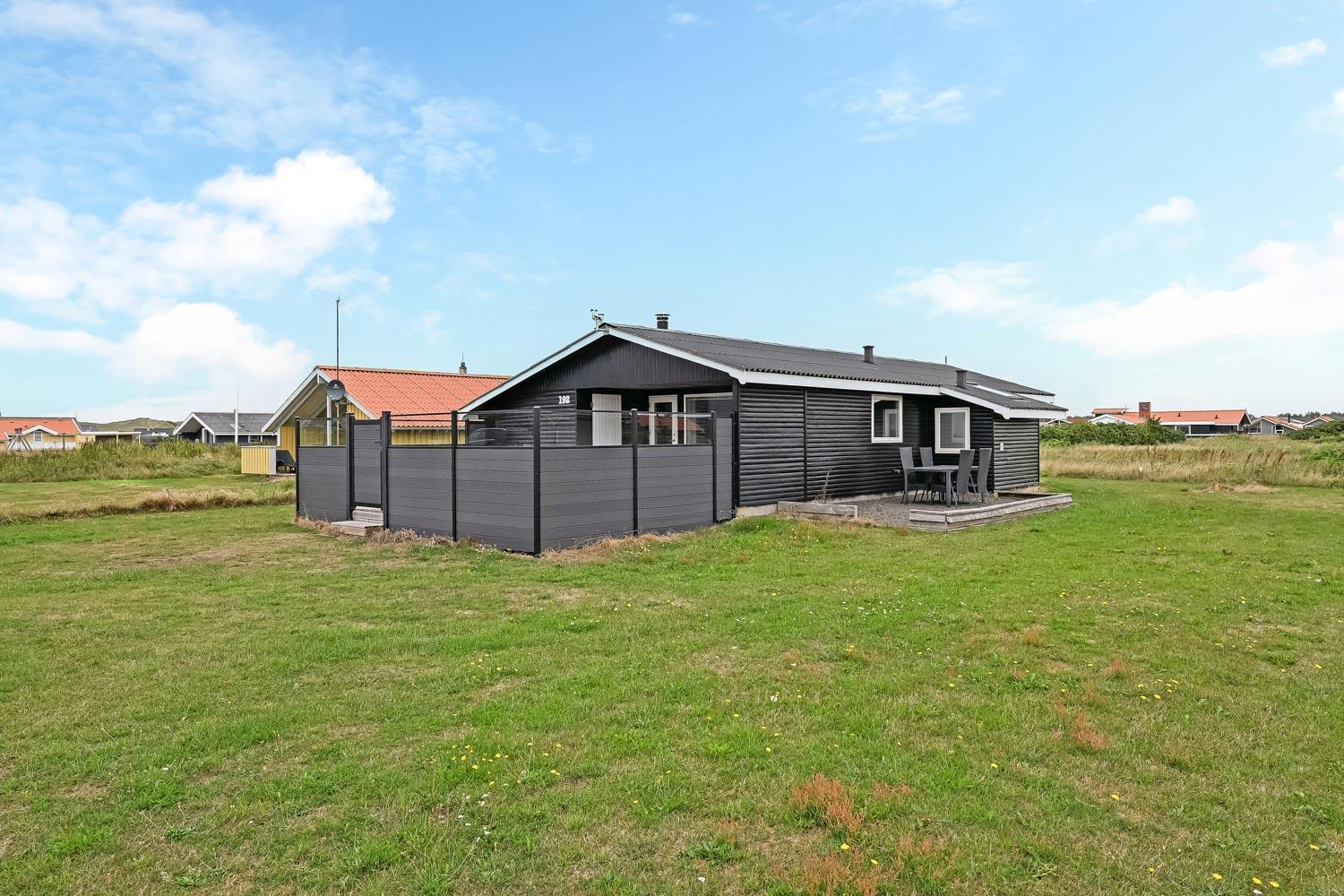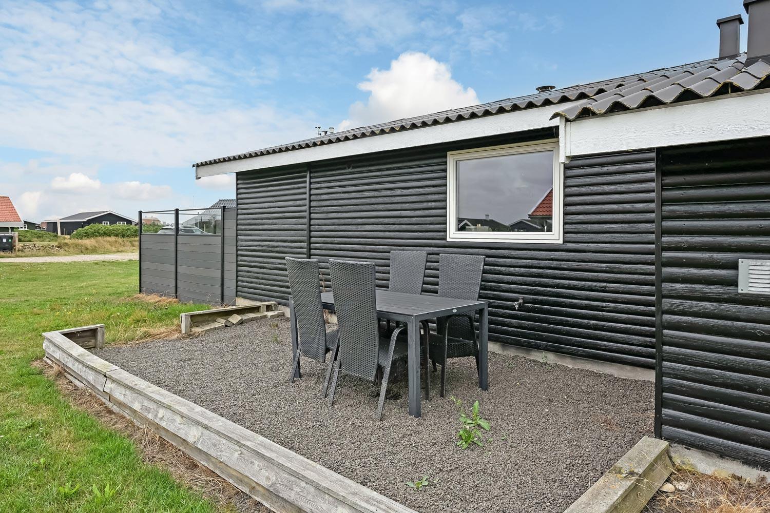 Dette skønne feriehus ligger på en 768 m2 grund i gåafstand fra Vesterhavet og byder på en fantastisk træterrasse, der er delvis overdækket og indhegnet. Her er der både havemøbler, solvogne og grill til rådighed, hvor solvogne og grill kan flyttes efter behov. Her er der rig mulighed til at sole sig, nyde en kop kaffe eller grille, når vejret byder på det. I både Vejlby Klit, hvor huset ligger og omegn er der mange muligheder til at få tiden til at gå. Man kan tage af sted alle sammen og gå en tur langs stranden, som kun er få hundrede meter fra huset, samle sten og muslinger, bygge sandslotte, flyve med drage, cykle, fiske og så meget mere. Ikke langt fra Vejlby Klit kommer man i bil hurtigt til havnebyerne Lemvig og Thyborøn, hvor man kan nyde en is på havnen, købe frisk fisk eller shoppe i de lokale butikker. Feriehuset er ideelt til den lille familie eller par, som ønsker at få Vesterhavsluft blæst om ørene og nyde en pause fra hverdagen.
