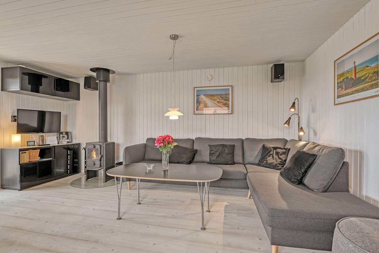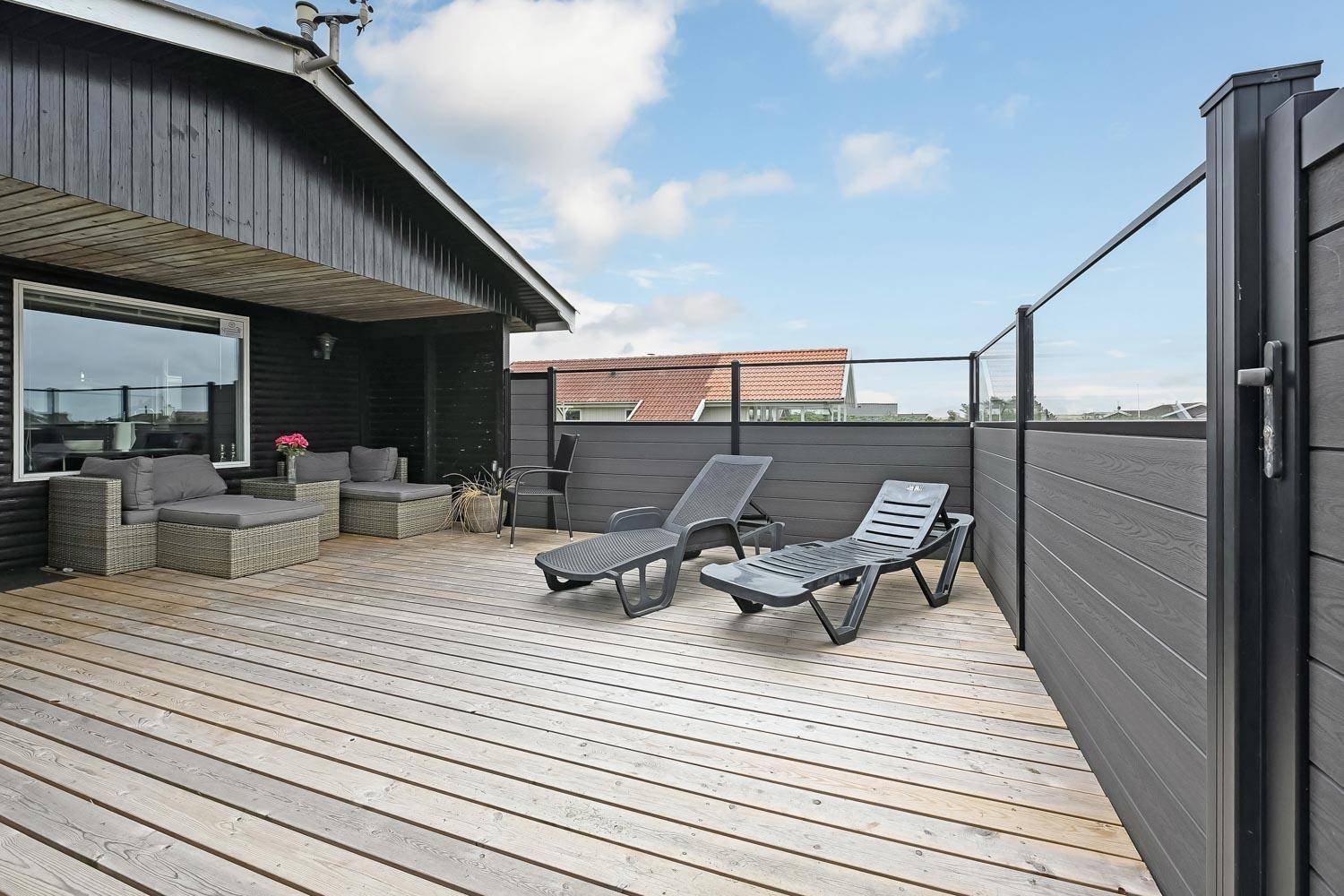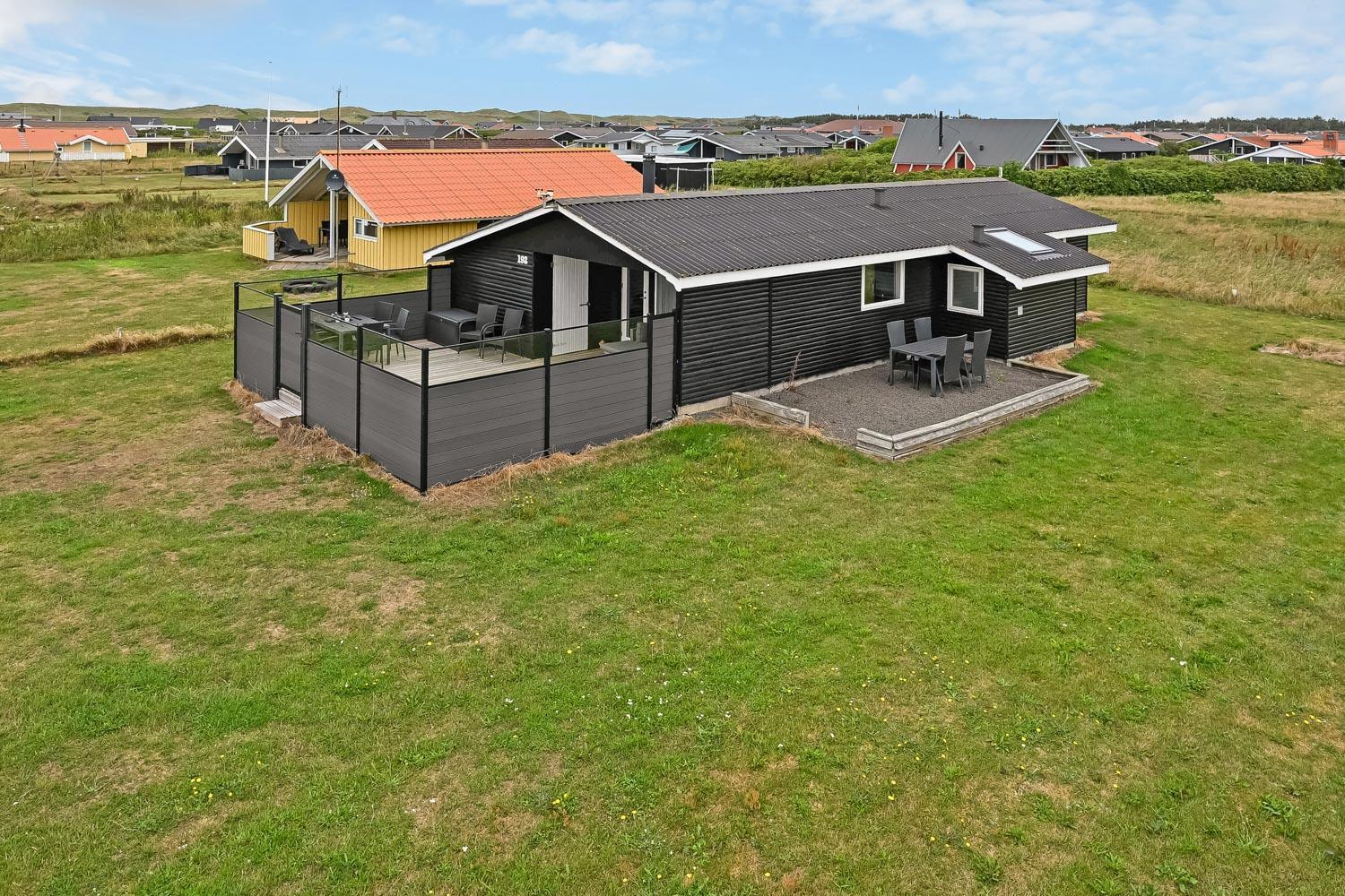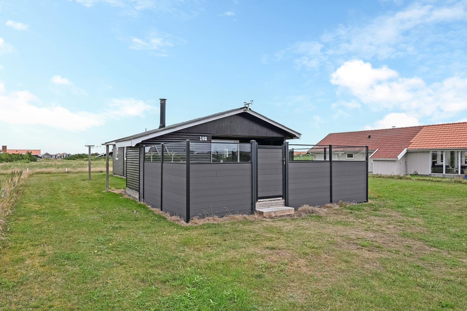 Dette skønne feriehus ligger på en 768 m2 grund i gåafstand fra Vesterhavet og byder på en fantastisk træterrasse, der er delvis overdækket og indhegnet. Her er der både havemøbler, solvogne og grill til rådighed, hvor solvogne og grill kan flyttes efter behov. Her er der rig mulighed til at sole sig, nyde en kop kaffe eller grille, når vejret byder på det. I både Vejlby Klit, hvor huset ligger og omegn er der mange muligheder til at få tiden til at gå. Man kan tage af sted alle sammen og gå en tur langs stranden, som kun er få hundrede meter fra huset, samle sten og muslinger, bygge sandslotte, flyve med drage, cykle, fiske og så meget mere. Ikke langt fra Vejlby Klit kommer man i bil hurtigt til havnebyerne Lemvig og Thyborøn, hvor man kan nyde en is på havnen, købe frisk fisk eller shoppe i de lokale butikker. Feriehuset er ideelt til den lille familie eller par, som ønsker at få Vesterhavsluft blæst om ørene og nyde en pause fra hverdagen.