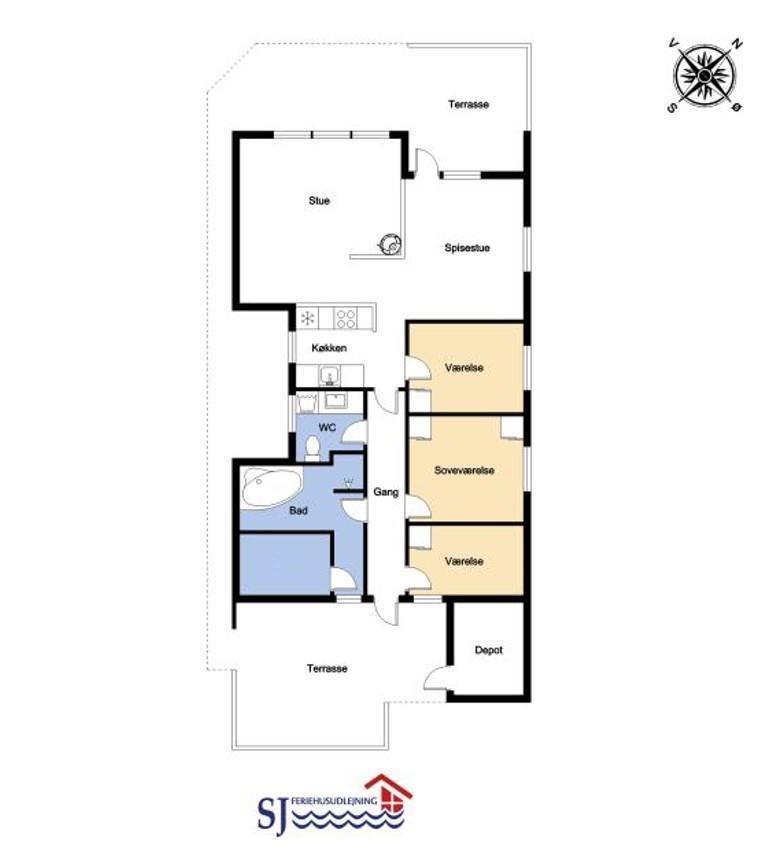 Huset er særdeles velholdt - fremstår lyst og venligt med komfortabelt indrettet stue med forsænket kaminafdeling. Der er gratis trådløst internetadgang i huset. I stuen er der Farve-TV med DVD, DR1 og Apple-TV, så du kan streame egne programmer samt en brændeovn. Virkelig godt indrettet køkken med elkomfur med keramiske kogeplader, køleskab med frostboks, mikroovn og opvaskemaskine. Gulv i stue og køkken er træ. 2 badeværelser. Det ene med Whirlpool og bruseafdeling. Det andet med WC og vaskemaskine. 3 soverum: 1 med dobbeltseng, 1 med køjer og 1 med 3/4 seng. Der er installeret varmepumpe i huset og det betyder at du som gæst kan spare op til 50% på din elvarmeregning - varmepumpen leverer op til 6 gange så meget effekt som den bruger, det betyder at for hver kilowatt-time pumpen bruger yder den varme svarende til ca. 6 kW energien udnyttes dermed langt bedre.