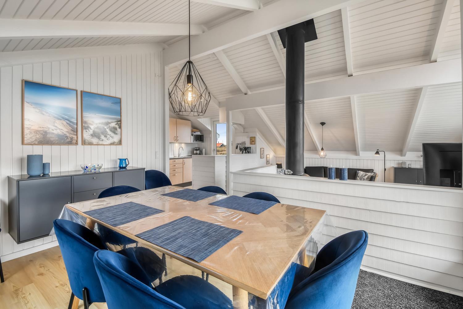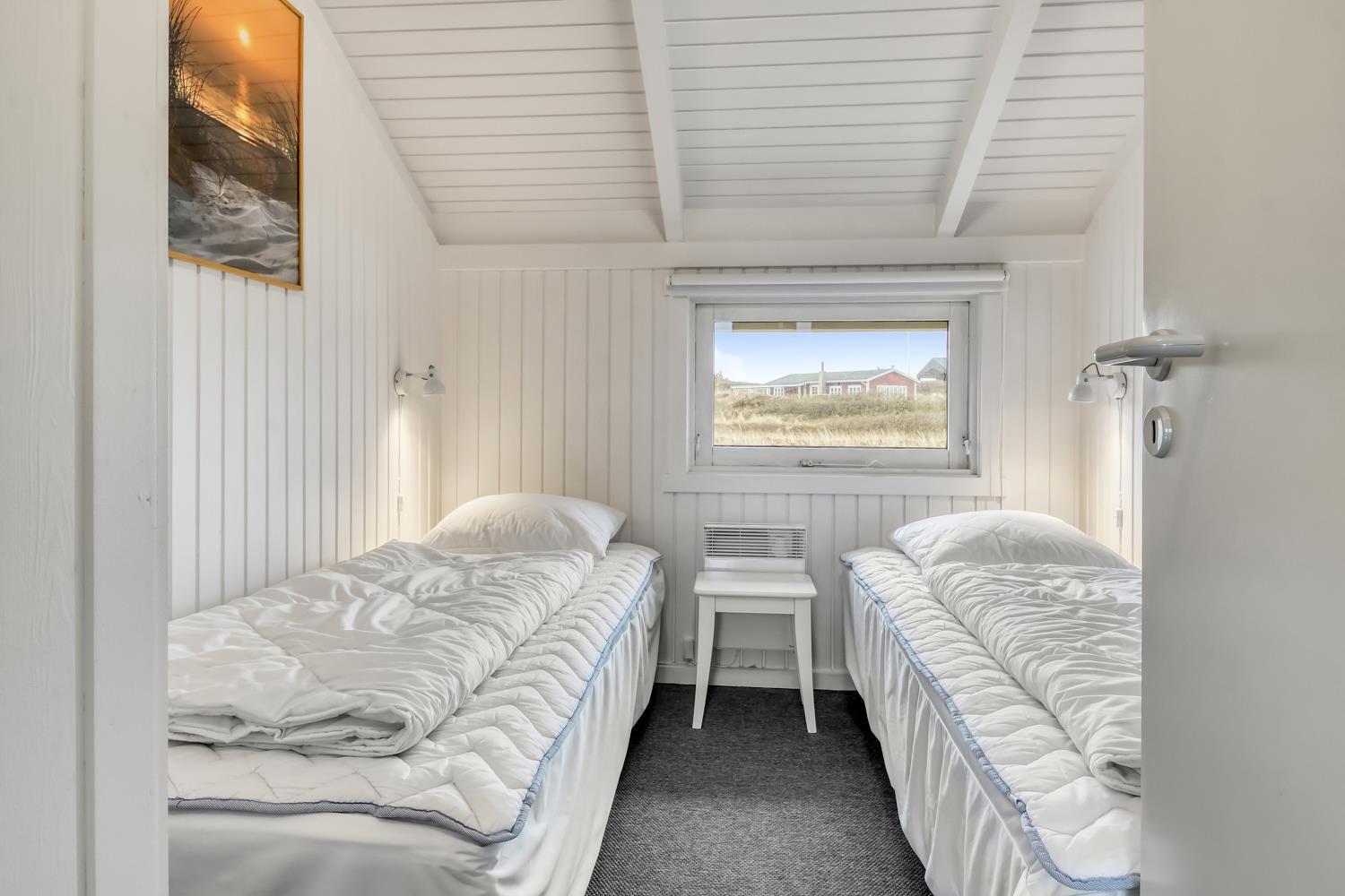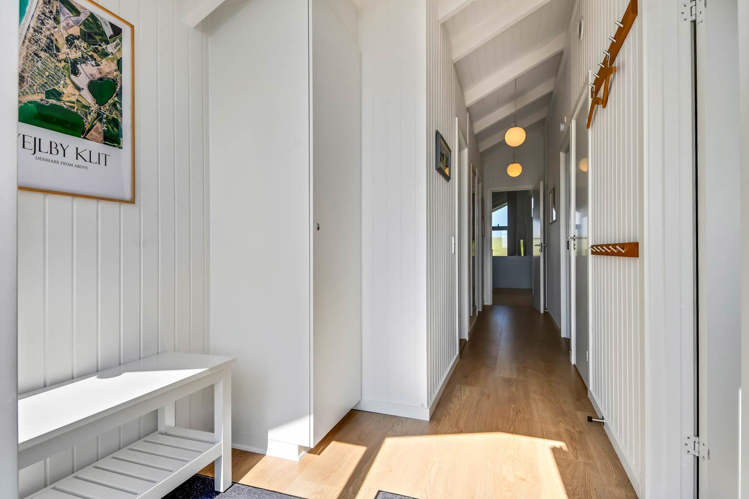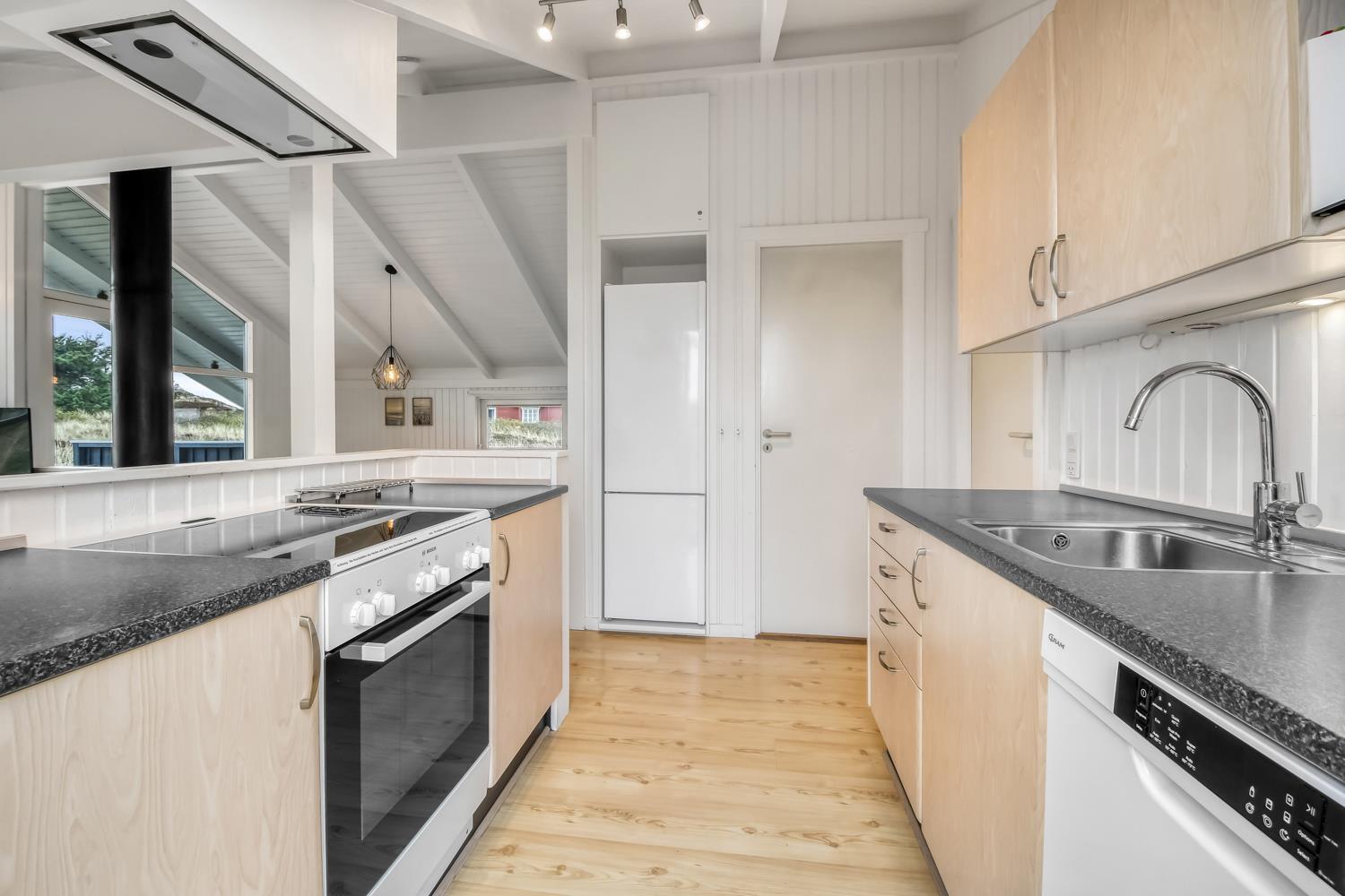 Godt indrettet træhus på 92 m2 med loft til kip. Huset blev bygget i 1986 og er senest renoveret i foråret 2024. En lys og praktisk entré med plads til både overtøj og fodtøj byder jer velkommen. Tre soveværelser (1DS, 1DS, 2ES), max. fire personer. Husets køkken, spisestue og opholdsstue smelter sammen i ét stort fantastisk rum, hvor der er udkig til de skønne klitområder omkring huset. Køkkenet har komfur med glaskeramiske kogeplader, emhætte, mikroovn, opvaskemaskine og kølefryseskab. Opholdsstuen, som er forsænket, har lædermøbler og en dejlig brændeovn, som sammen med varmepumpen kan hjælpe med at reducere varmeudgiften. Gratis fibernet. TV med danske og tyske programmer, DVD-afspiller, CD-afspiller, samt DAB-radio m/ indbygget bluetooth til aflytning af f.eks. musik eller lydbøger. Der er praktiske trægulve i størstedelen af huset, og gulvtæpper i to ud af tre soverum. Huset har to badeværelser, som begge har toilet, håndvask og bruser. Det nyeste badeværelse fra 2024 har derudover også spa, sauna og gulvvarme, imens det andet badeværelse har vaskemaskine. Huset har et depotrum til de ting, som man gerne vil gemme væk, men alligevel har brug for hurtig og nem adgang til. I skuret til venstre for hoveddøren bliver grill, parasol, askespand, mv. opbevaret. Har man el-bil eller en Plug-In hybrid, så er der opsat ladeboks ved huset. Ikke-ryger hus. Husdyr ikke tilladt.