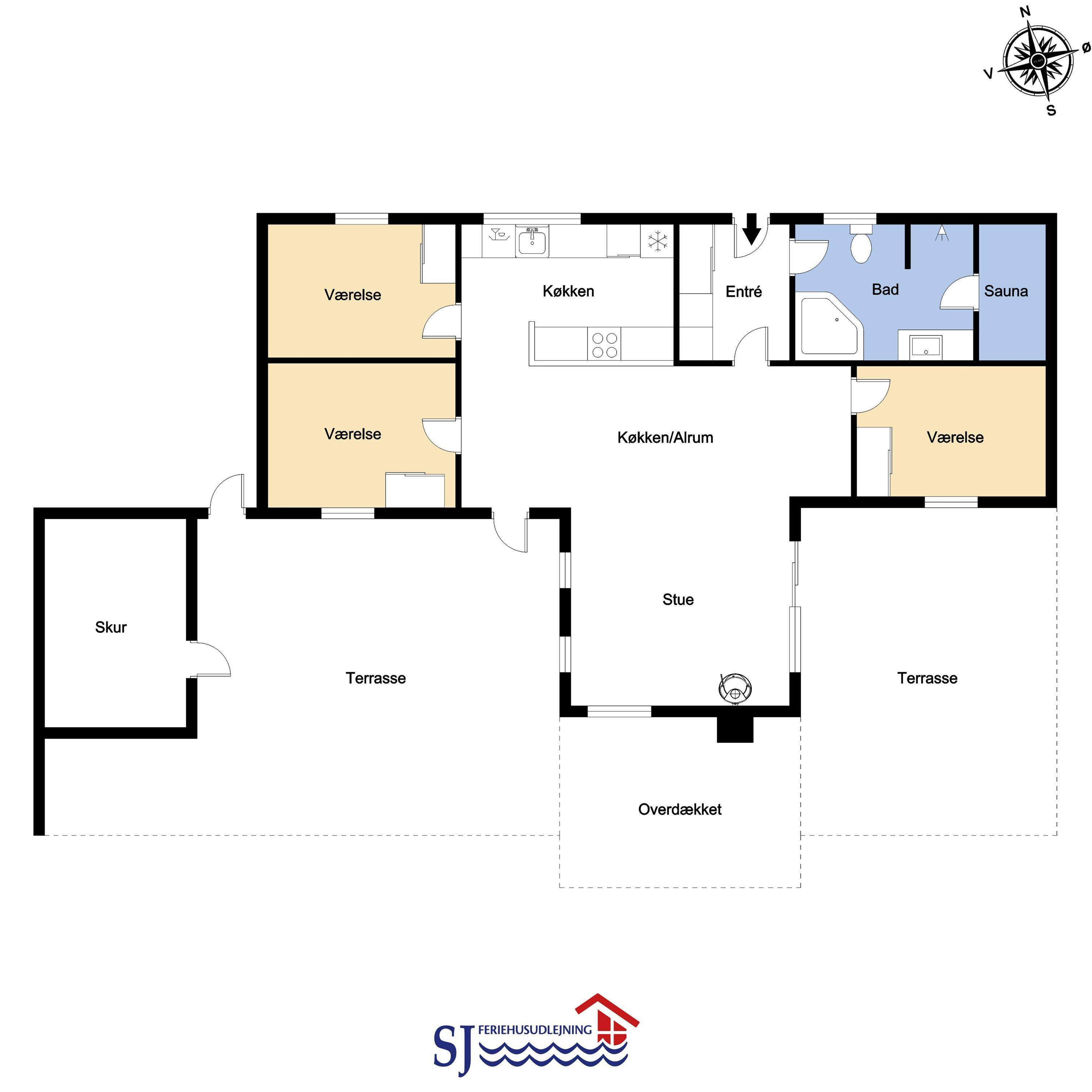 Parker bilen på den anlagte gårdsplads og begynd udpakningen. En dejlig entre med vaskemaskine og tørretumbler byder jer velkommen og fører jer direkte ind i den lyse og venlige opholdsstue. 3 soverum (1DS, 2ES, 2ES). Dejligt Køkkenhjørne med alt i service og køkkengrej. Quooker Vandhane. Komfur med glaskeramiske kogeplader, emhætte som er integreret i loftet, mikroovn, opvaskemaskine og køleskab med lille fryseboks. Tæt ved køkkenet står spisebordet til 6 personer med en hyggelig bænk og 4 stole. Opholdsstuen har dejlige lædermøbler hvorfra såvel danske som tyske kanaler kan ses på husets fladskærm, der er desuden Chromecast så I kan streame Apps/TV/Radio så I kan streame de ting som I selv har et abonnement til. Varmepumpe og en ny Morsø brændeovn sørger for at huset billigt kan opvarmes på alle årstider. Husets badeværelse har spabad, bruser, toilet, håndvask, klinkegulv med gulvvarme og direkte adgang til saunaen, der er desuden monteret en håndklædetørrer. Praktiske trægulve i hele huset. Ikke ryger hus. Barneseng og højstol til de mindste. Husdyr ikke tilladt.