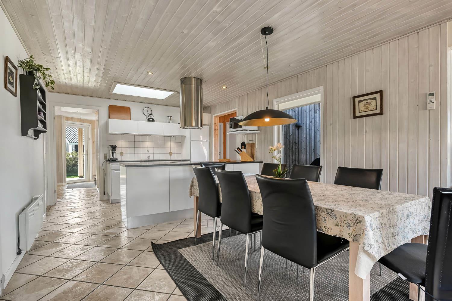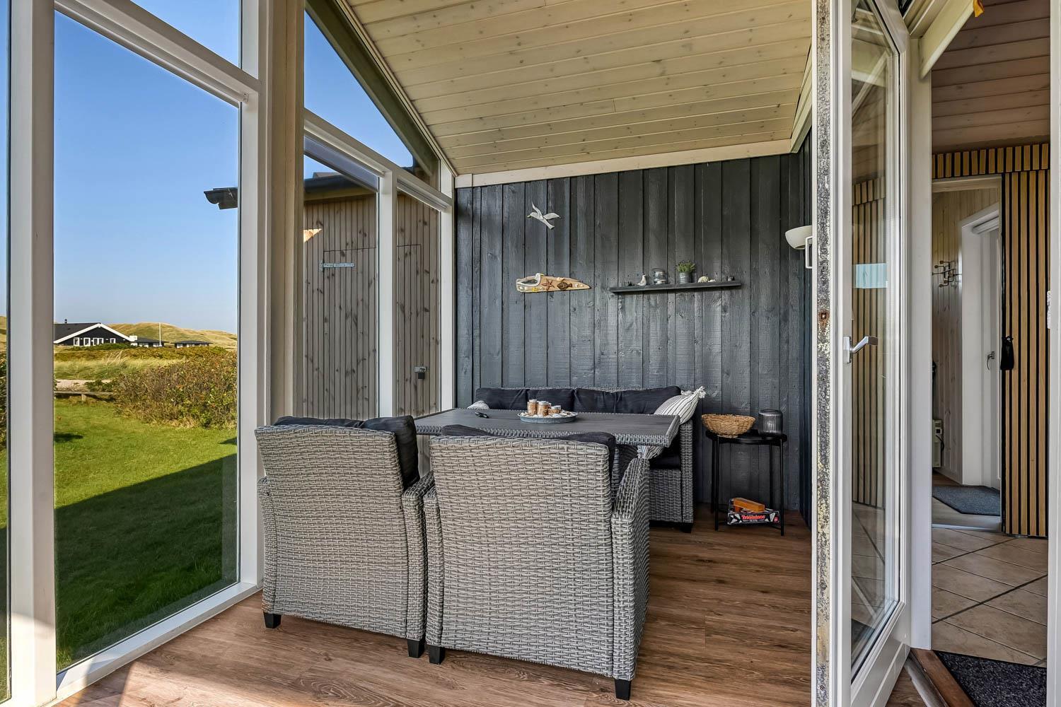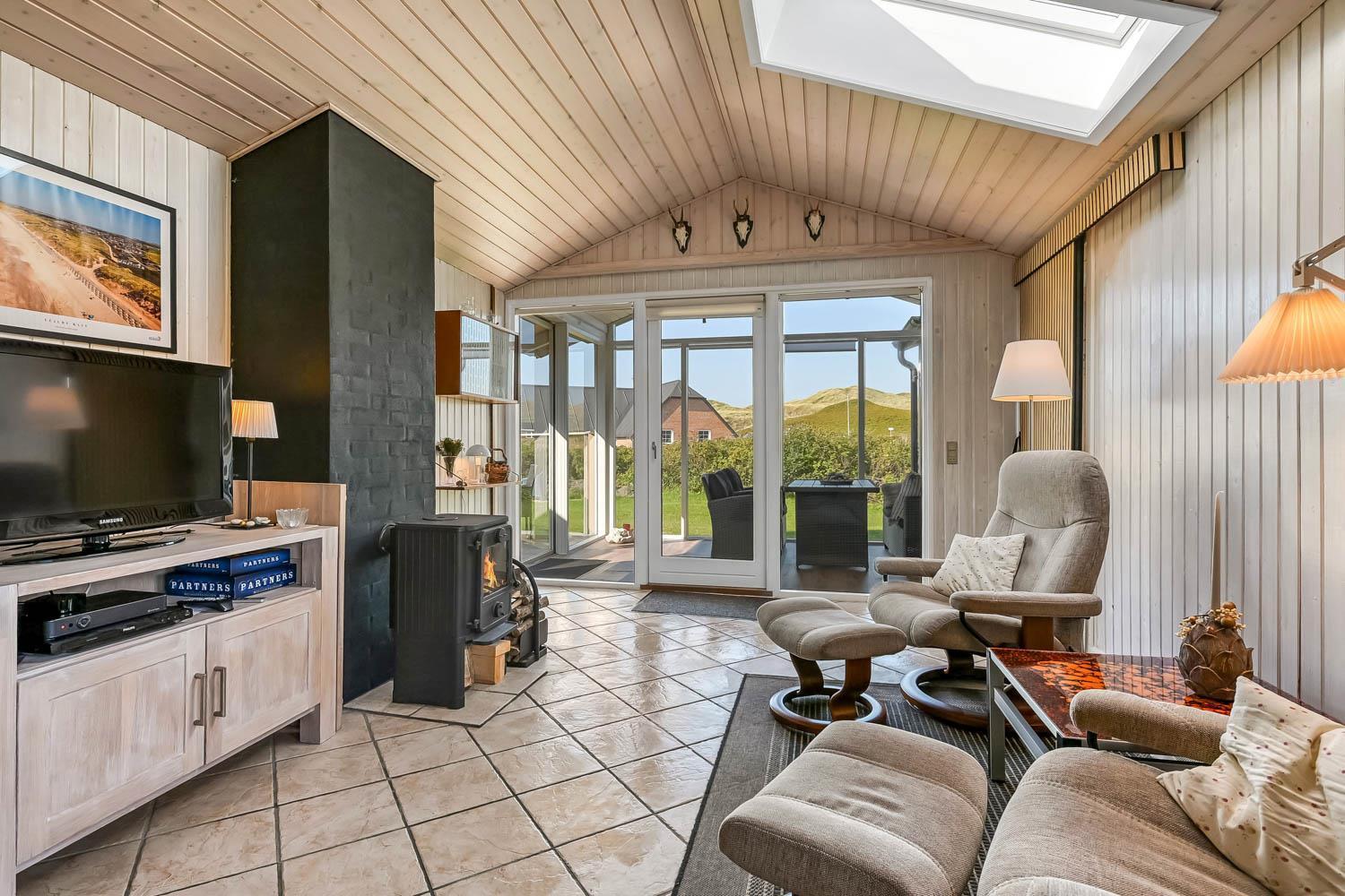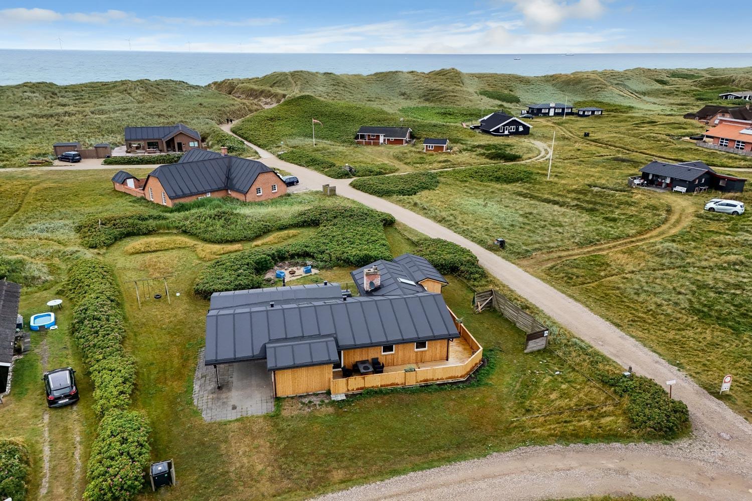 Hyggeligt feriehus beliggende blot 100 m fra Vesterhavet. Huset er lyst og venligt indrettet og har fået lavet en ny havestue som sørger for et meget godt lysindfald i rummet. Der er klinkegulv i køkken og stueafdelingen og vægge og lofter er hvidmalet. Der er lædermøbler i stuen samt TV med danske og tyske kanaler og CD afspiller. Der er trådløs internetadgang. Køkkenet er af nyere dato og indeholder El-komfur, køleskab mit frostbox og opvaskemaskine. Desuden er der monteret en varmepumpe som sørger for en god og billigere opvarmning. Der er 4 soverum i huset (1DS + 1DS + 1DS og 1DS). Ny tilbygning (2022). Her findes det ene soveværelse som har elevationsseng samt lækket badeværelse med klikegulv med gulvvarme, brusenishe, toilet og håndvask. Ekstra badeværelse med toilet, håndvask, bruser og der er herfra adgang til saunaen, der er gulvvarme i rummet. Der findes også en vaskemaskine og en tørretumbler i huset. Carport til bilen. Har man el-bil eller en Plug-In hybrid, så er der ved Ladeboks til Type 2 ladestik. Ikke-ryger hus. Husdyr er ikke tilladt.