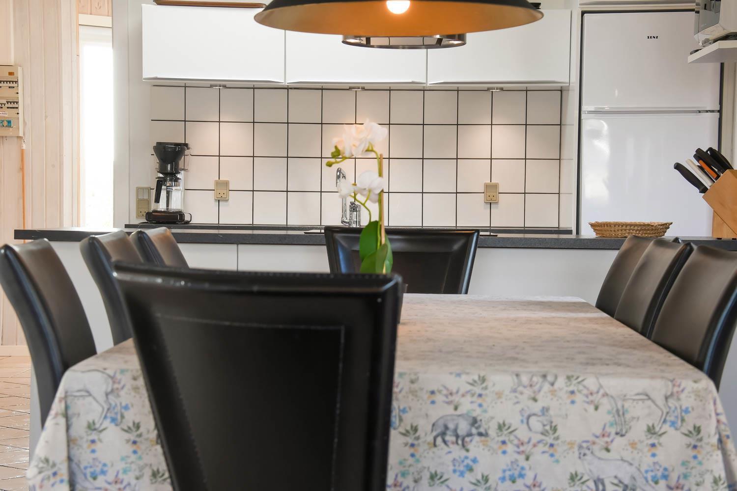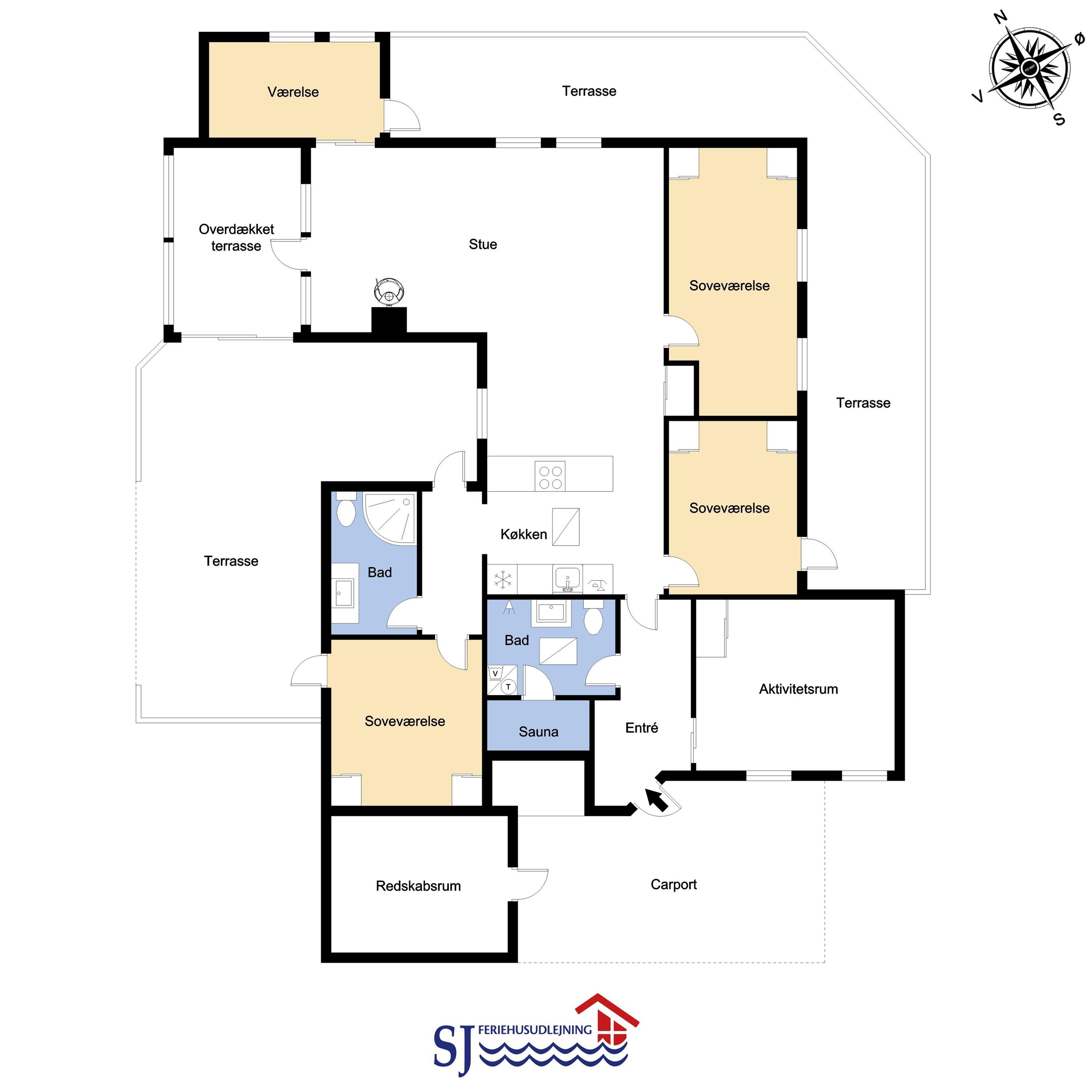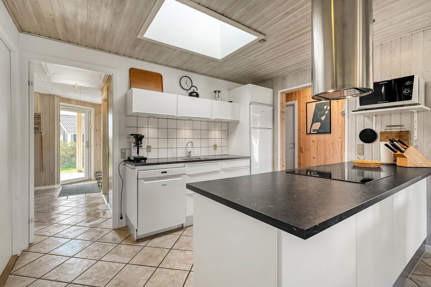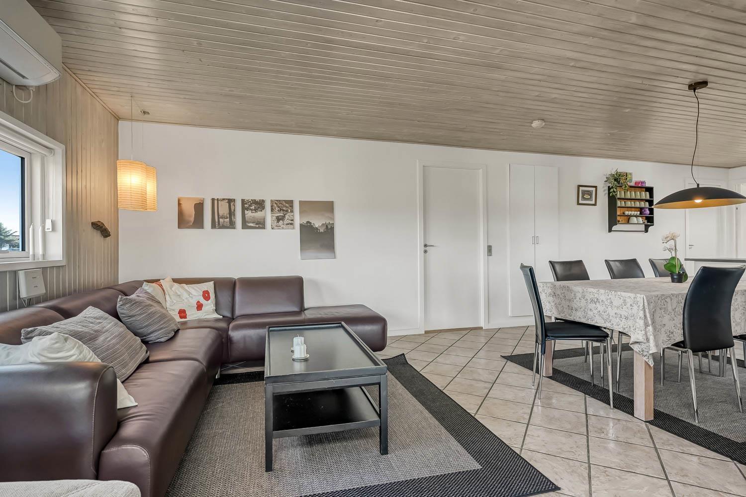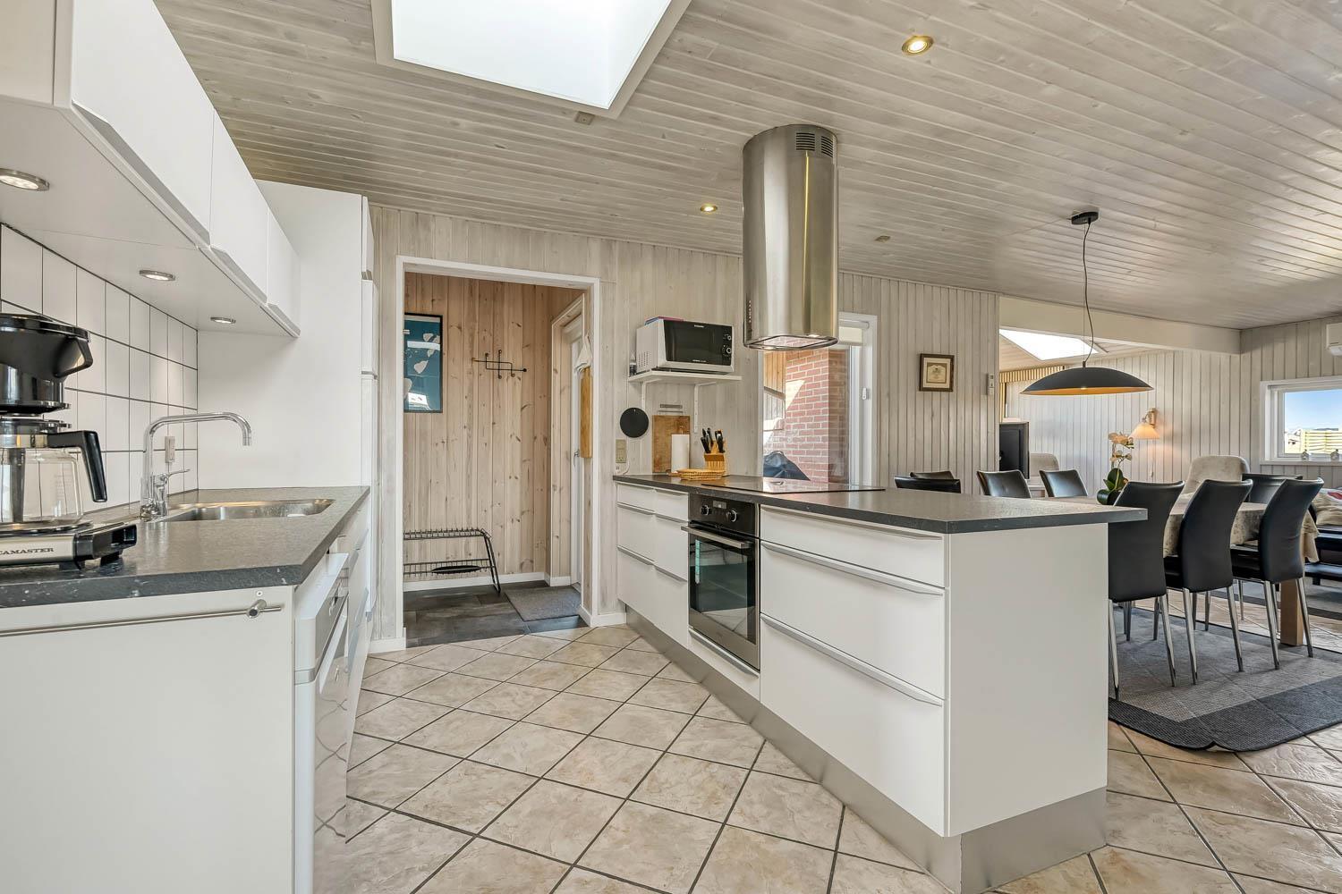 Hyggeligt feriehus beliggende blot 100 m fra Vesterhavet. Huset er lyst og venligt indrettet og har fået lavet en ny havestue som sørger for et meget godt lysindfald i rummet. Der er klinkegulv i køkken og stueafdelingen og vægge og lofter er hvidmalet. Der er lædermøbler i stuen samt TV med danske og tyske kanaler og CD afspiller. Der er trådløs internetadgang. Køkkenet er af nyere dato og indeholder El-komfur, køleskab mit frostbox og opvaskemaskine. Desuden er der monteret en varmepumpe som sørger for en god og billigere opvarmning. Der er 4 soverum i huset (1DS + 1DS + 1DS og 1DS). Ny tilbygning (2022). Her findes det ene soveværelse som har elevationsseng samt lækket badeværelse med klikegulv med gulvvarme, brusenishe, toilet og håndvask. Ekstra badeværelse med toilet, håndvask, bruser og der er herfra adgang til saunaen, der er gulvvarme i rummet. Der findes også en vaskemaskine og en tørretumbler i huset. Carport til bilen. Har man el-bil eller en Plug-In hybrid, så er der ved Ladeboks til Type 2 ladestik. Ikke-ryger hus. Husdyr er ikke tilladt.