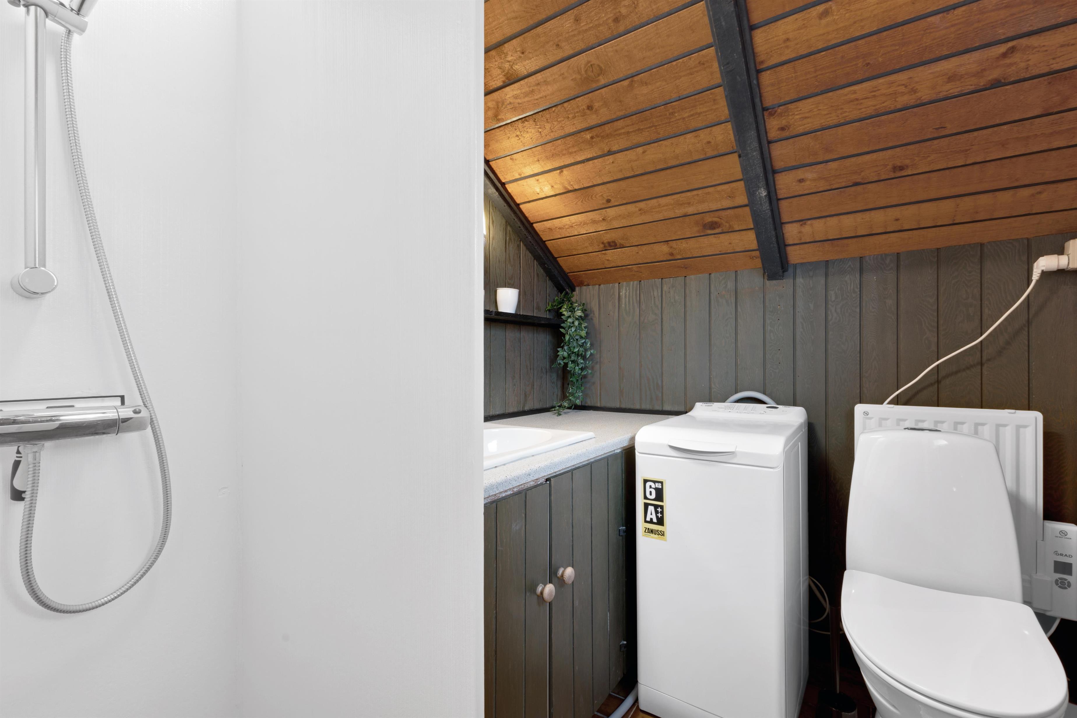 Huset består af et stort køkken-stue-alrum og så er der sove- og badeværelsesafdelingen. Fra begge afdelinger er der direkte adgang til det store, indhegnet terrasseanlæg. Nyt køkken med glaskeramisk komfur, mikrobølgeovn, køle-/fryseskab, opvaskemaskine og miniovn. Herfra er der kort vej til den store sofagruppe med sofabord i stuen hvortil der hører et smart-tv med sound bar, danske og tyske programmer samt mulighed for streaming af TV / radio / Apps via Chromecast. Så har du en mobiltelefon eller en anden devise med kan du streame hvad du nu har abonnement. Har man lyst til radio eller musik kan i høre det fra TV, PlayStation 3 eller fra højtaler med mulighed for at tilslutte IPhone. Til stuen hører også en brændeovn, så man får den helt rigtige sommerhusstemning under knasterne på loftet og der er desuden installeret varmepumpe som hjælper med et lavere forbrug. Mindre badeværelset består af et toilet, håndvask og bruser samt en lille vaskemaskine, tørretumbler og i samme afdeling af huset er der 2 soveværelser. Et soverum med dobbeltseng (140 x 200), og det andet soverum er med 2 enkelt senge. Der er også et anneks med 2 senge.
