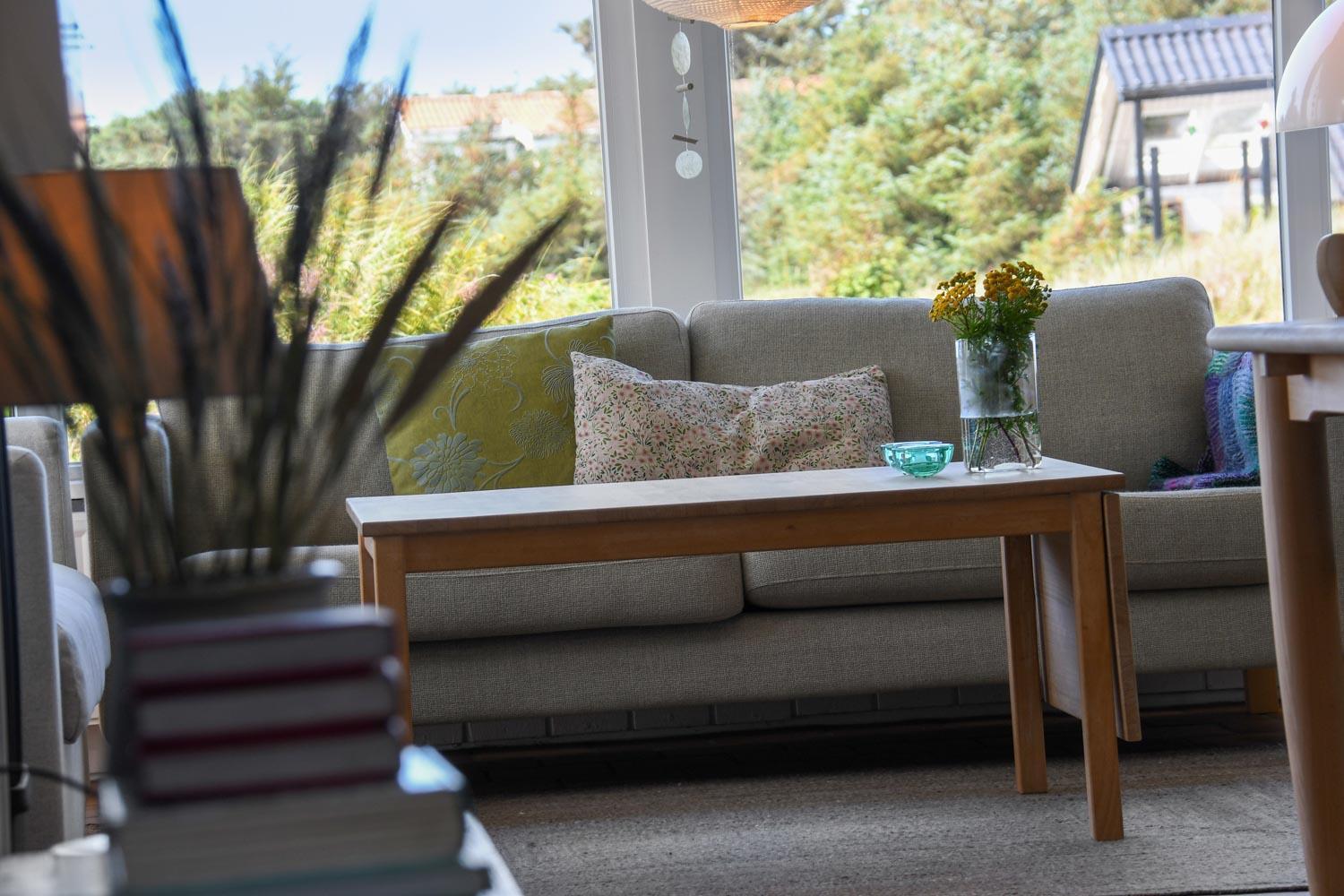 Allerede når bilen rammer grusvejen, med få meter til huset, bliver det klart at beliggenhed og hus er noget ganske særligt. Når man drejer ind på grunden og parkerer bilen ved huset begynder ferien. Huset er 92 m2. En dejlig entre med afhængeplads byder jer velkommen og fører jer direkte ind i et flot, moderne samtalekøkken. Fra både køkken og opholdsstue er er fantastisk udsigt til klitterne. Samtalekøkkenet har alt i service og køkkengrej og er også udstyret med komfur med glaskeramiske kogeplade, emhætte, mikroovn, køleskab med fryseboks og opvaskemaskine. Tæt ved køkkenet står spisebordet som hele familien kan samles ved. Opholdsstuen har dejlige polstermøbler, hvorfra såvel danske som tyske kanaler samt streamingtjenester via Chromecast / Google TV kan ses på fladskærmen som er opsat på væggen. Et yderst energivenligt hus med brændeovn og strømbesparende varmepumpe som sørger for at huset nemt og billigt kan opvarmes, så man kan holde varmen også på kolde efterårsdage. 3 dejlige soveværelser (1DS, 2ES, 1ES) alle med gulvtæpper. Husets badeværelse har bruser, toilet, håndvask og klinkegulv med gulvvarme. Ekstra toilet med håndvask, vaskemaskine og gulvvarme. Barnestol forefindes. Alle opholdsrum har klinkegulv som er meget rengøringsvenligt. Dejligt aflåseligt skur til opbevaring af cykler eller lignende. Her er der også installeret 3-faset 220 volt cee(blå) samt 380 volt cee (rød) 16amp stik, der kan lade op til 11 kWh. Så har man el-cykel, el-bil eller en Plug-In hybrid, så er der mulighed for opladning ved huset. Ikke ryger hus. Husdyr er ikke tilladt. Schönes Schuppen zum Aufbewahren von Fahrräder u.a. Es gibt ein einen 3 Fasen 16 A,mp CEE Steck, der bis 11 KwH aufladen können. So haben Sie ein E-Bike oder ein Plug-in-Hydrid Auto können Sie beim Haus aufladen.
