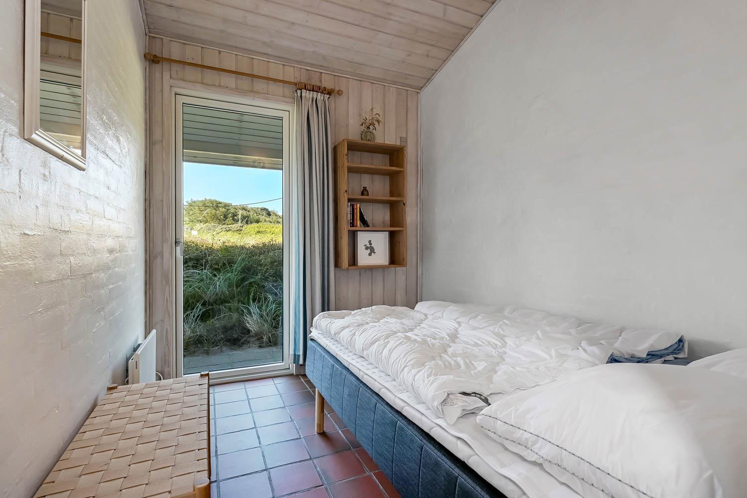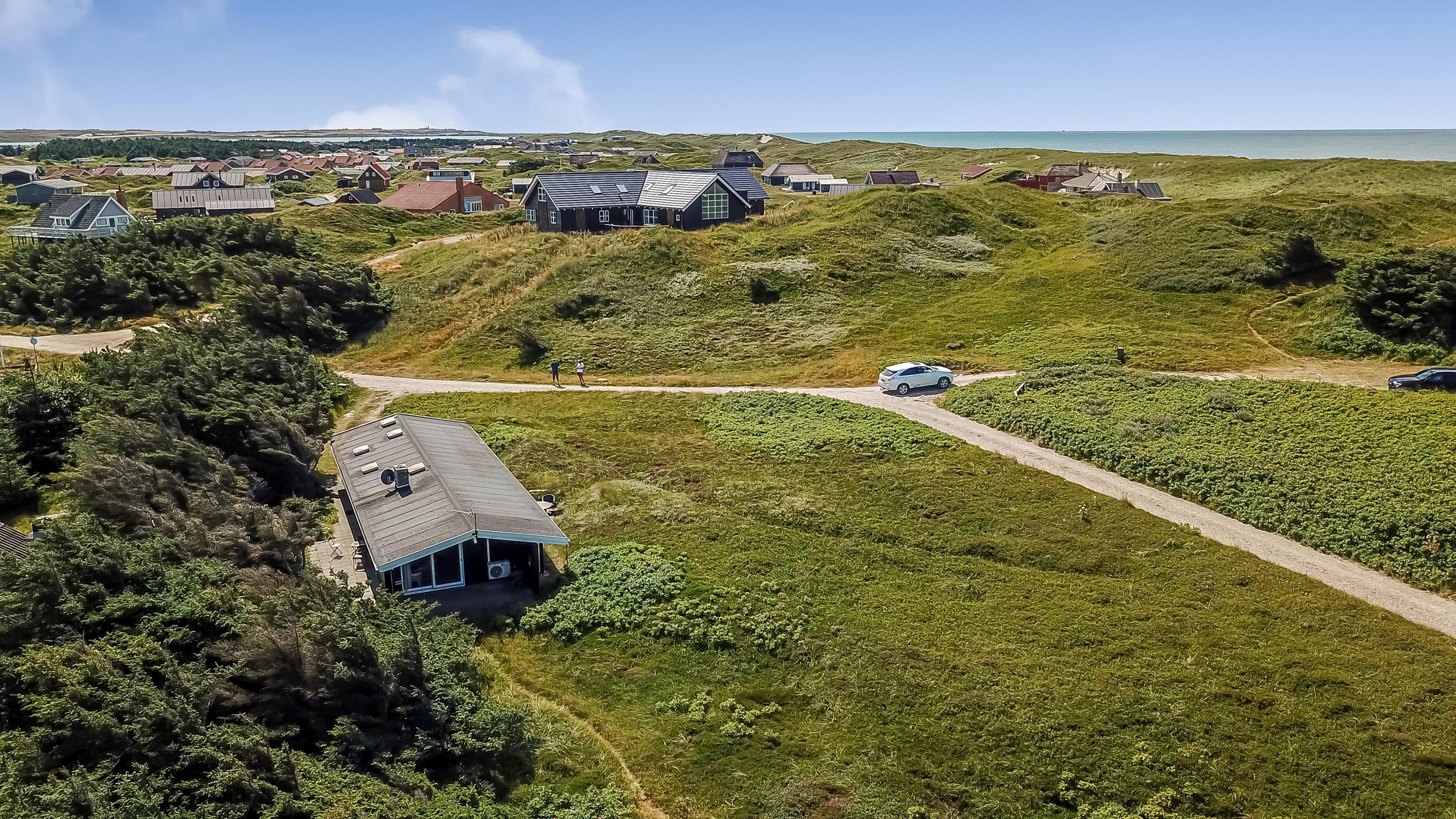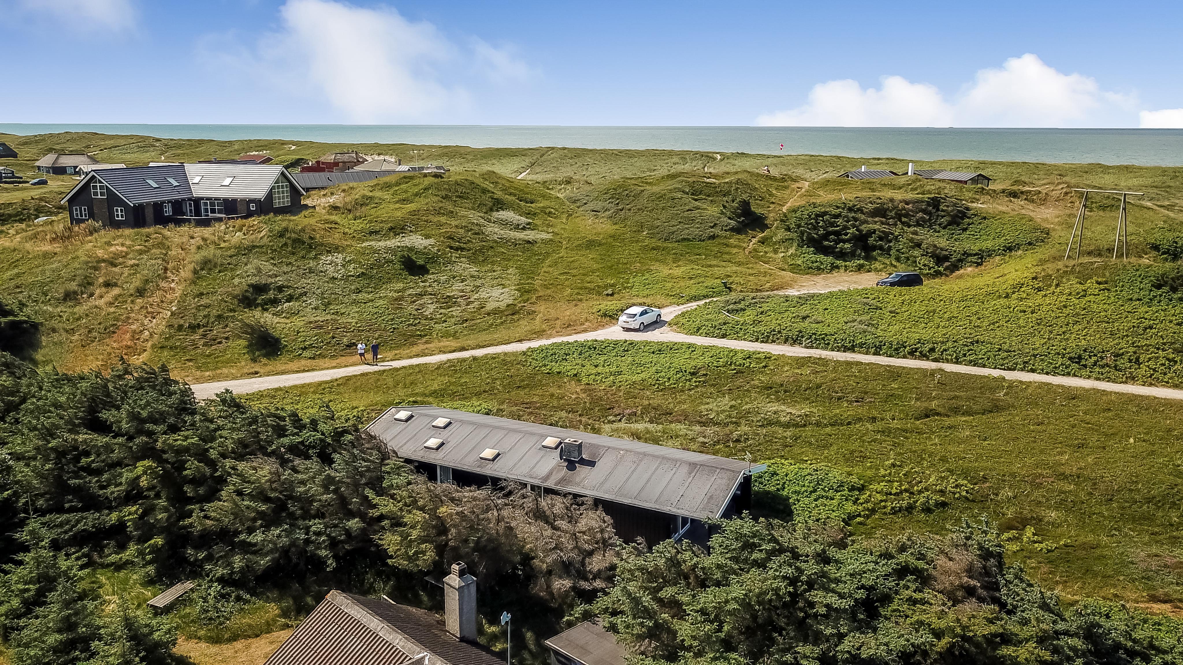 Fra opholdsstuen er der udgang til en dejlig overdækket terrasse med havemøbler, liggestole og grill. Der er også en dejlig morgenterrasse lang med huset. Huset ligger skjult bag en række træer som både giver læ – men også sørger for en særdeles ugeneret ferie. Et rigtig godt sommerhus med den perfekte beliggenhed på en dejlig klitgrund helt tæt på det unikke Vesterhav som er et dagligt besøg værd både på solrige- som på blæsende dage. Hop ind i bilen eller tag cyklen og hent morgenbrød til familien i hos de nærved liggende supermarkeder. Så hvad enten du er til aktiv ferie eller total afslapning, danner dette feriehus en dejlig ramme både hvad angår hus, beliggenhed og omgivelser.