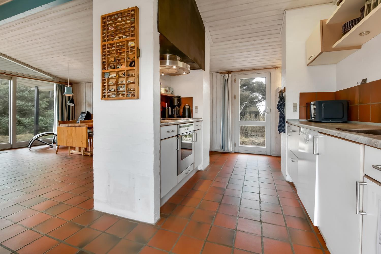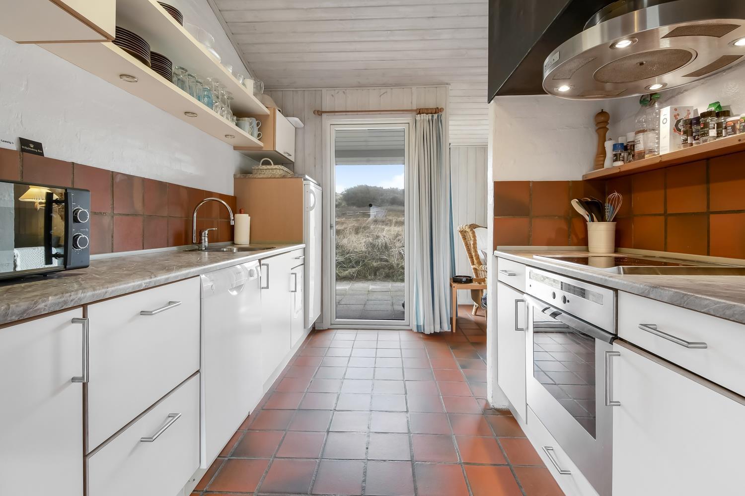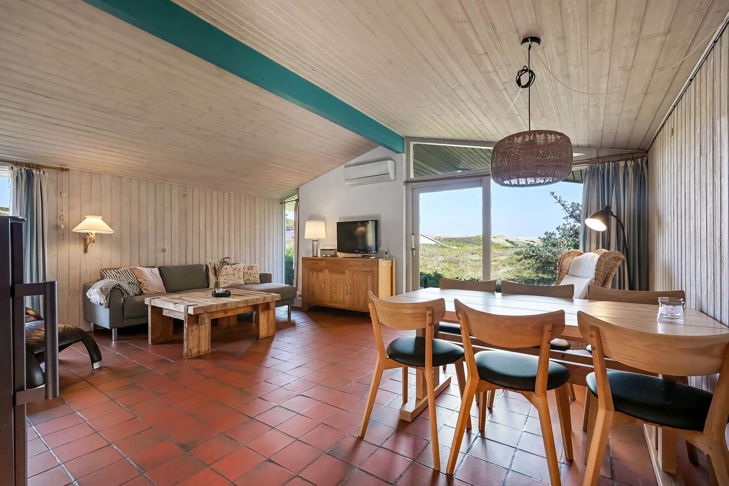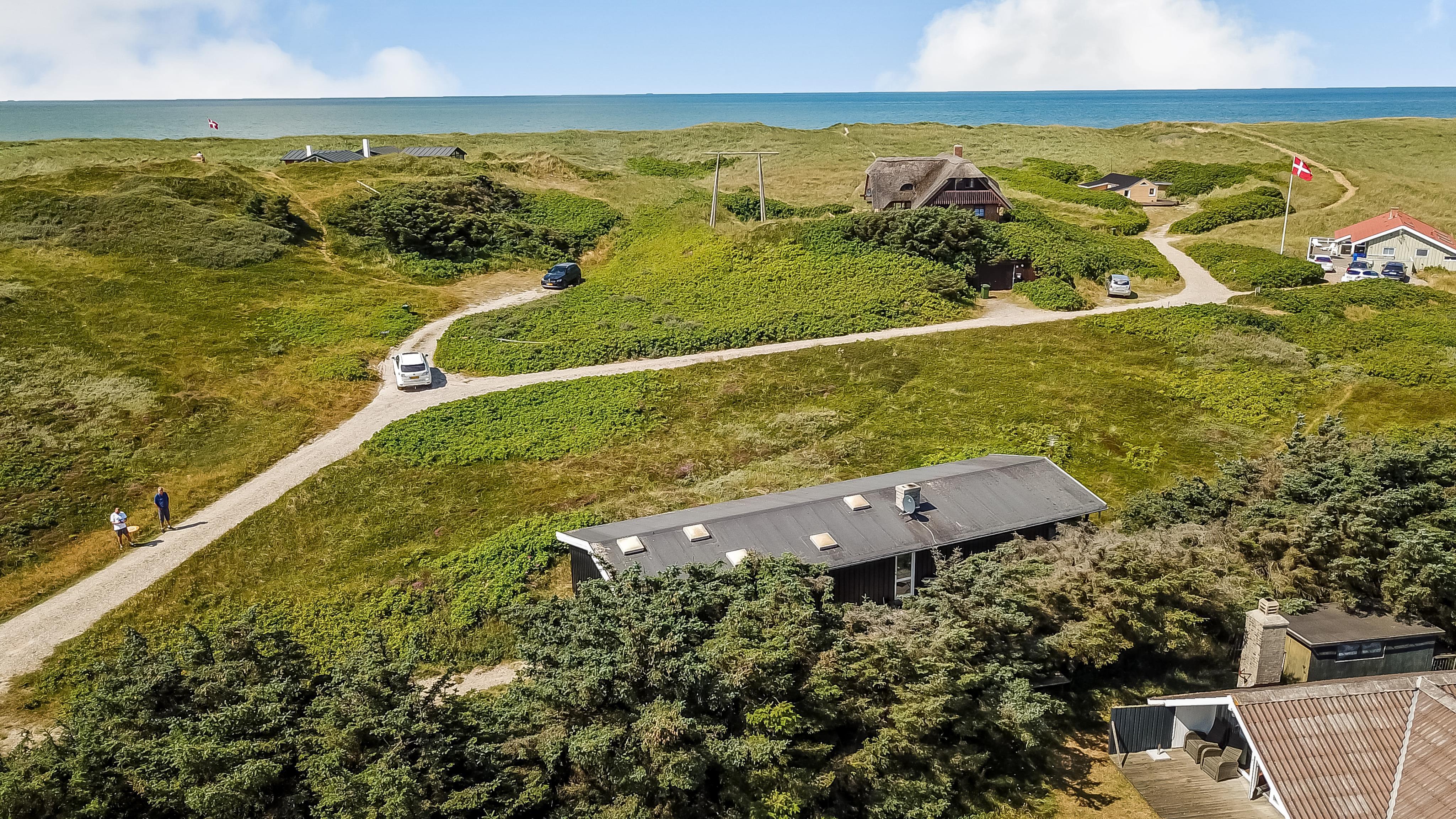 Godt udnyttet feriehus på ca. 90 m2 med 3 soveværelser (1DS, 1ES, 1ES-120x200). Fra opholdsstuen og fra alle soveværelser er der panoramaudsigt til de høje klitter ved Vesterhavet. Huset blev senest renoveret i 2013 og er indrettet med polstermøbler, spiseplads, TV med danske og tyske programmer samt Chromecast som giver mulighed for streaming af TV / radio / Apps og DVD-afspiller. En hyggelig brændeovn samt varmepumpe søger for en billigere el-regning og ekstra hygge samt varme til de rå dage ved Vesterhavet. Praktisk køkkenhjørne med bl.a. opvaskemaskine, keramisk kogeplade, indbygningsovn, emhætte samt køleskab med fryseboks. Dejligt badeværelset med toilet, håndvask, bruseniche og klinkegulv med gulvvarme samt vaskemaskine. Der er praktiske klinkegulve med gulvvarme i hele huset. Husdyr ikke tilladt. Ikke ryger hus.