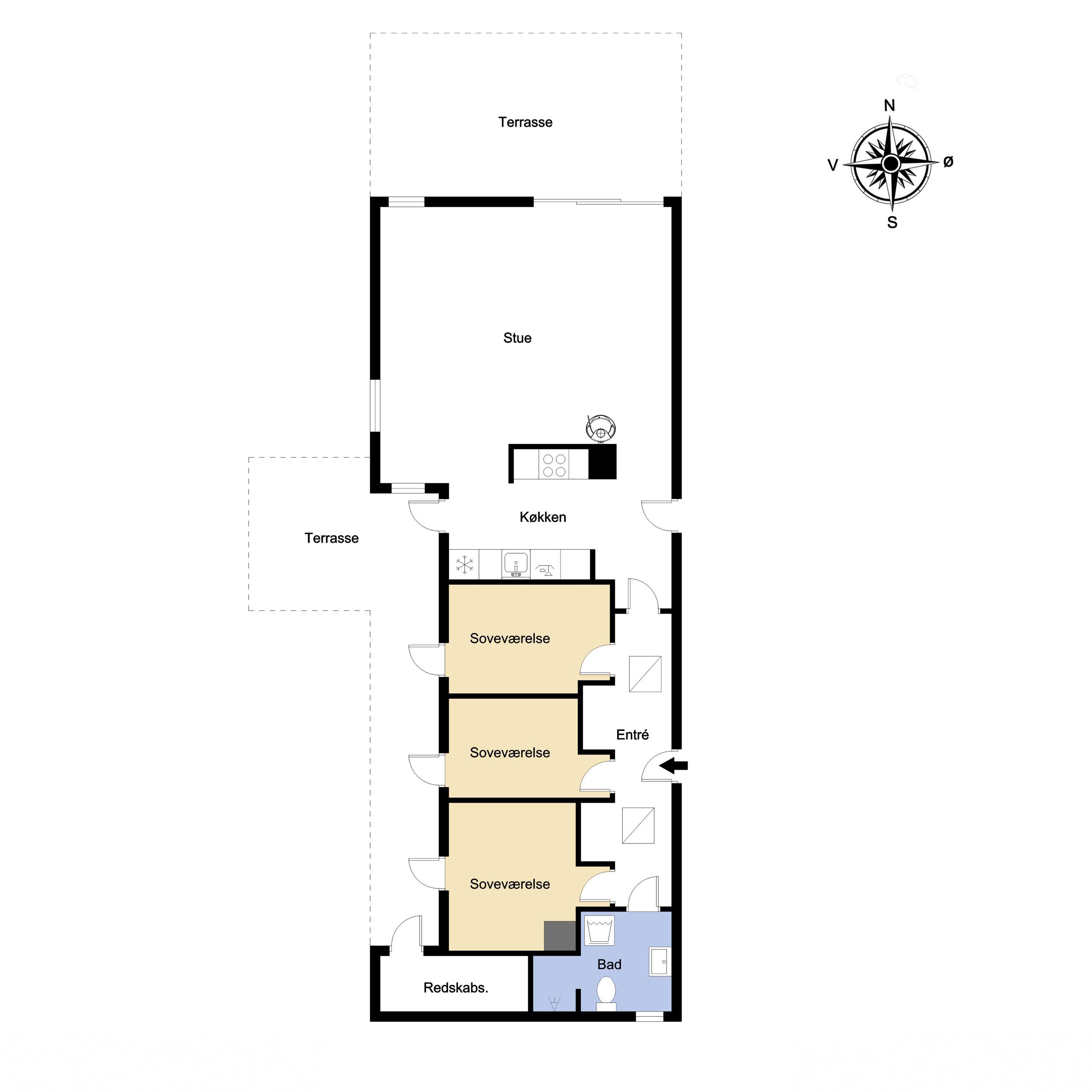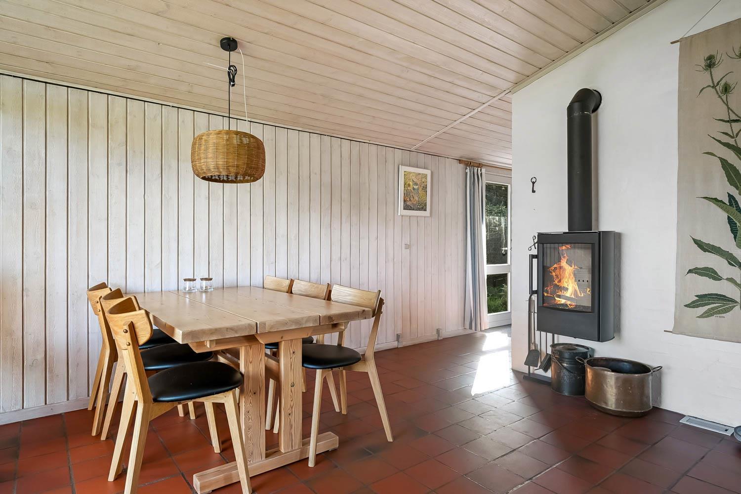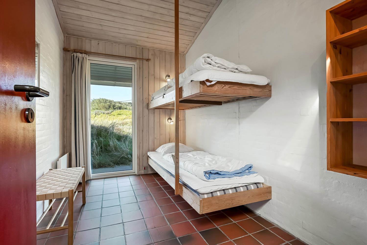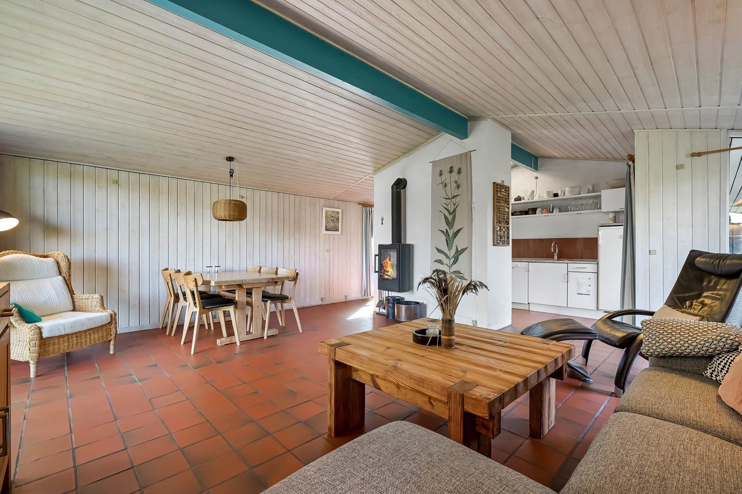 Godt udnyttet feriehus på ca. 90 m2 med 3 soveværelser (1DS, 1ES, 1ES-120x200). Fra opholdsstuen og fra alle soveværelser er der panoramaudsigt til de høje klitter ved Vesterhavet. Huset blev senest renoveret i 2013 og er indrettet med polstermøbler, spiseplads, TV med danske og tyske programmer samt Chromecast som giver mulighed for streaming af TV / radio / Apps og DVD-afspiller. En hyggelig brændeovn samt varmepumpe søger for en billigere el-regning og ekstra hygge samt varme til de rå dage ved Vesterhavet. Praktisk køkkenhjørne med bl.a. opvaskemaskine, keramisk kogeplade, indbygningsovn, emhætte samt køleskab med fryseboks. Dejligt badeværelset med toilet, håndvask, bruseniche og klinkegulv med gulvvarme samt vaskemaskine. Der er praktiske klinkegulve med gulvvarme i hele huset. Husdyr ikke tilladt. Ikke ryger hus.