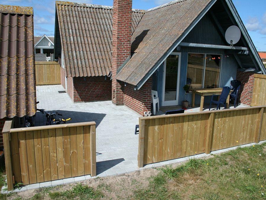 Huset er beliggende på en 1250 m2 naturgrund i gåafstand til Vesterhavet. Dejlig delvis lukket terrasse med havemøbler og solvogne.