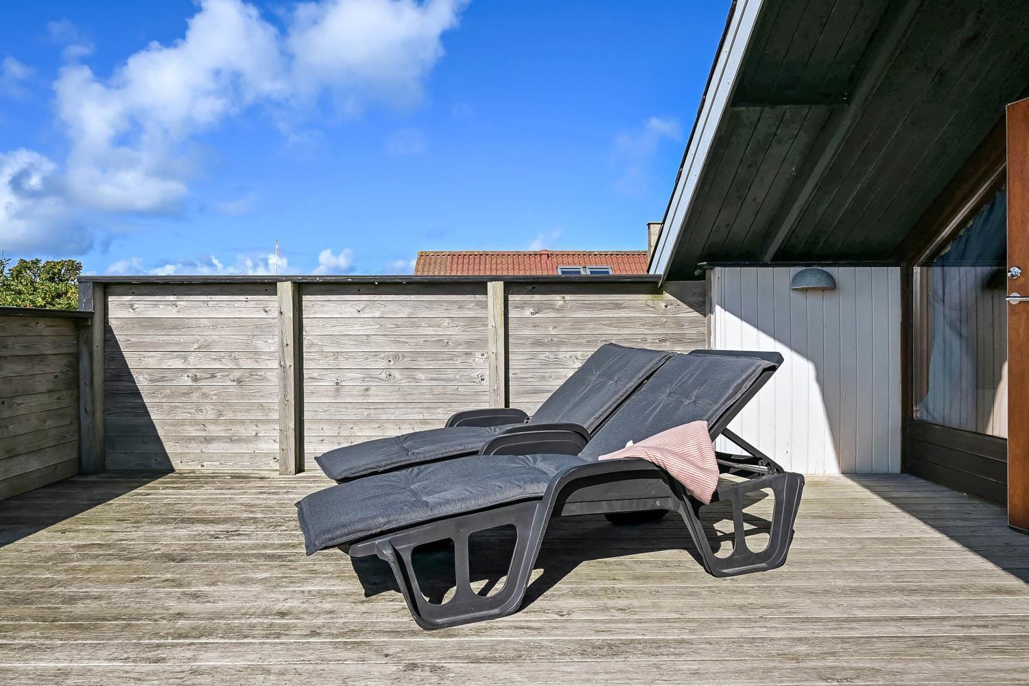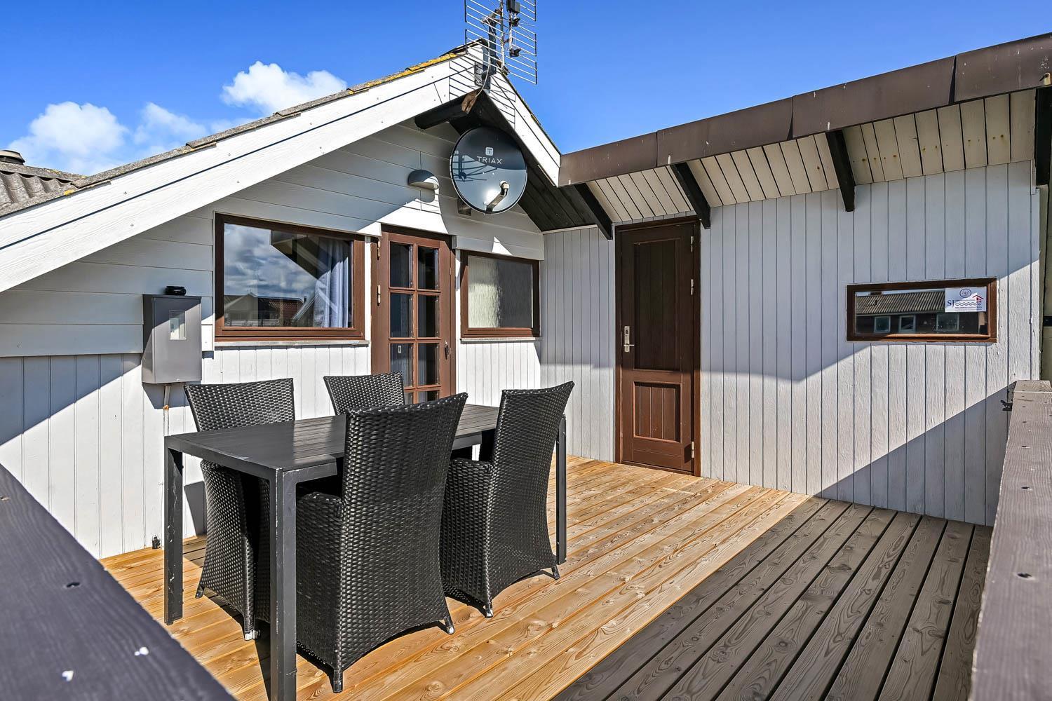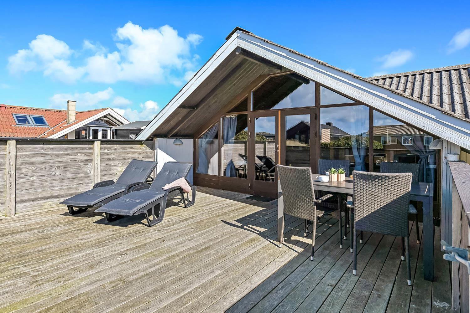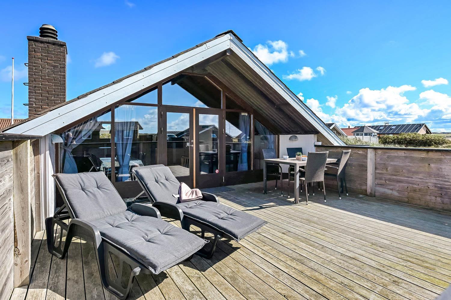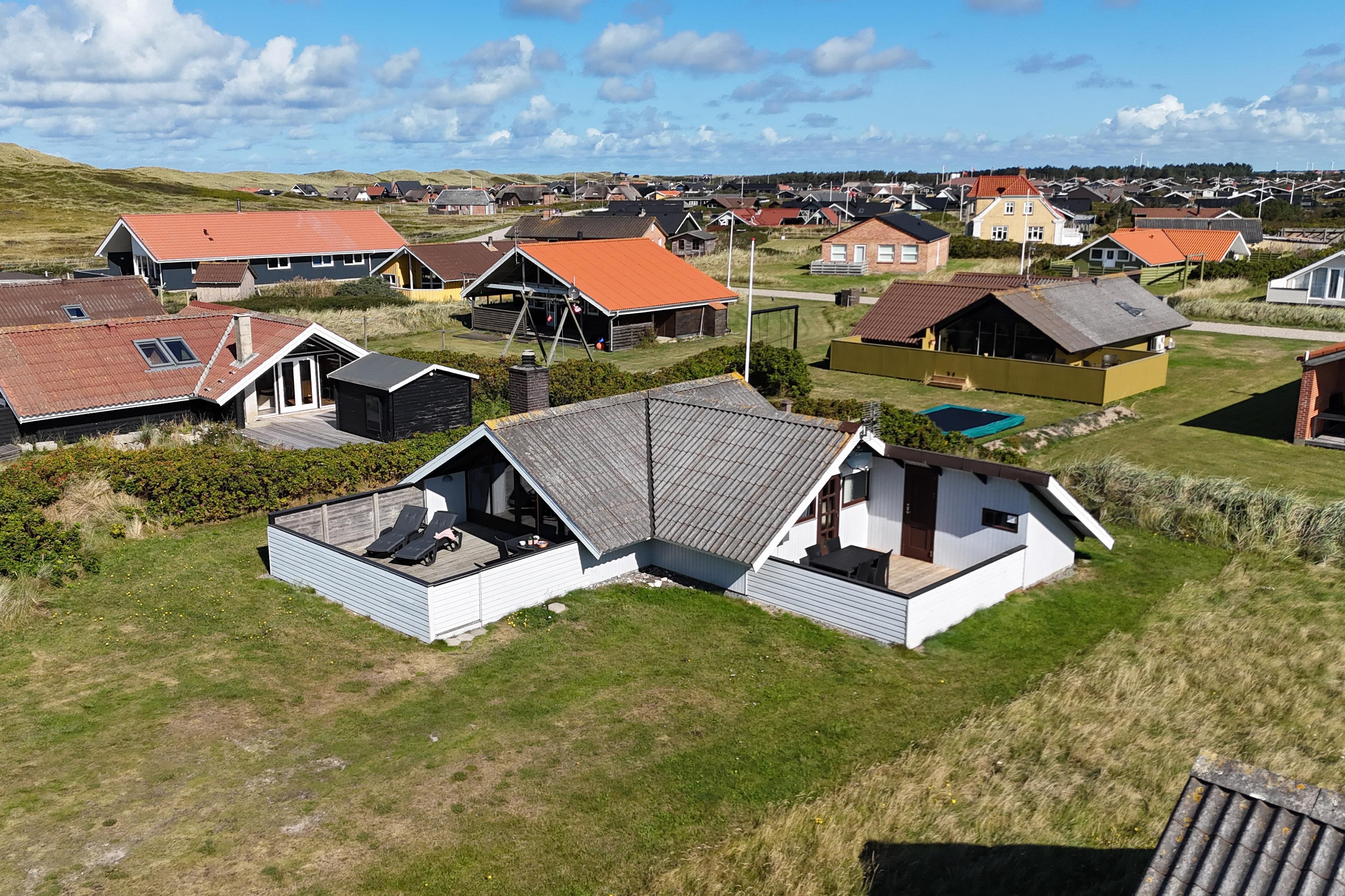Udgang fra opholdsstuen til den 28 m2 store syd terrasse , hvoraf 8 m2 er overdækket. Terrassen er udstyret med grill, diverse havemøbler, solvogne og dertil hørende hynder. Sid på terrassen og nyd udsigten når solen går ned bag de høje klitter. Fra gangen er der udgang til den 15 m 2 store øst terrasse, som også er udstyret med havemøbler og hynder. Her kan man nyde morgen kaffen, imens man nyder solopgangen. Gode surf og fiskemuligheder i nærheden. Der forefindes også 2 legepladser i Vejlby Klit. Købmand og Cafe i Vejlby Klit som ligger ca. 400 m fra huset af, som har åbent fra Påske til efteråret.