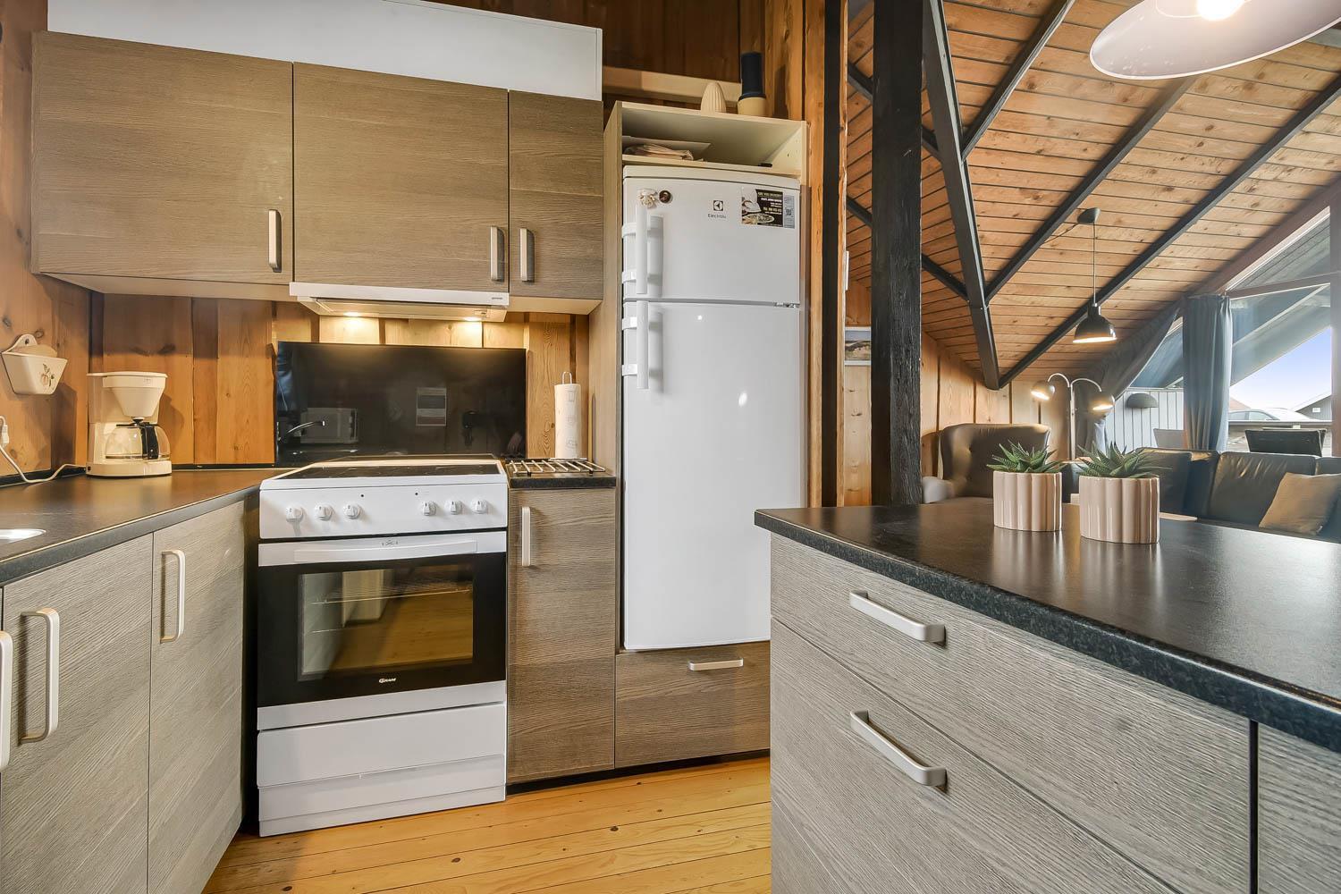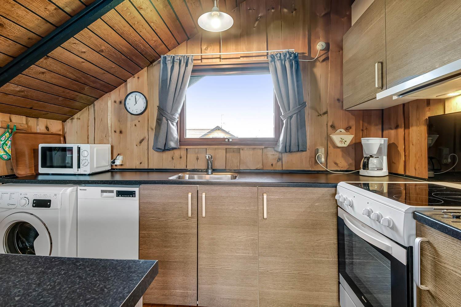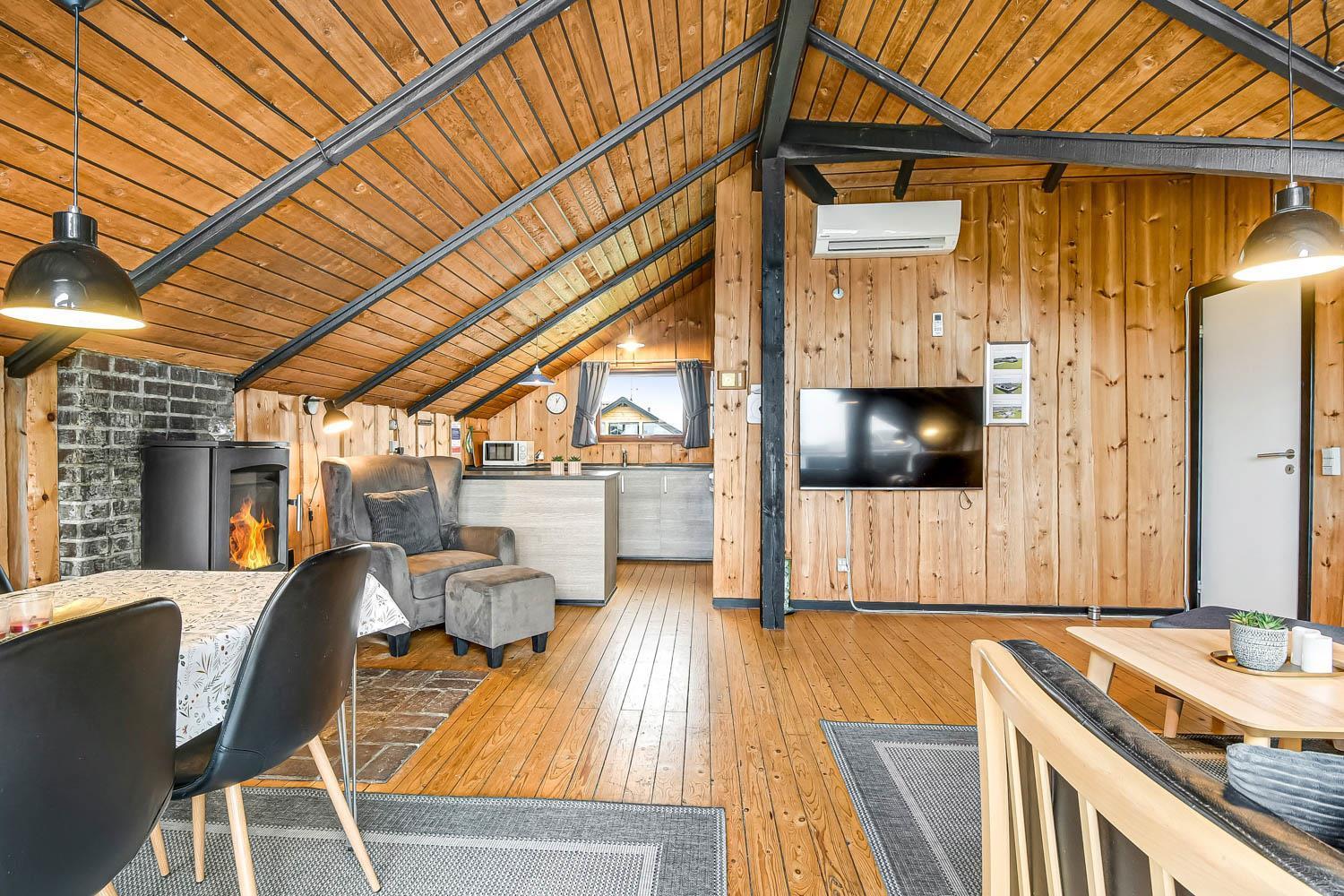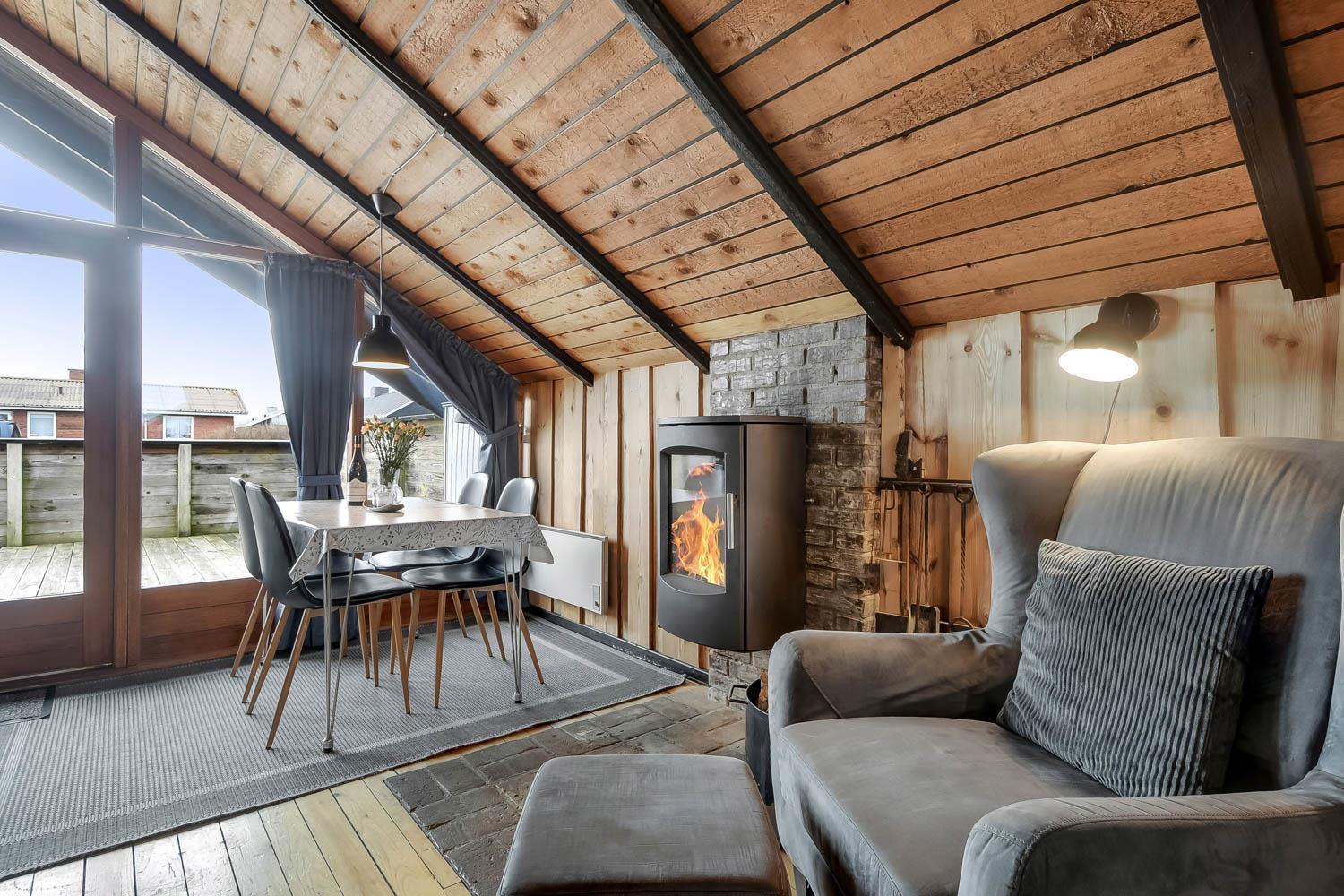 Der er trægulve i alle rum, vægge og lofter er beklædt med træ. Lækkert nyt badeværelse med toilet, håndvask, bruser og opvarmet flisegulv. Huset har 2 gode soveværelser: 1 med DS 160 cm bred og 1 med 2 ES hver 80 cm bred. Veludstyret nyt køkken som er kombineret med stuen. Køkkenet indeholder bl.a. Keramisk komfur, emhætte opvaskemaskine, vaskemaskine, mikroovn, 40 liter fryser og køleskab. Desuden er der gratis trådløst Fibernet. I opholdsstuen er der brændeovn, stereoanlæg med CD, samt 50 " Smart Tv med indbygget chromecast og med DR kanalerne. Samt tyske satellitkanaler. Der er installeret varmepumpe i huset og det betyder, at du som gæst kan spare en del på din elvarmeregning - varmepumpen leverer op til 4 gange så meget effekt som den bruger, det betyder at for hver kilowatt-time pumpen bruger yder den varme svarende til ca. 4 kW energien udnyttes dermed langt bedre. Huset er hyggeligt indrettet. Max 1 stk. husdyr tilladt. Dette feriehus er ideelt for den lille familie, som ønsker fred og ro og hvor man lade dørene stå åbne, uden at tænke på om de små børn eller hunden løber for lang væk.