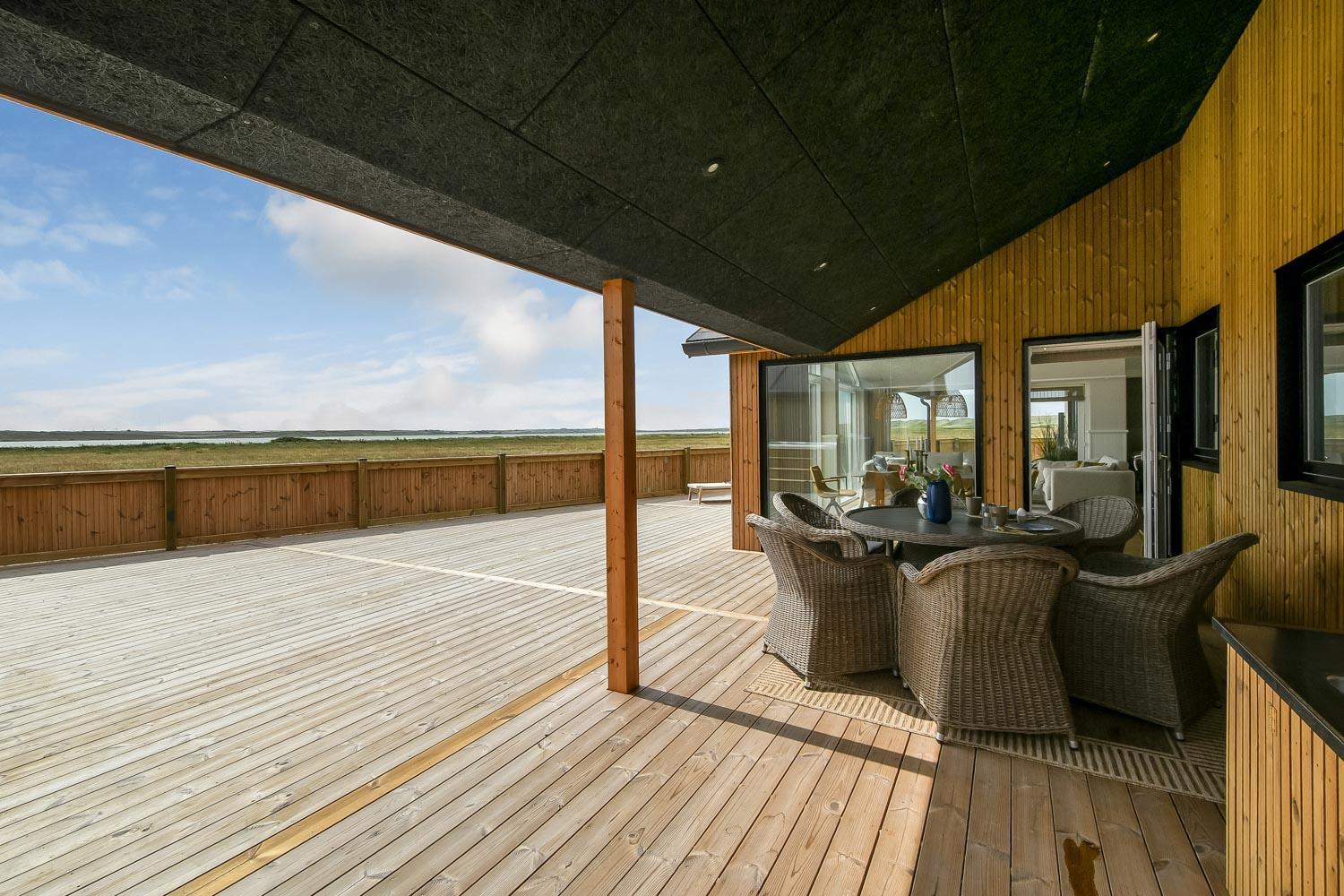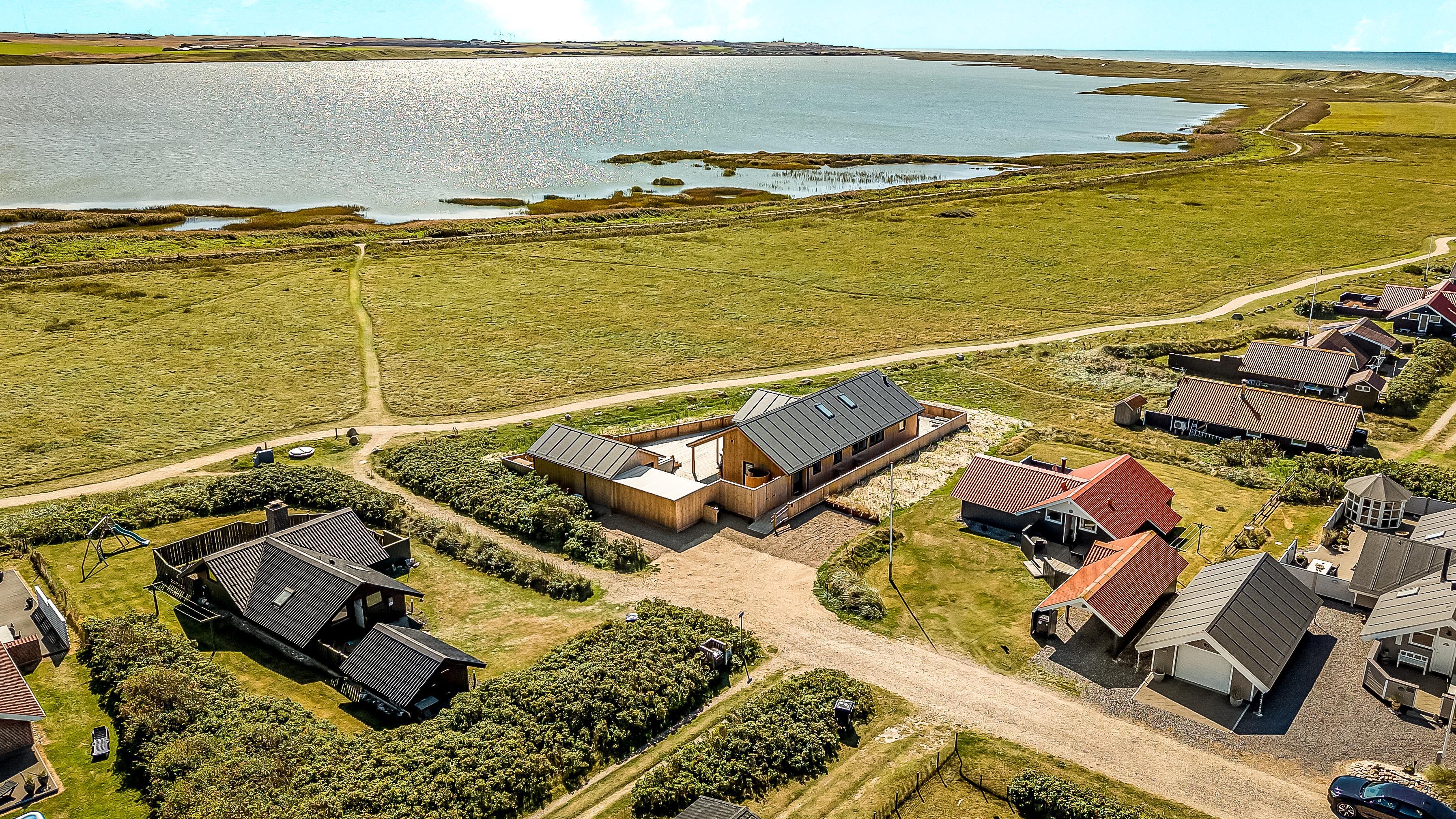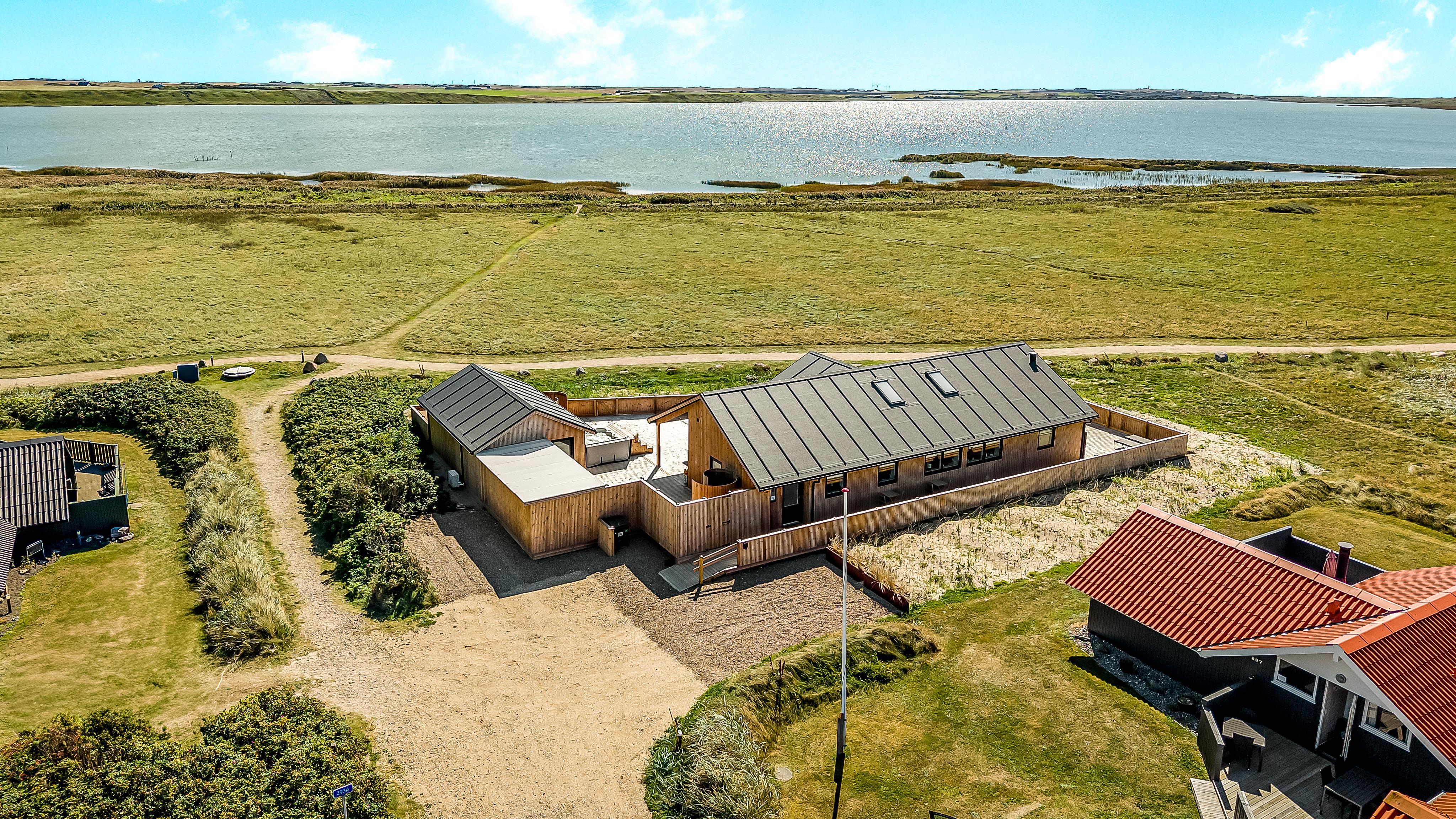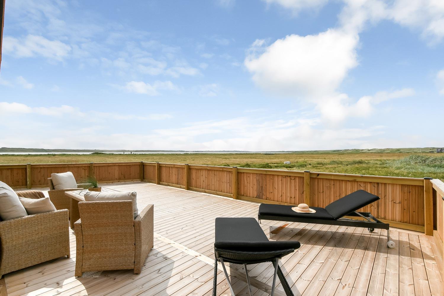Huset ligger som det første ud mod fredningslinjen og Ferring Sø, og fra både hus og terrasse er der en enestående udsigt. Dette flotte feriehus i træ er noget ganske særligt.