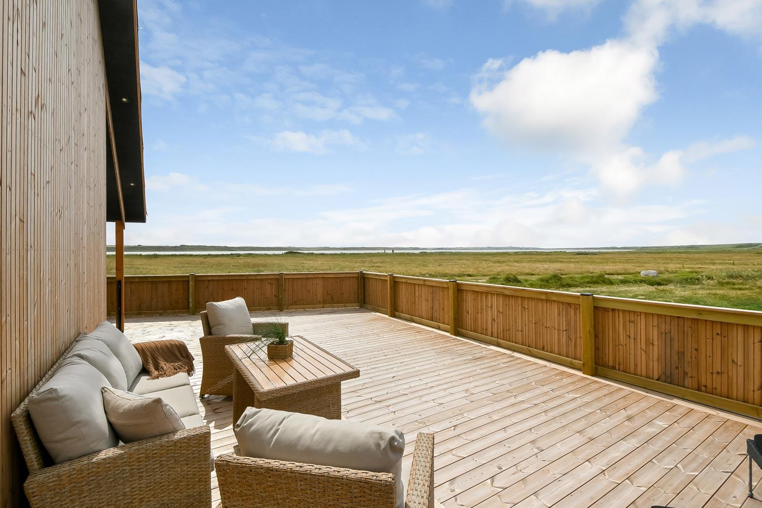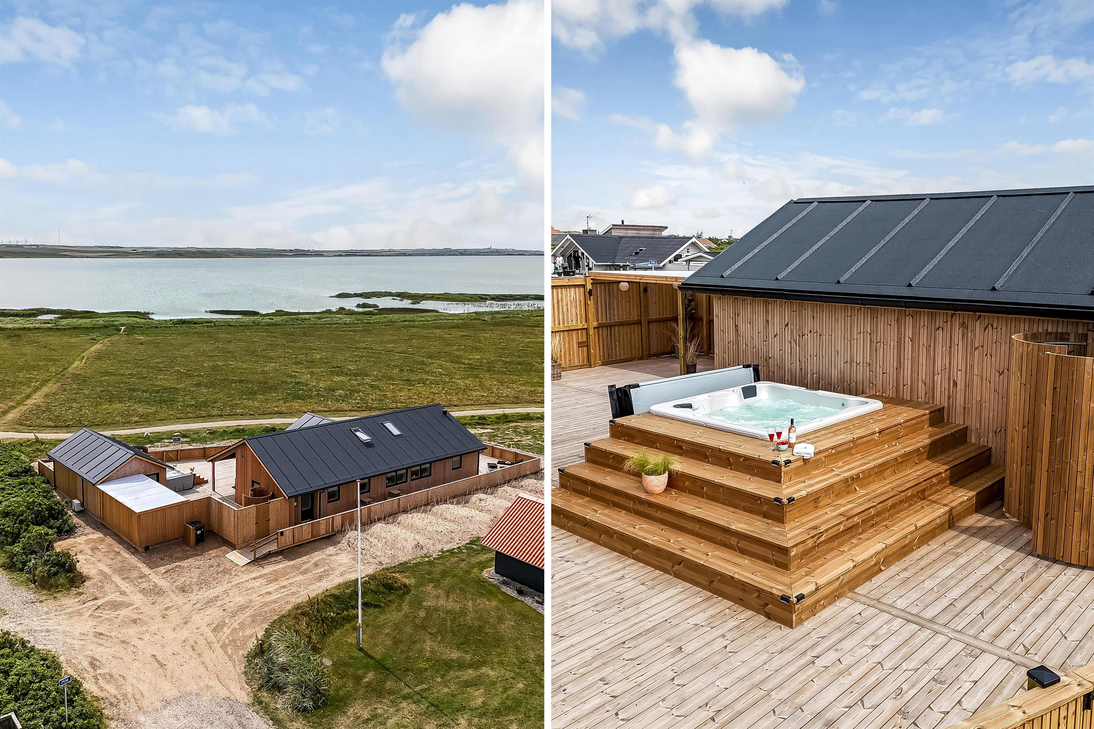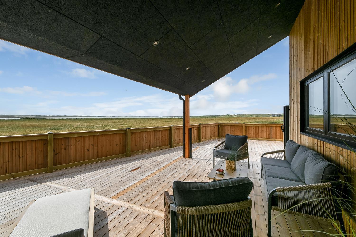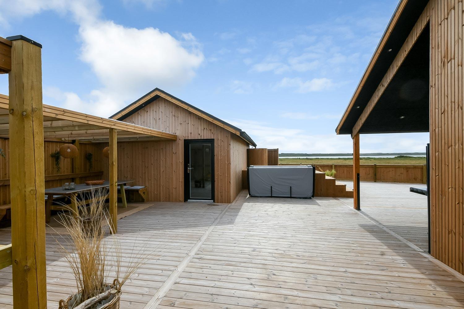 Huset ligger som det første ud mod fredningslinjen og Ferring Sø, og fra både hus og terrasse er der en enestående udsigt. Dette flotte feriehus i træ er noget ganske særligt.