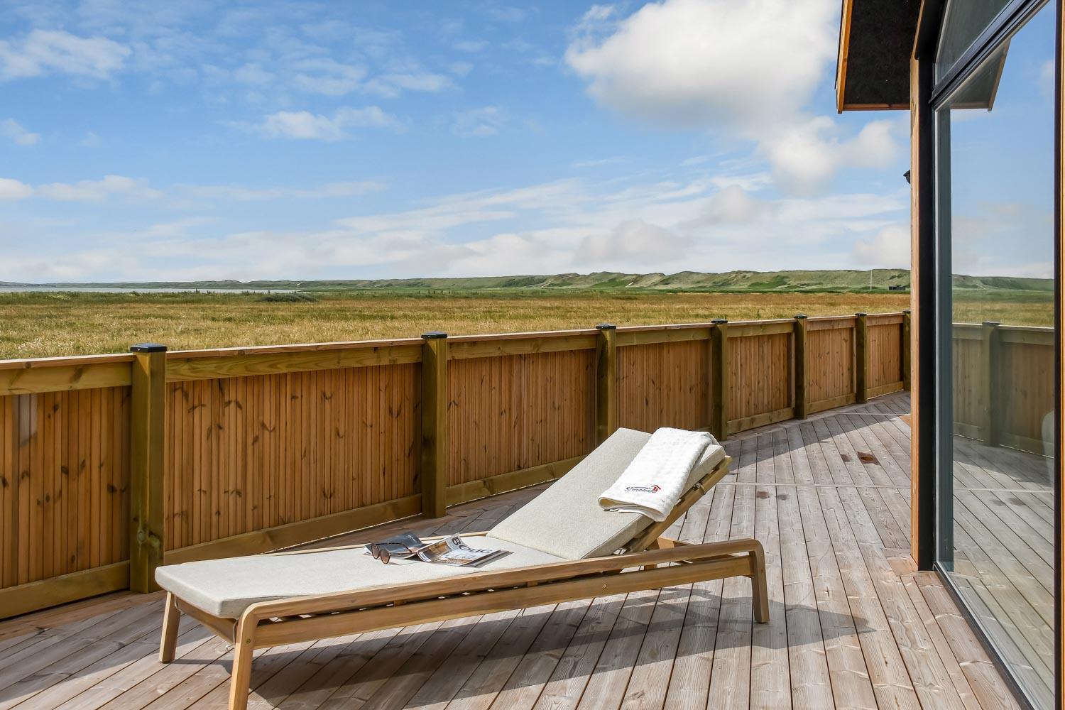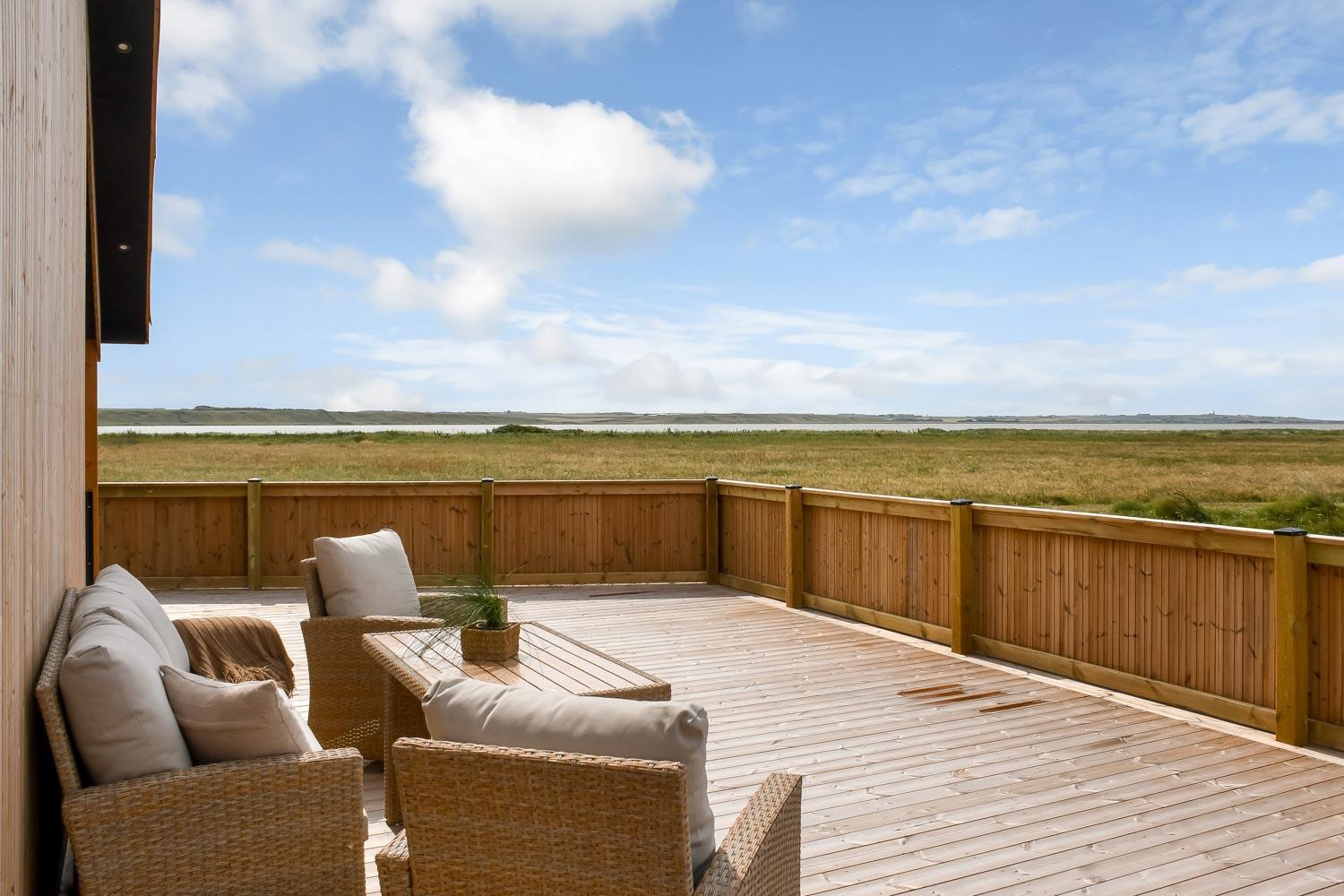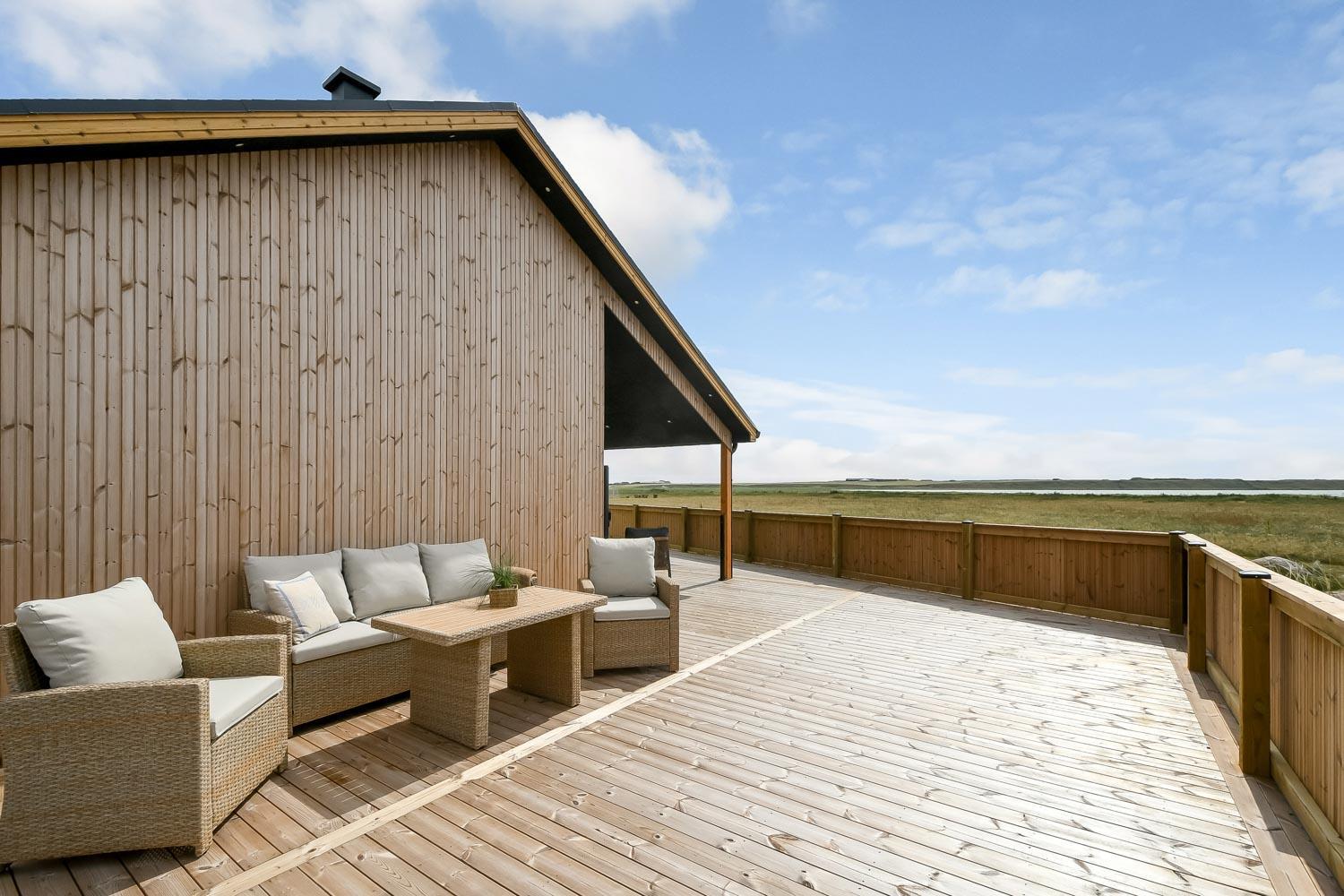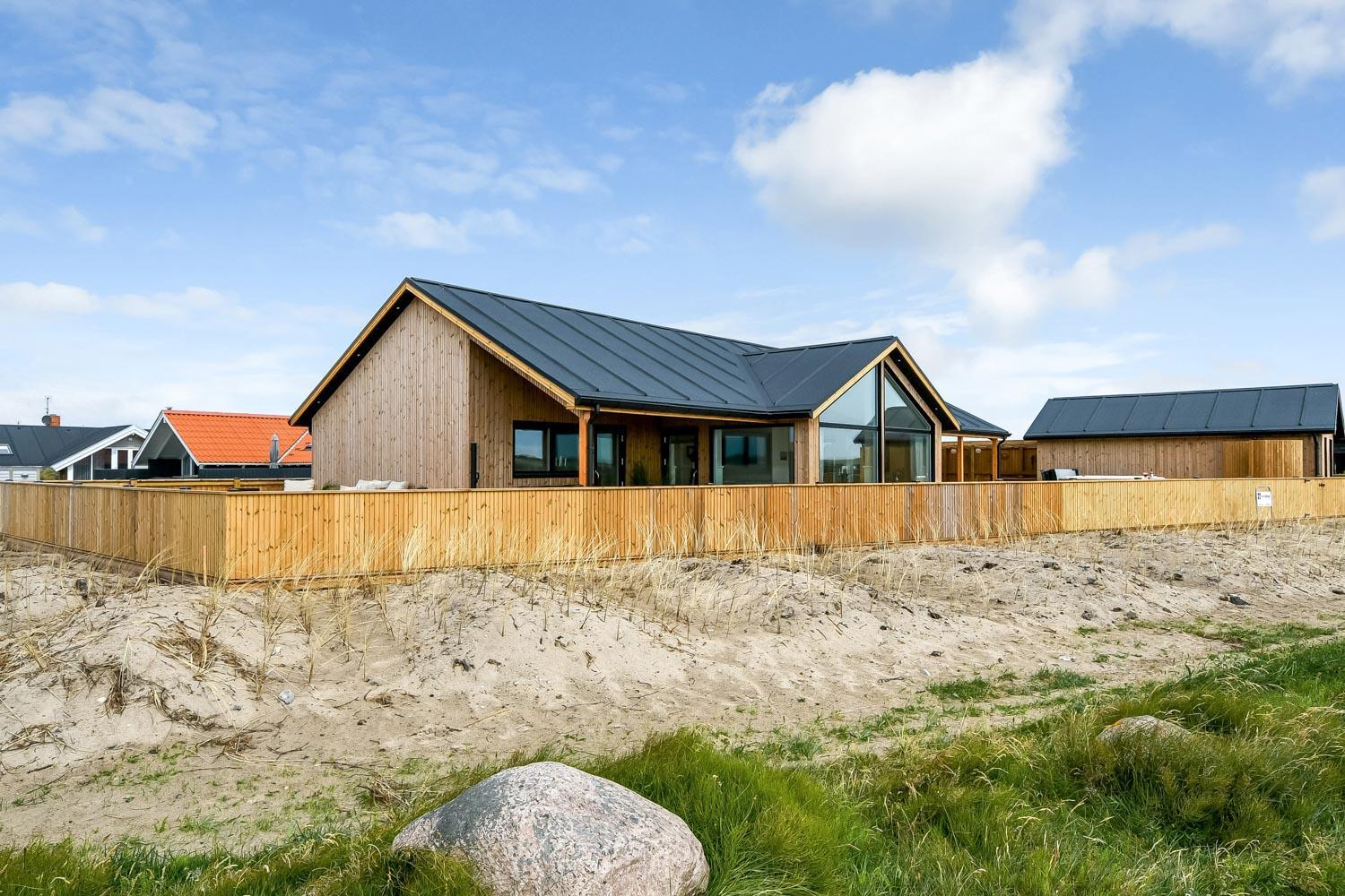 Huset ligger som det første ud mod fredningslinjen og Ferring Sø, og fra både hus og terrasse er der en enestående udsigt. Dette flotte feriehus i træ er noget ganske særligt.
