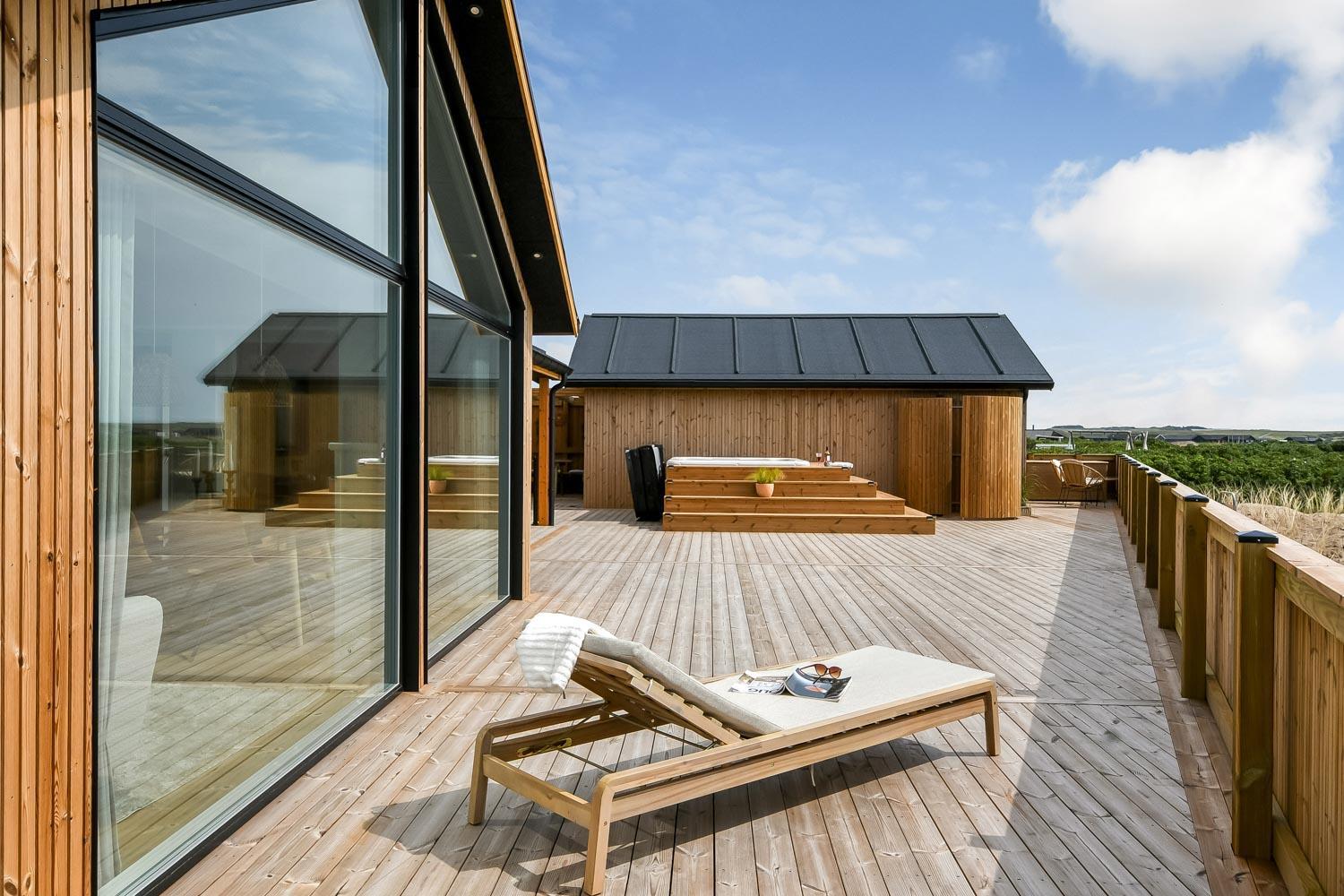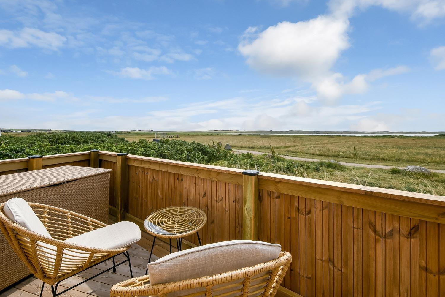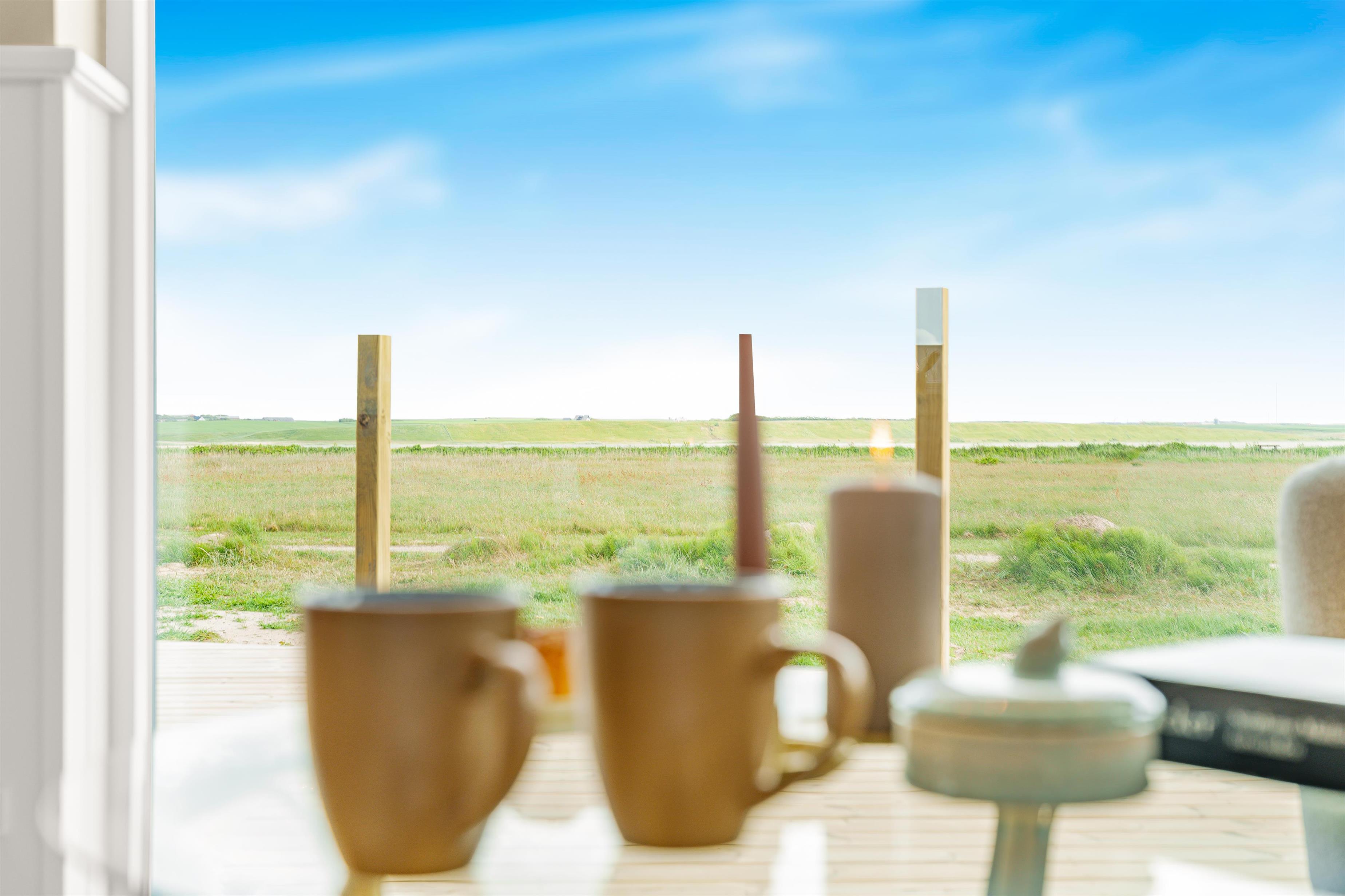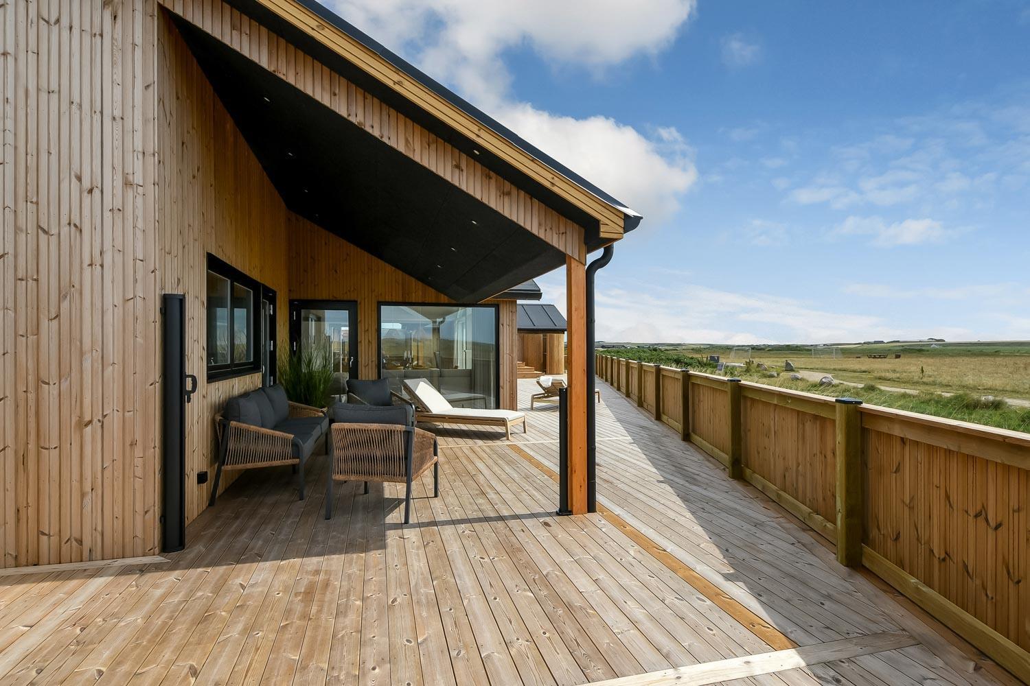 Huset ligger som det første ud mod fredningslinjen og Ferring Sø, og fra både hus og terrasse er der en enestående udsigt. Dette flotte feriehus i træ er noget ganske særligt.