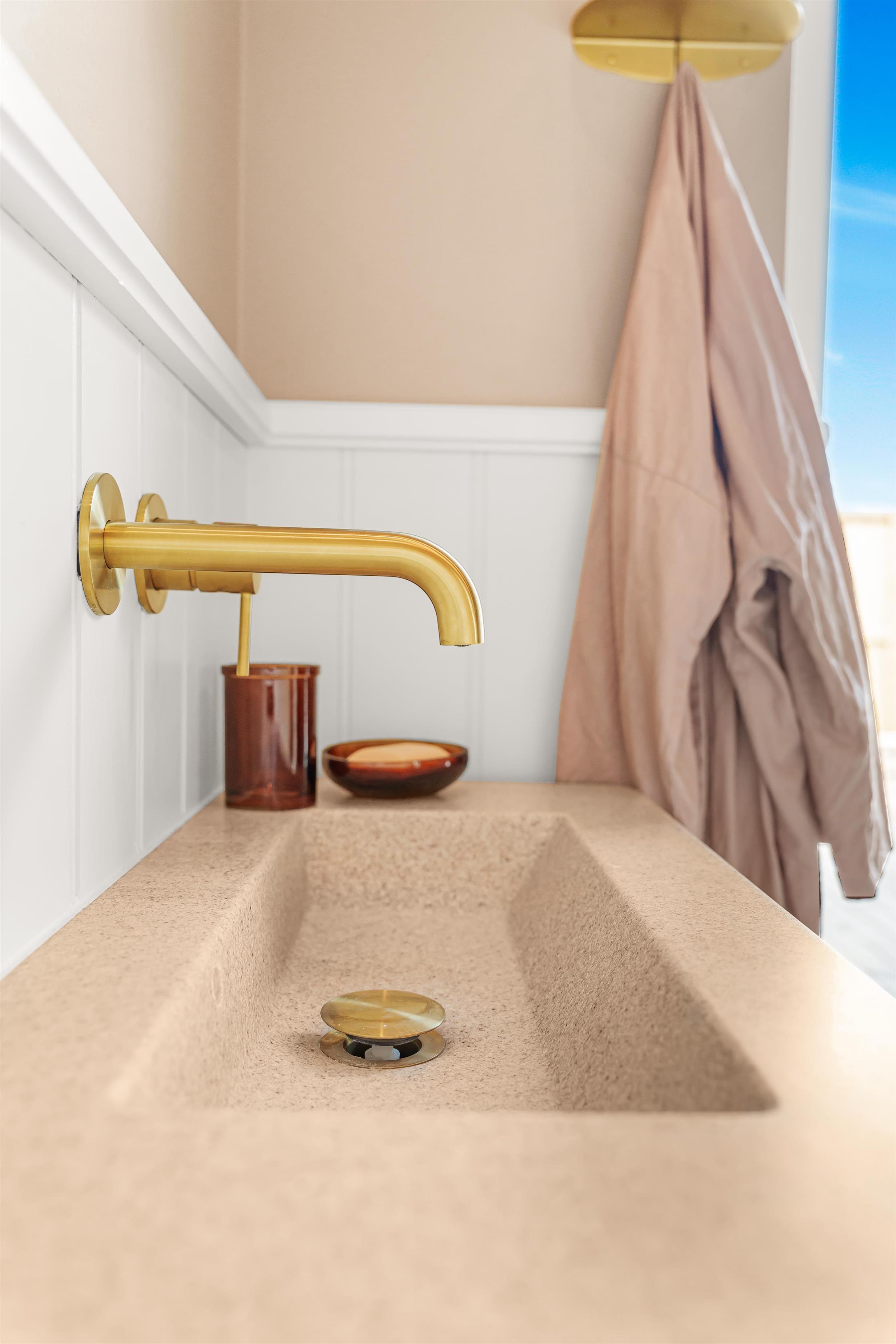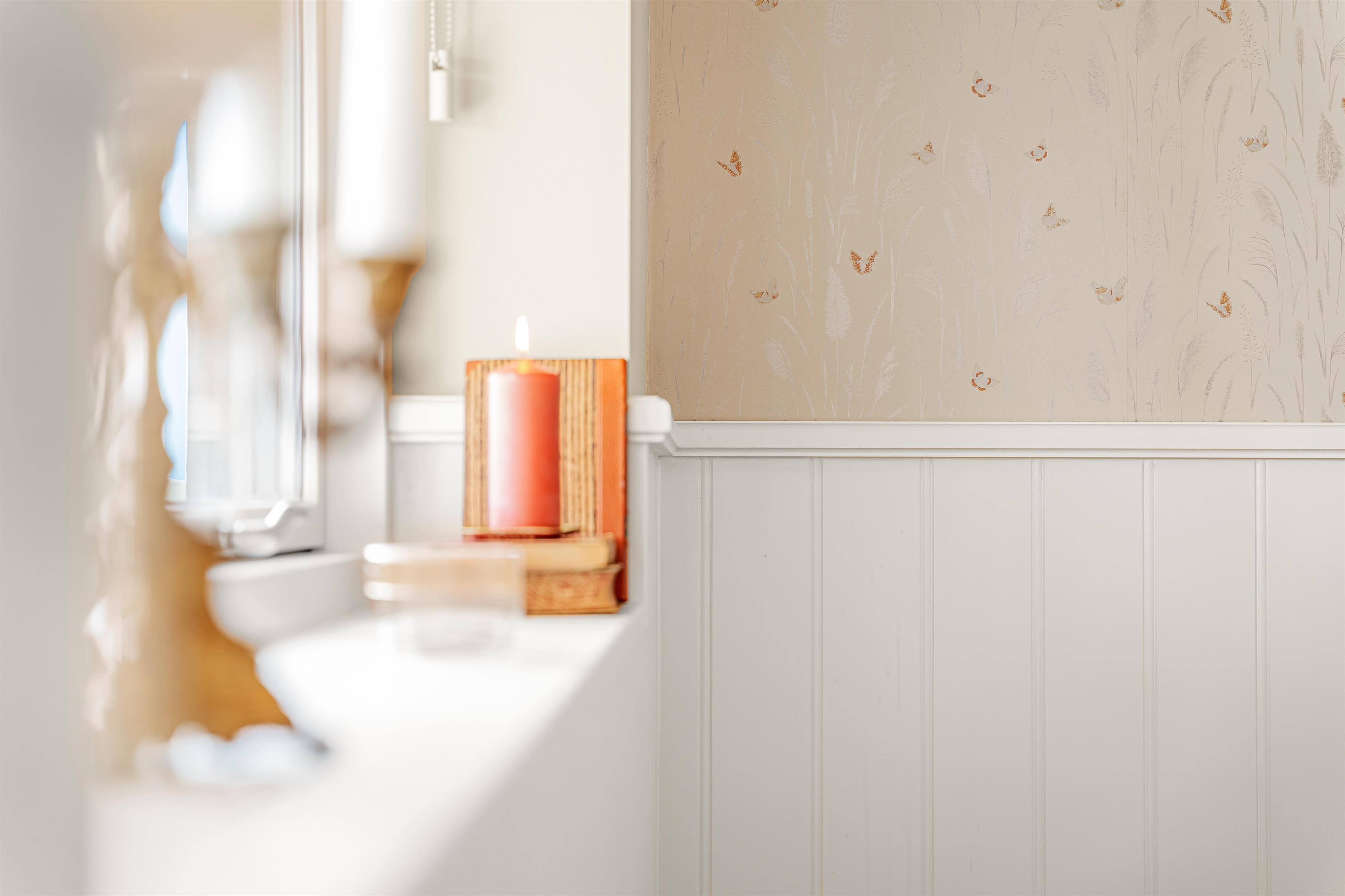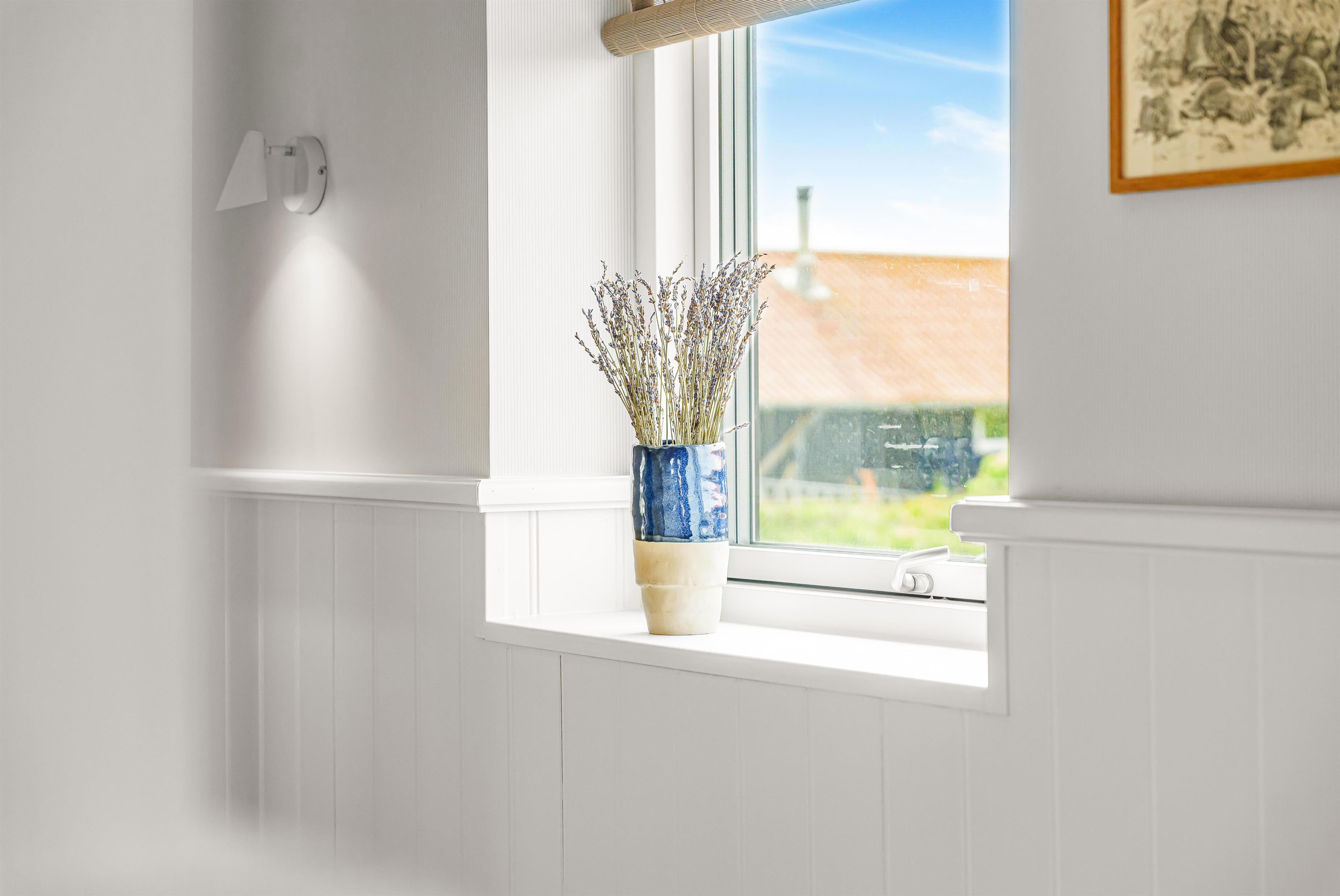 Der er to badeværelser, begge med toilet, håndvask og bruser. Det ene badeværelse er desuden udstyret med vaskemaskine og tørretumbler samt direkte udgang til terrassen og en af de udendørs brusere – ideelt efter en tur ved Vesterhavet.