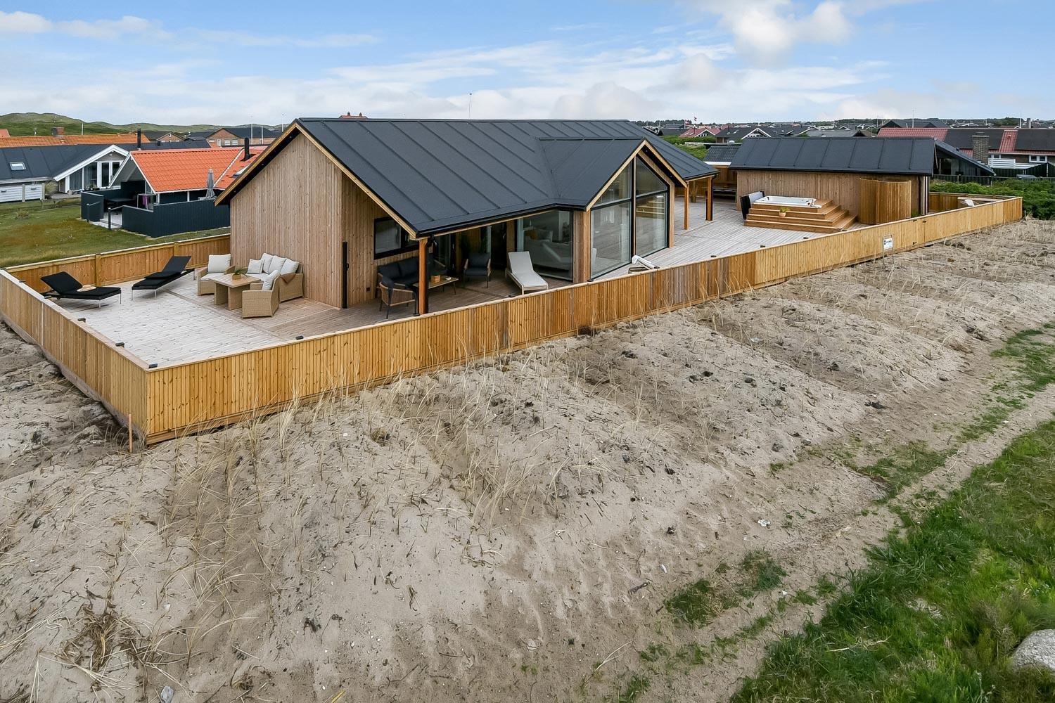 Der er masser af plads på den 1.000 m2 store, unikke naturgrund og på det pragtfulde terrasseanlæg er der masser af muligheder for en plads i solen eller måske i skyggen. Udearealerne er også et kapitel for sig. Den ca. 150 m2 store, velholdte, indhegnet og delvis overdækket terrasse er med udekøkken, spa og havemøbler. Også her er udsigten unik og der er tænkt på det meste. Dejligt udekøkken med stor gas-grill, vask med koldt vand, så der er gode muligheder for at tilberede en god middag samtidig med at man hygger med familien eller vennerne, masser af havemøbler og liggestole. En tur i den udendørs spa gør oplevelsen unik og specielt på de mørke aftener med den klare stjernehimmel, den anden udendørs bruser er placeret tæt på udespaen så man kan gå under bruseren inden man sænker sig ned i spaen. En unik oplevelse som er ren terapi for sjæl og krop. Inde i annekset er der en skøn sauna samt et aktivitetsrum med bl.a., bordfodbold, dart og en motionscykel, så der er også tænkt på aktiviteter til ferien, i annekset er der desuden et depotrum med lås. Huset ligger på en af de bedste grunde i Vejlby Klit, ligger behageligt langt fra vejen. Fra grunden kan man via en sti igennem det fredede område nemt gå direkte ned til Ferring Sø som blot ligger 80 m væk. Rundt om Ferring Sø er der anlagt en sti så man kan vandre omkring hele søen og opleve naturen på nærmeste hold. Vesterhavet ligger blot 300 m fra huset så der er ikke langt til strandfornøjelser som badning, drageflyvning, lystfiskeri eller vandreture i den friske luft hvor man til tider kan blive blæst helt igennem. Vesterhavets vandkant ligger blot 300 meter fra huset. Herudover ligger huset tæt på en af Vestjylland smukkeste cykel- / vandre ruter der bl.a. byder på mulighed for at se både sø og hav på samme tid samt tæt på indkøb og restaurant. Nærmeste sæsonåbne købmand ligger kun 400 meter ved Vejlby Torv som også byder på en cafe / spisested. Vi anbefaler også gerne et besøg i havnebyen Thyborøn 15 km nord for sommerhuset eller den gamle købstad Lemvig 13 km mod øst. Dette hus tilbyder unik beliggenhed og udsigt og er velegnet til parret eller familien, der vil bo tæt på havet på en meget ugenert grund og som ønsker en helt speciel oplevelse de aldrig glemmer.