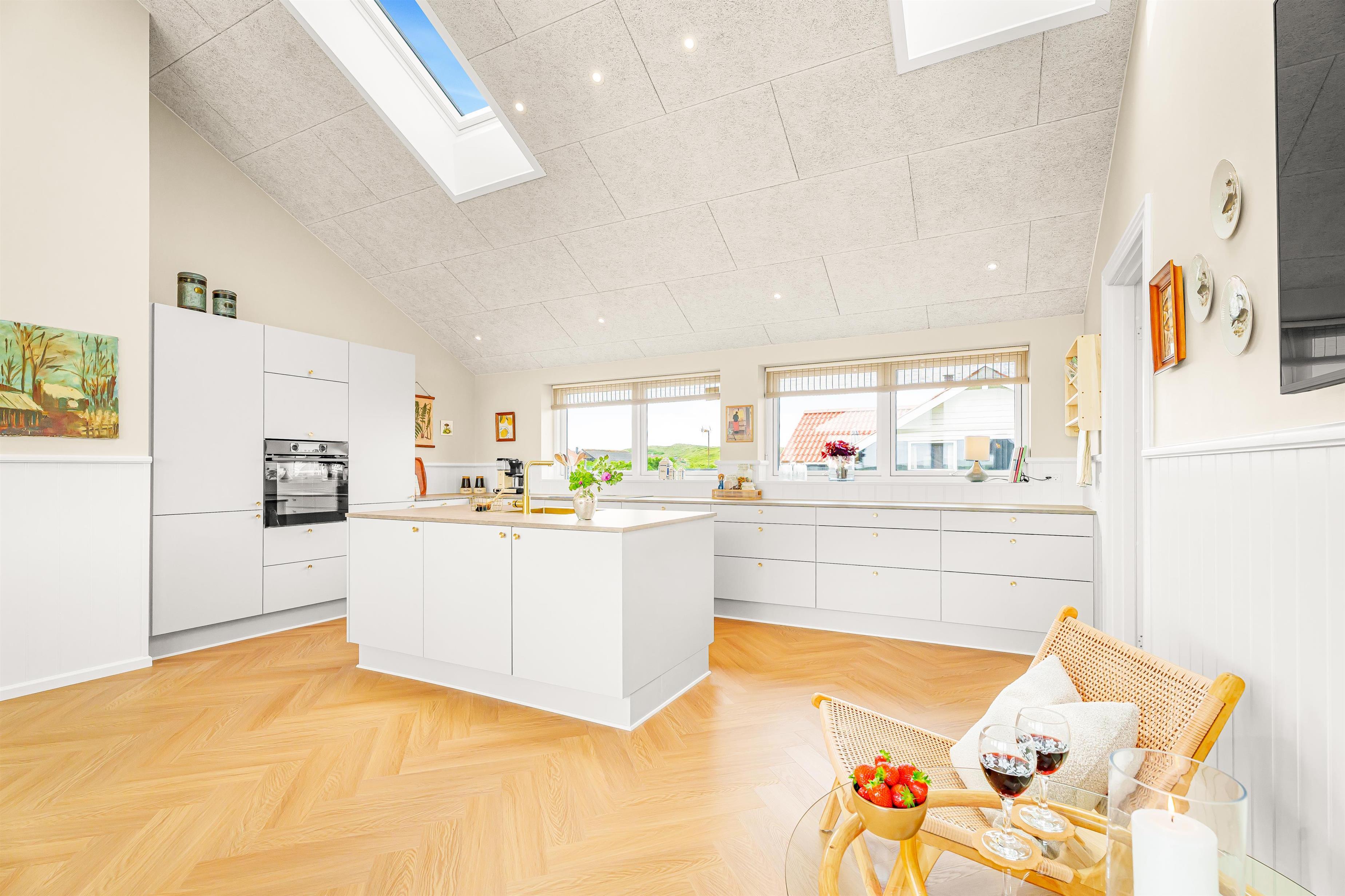 Allerede når bilen rammer grusvejen, med få meter til huset, bliver det klart at beliggenhed og hus er noget ganske særligt. Huset ligger på en naturgrund for enden af en lukket grusvej. Huset er 155 m2 og har 3 dejlige soverum (1DS, 1DS, 1DS), det er helt nye og gode senge. I hjertet af huset findes et stort, veludstyret køkken/alrum med alt i service/køkkengrej og alt i hårde hvidevarer. Det åbne køkken har bl.a. induktions kogeplade med indbygget emhætte, indbygningsovn, opvaskemaskine, mikroovn, køleskab/fryseskab og meget mere. Nyd den tilberedte mad ved spisebordet, som er placeret tæt ved køkkenet. Bliv betaget af, at kigge ud ad vinduerne og nyde udsigten til Ferring Sø og området. Slap af i de nye, kvalitetsmøbler. Se TV på husets smart-TV som har indbygget danske og tyske TV-programmer via fibernet, radio og mulighed for streaming tjenester. Der er praktiske laminatgulve i alle opholdsrum med gulvvarme og badeværelser er med klinkegulv og gulvvarme. Fra det store soveværelse og stuen er der udgang til de store delvis overdækkede terrasse. Der er varmepumpe i huset som er medvirkende til en lavere forbrugsafregning. Der er åbent til kip og der er indbygget spots i hele loftet. De store vinduespartier giver en fantastisk lysindfald i rummet sammen med de 2 ovenlysvinduer som er placeret i køkkenafdelingen.