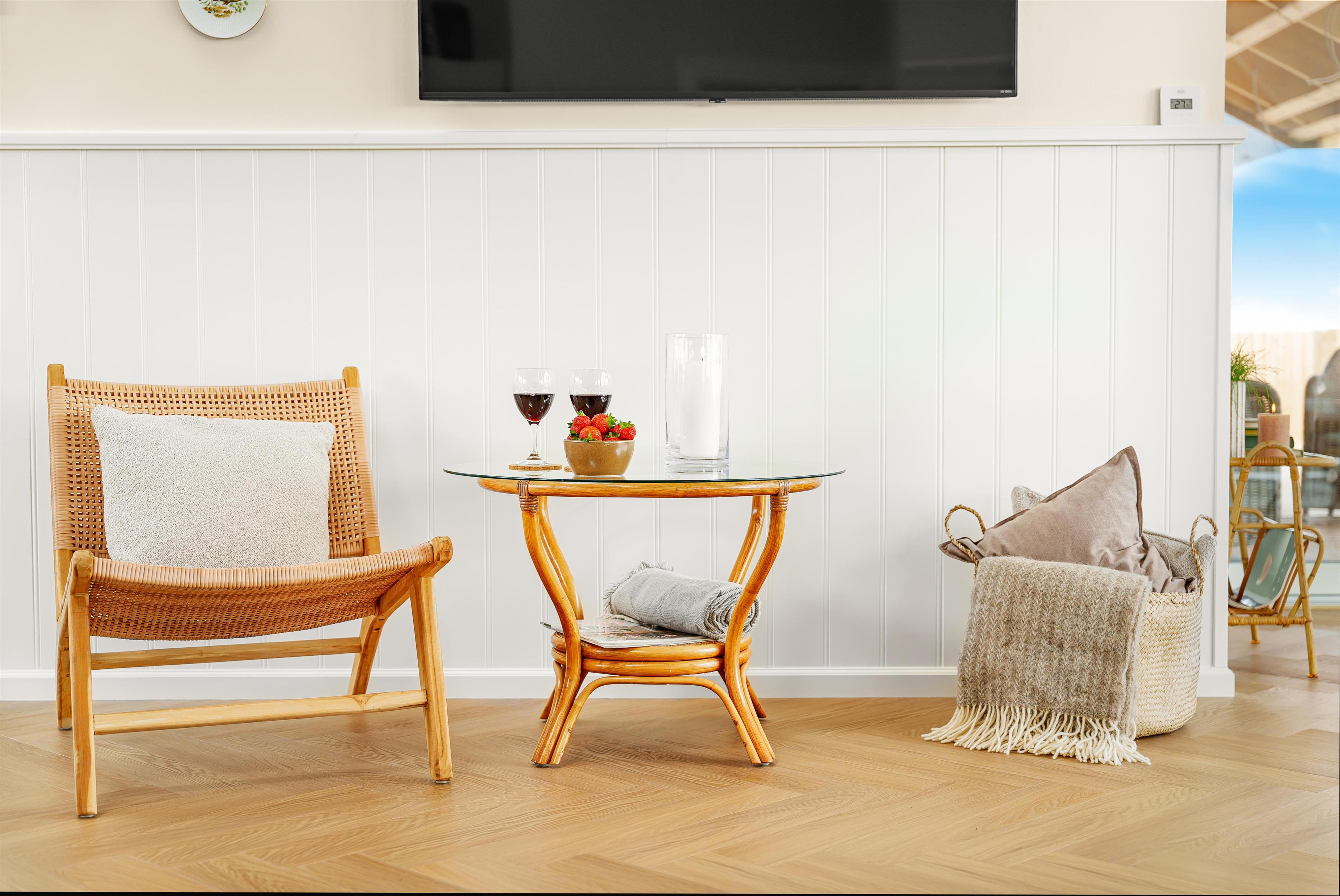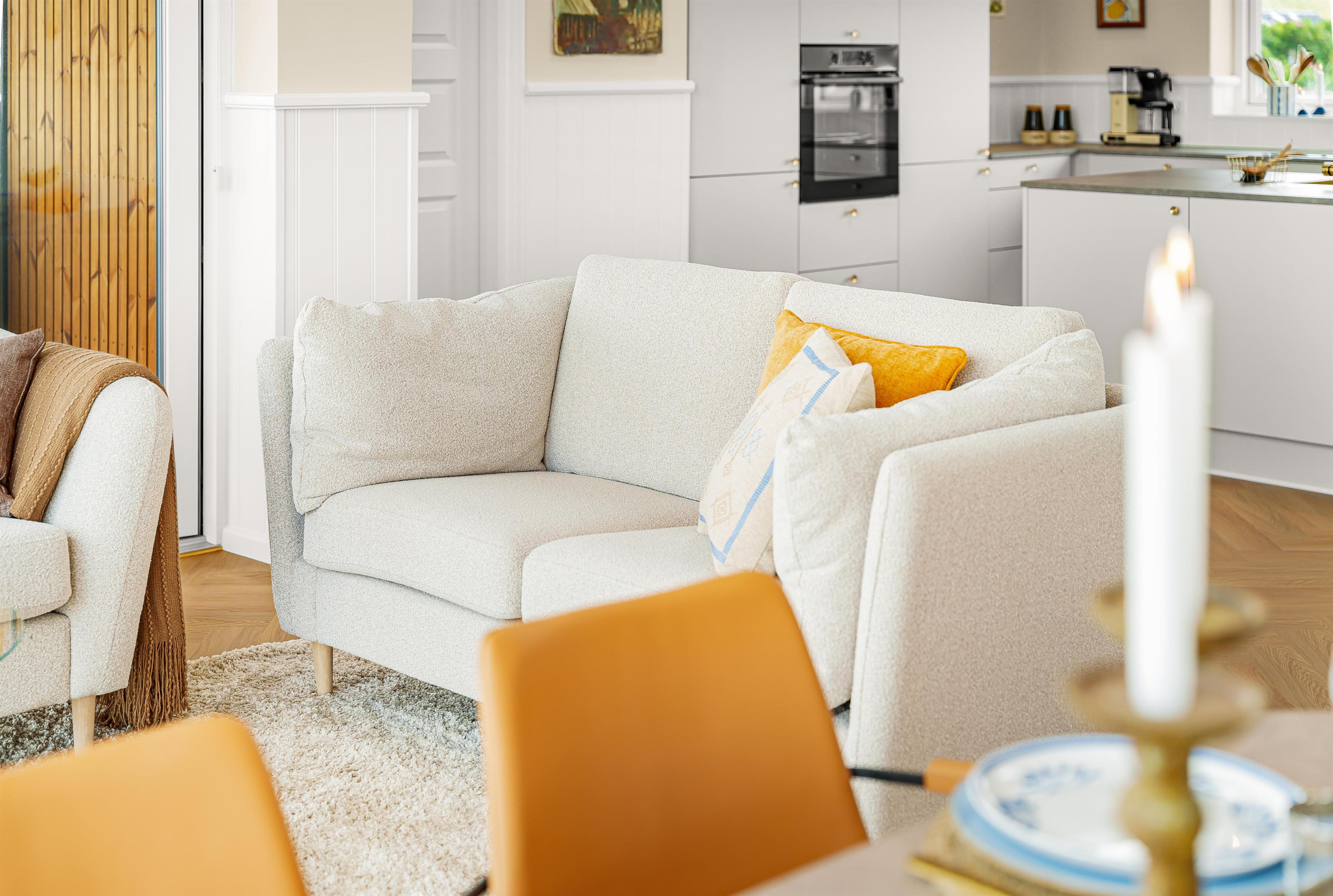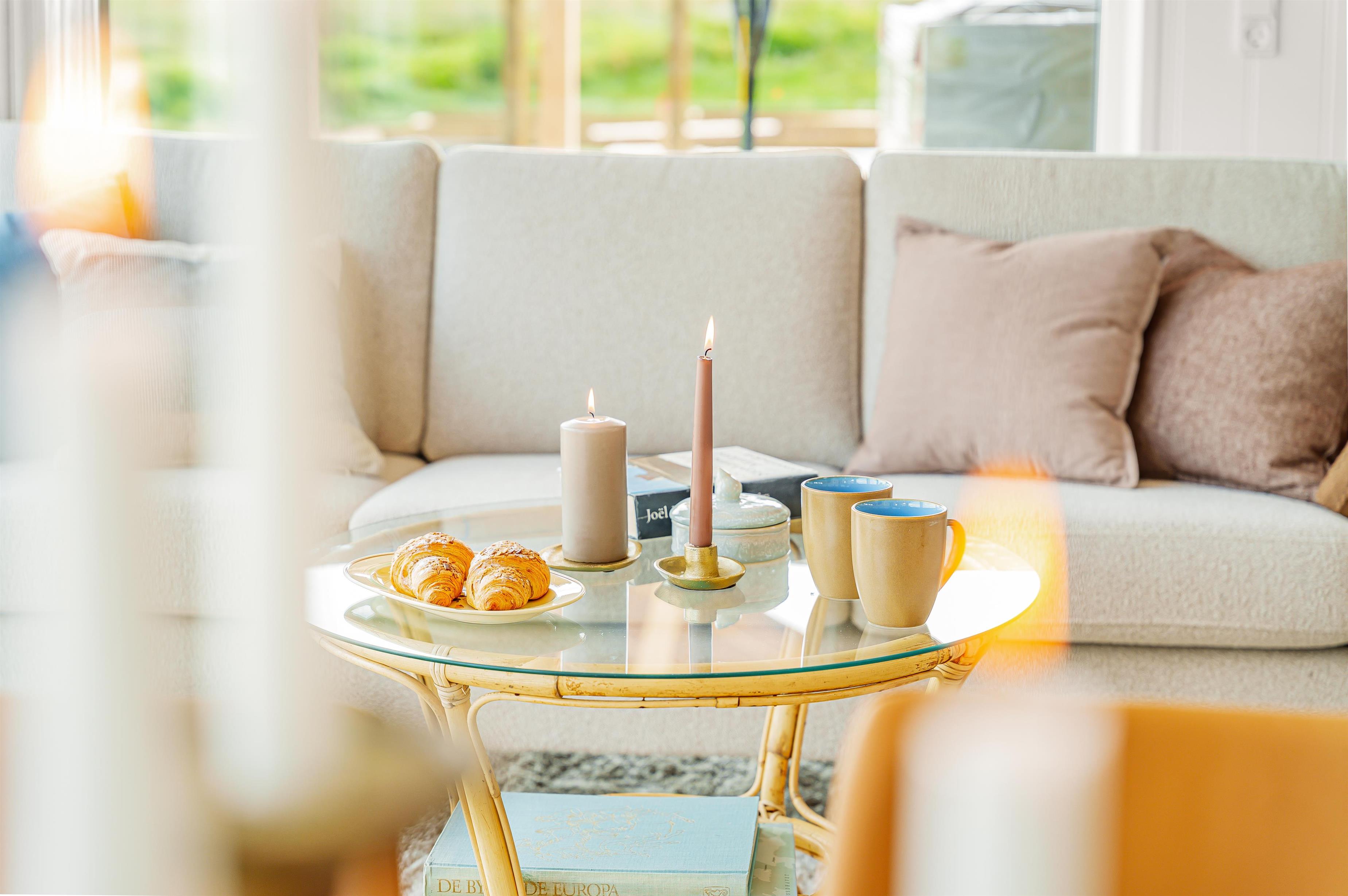 Slap af i de nye kvalitetsmøbler og se TV på husets Smart-TV med indbyggede danske og tyske kanaler via fibernet, radio samt mulighed for streamingtjenester.