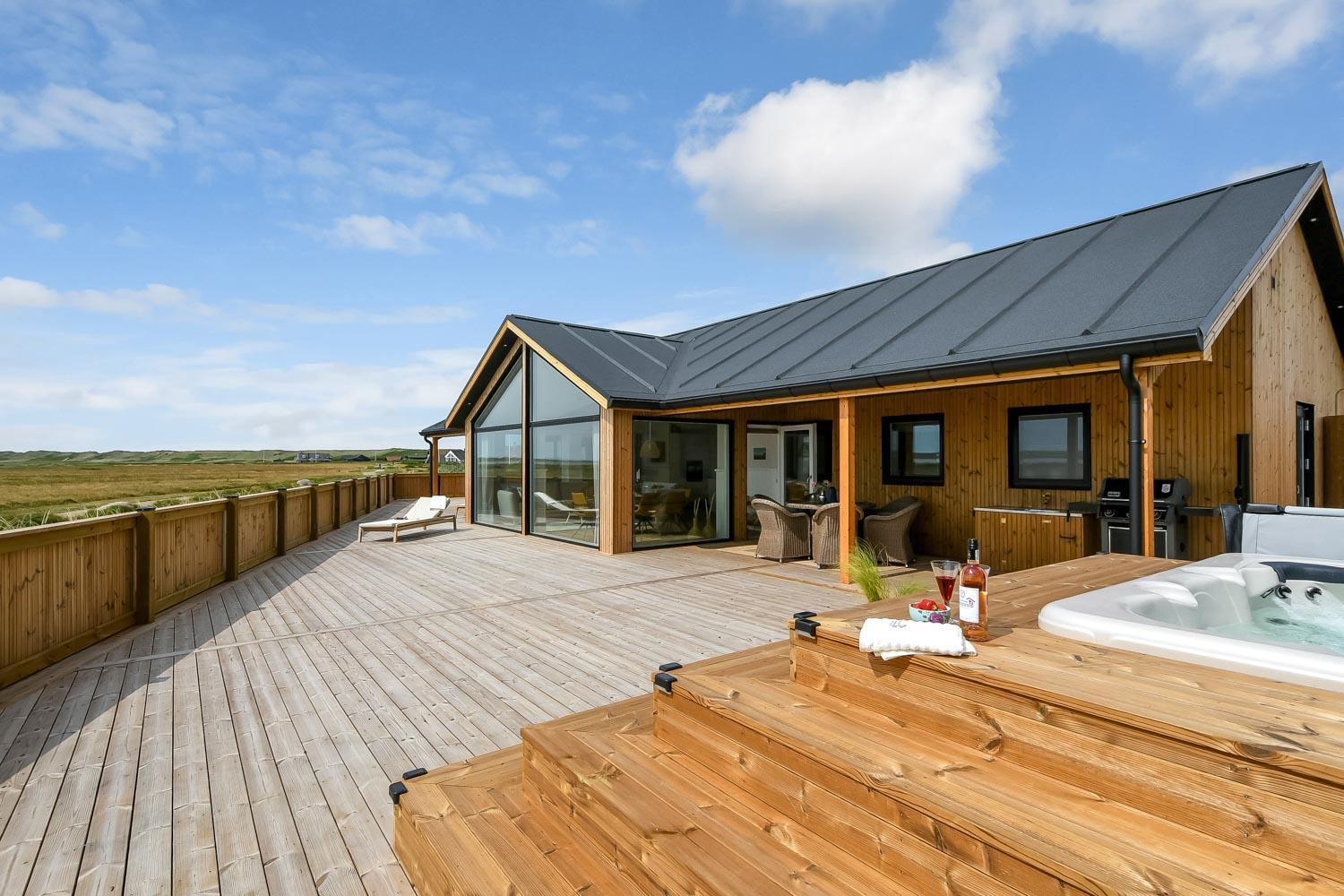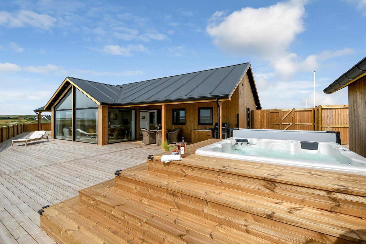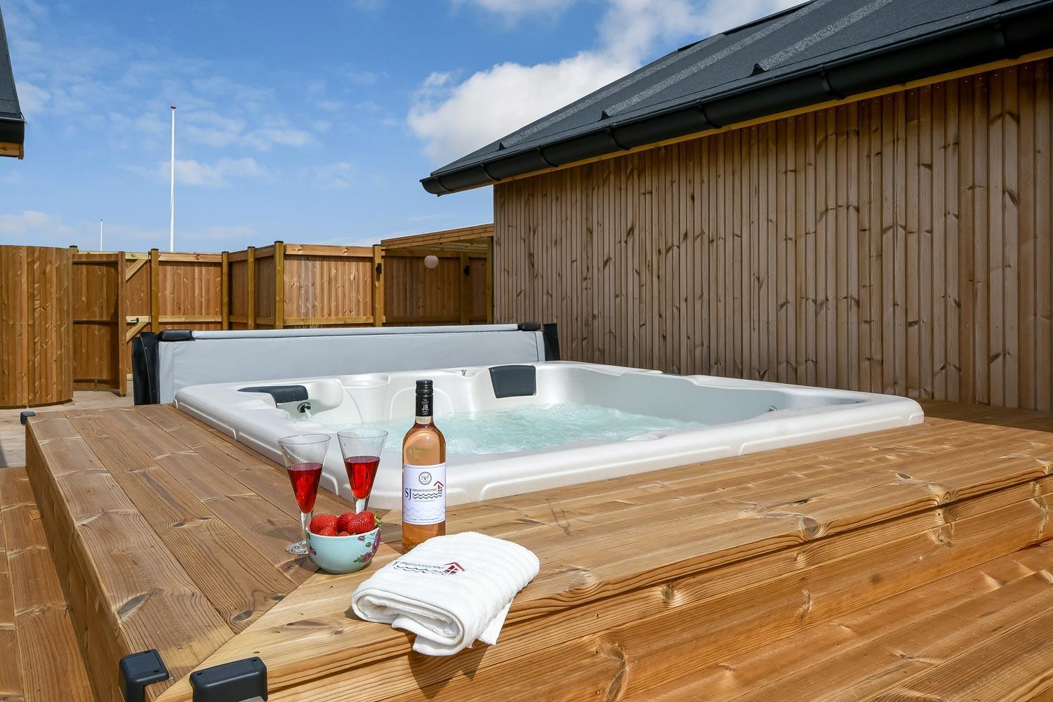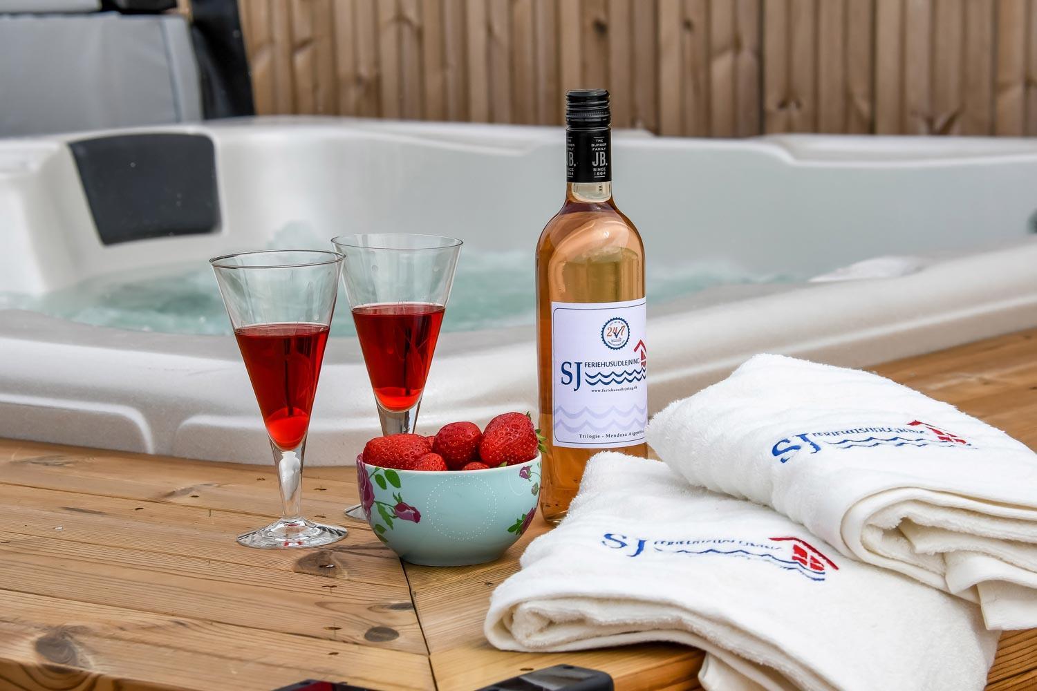 Den udendørs spa giver en helt særlig oplevelse – især på mørke aftener under den klare stjernehimmel. En udendørs bruser er placeret tæt på spaen, så man kan skylle sig, inden man sænker sig ned i det varme vand. Ren terapi for krop og sjæl.