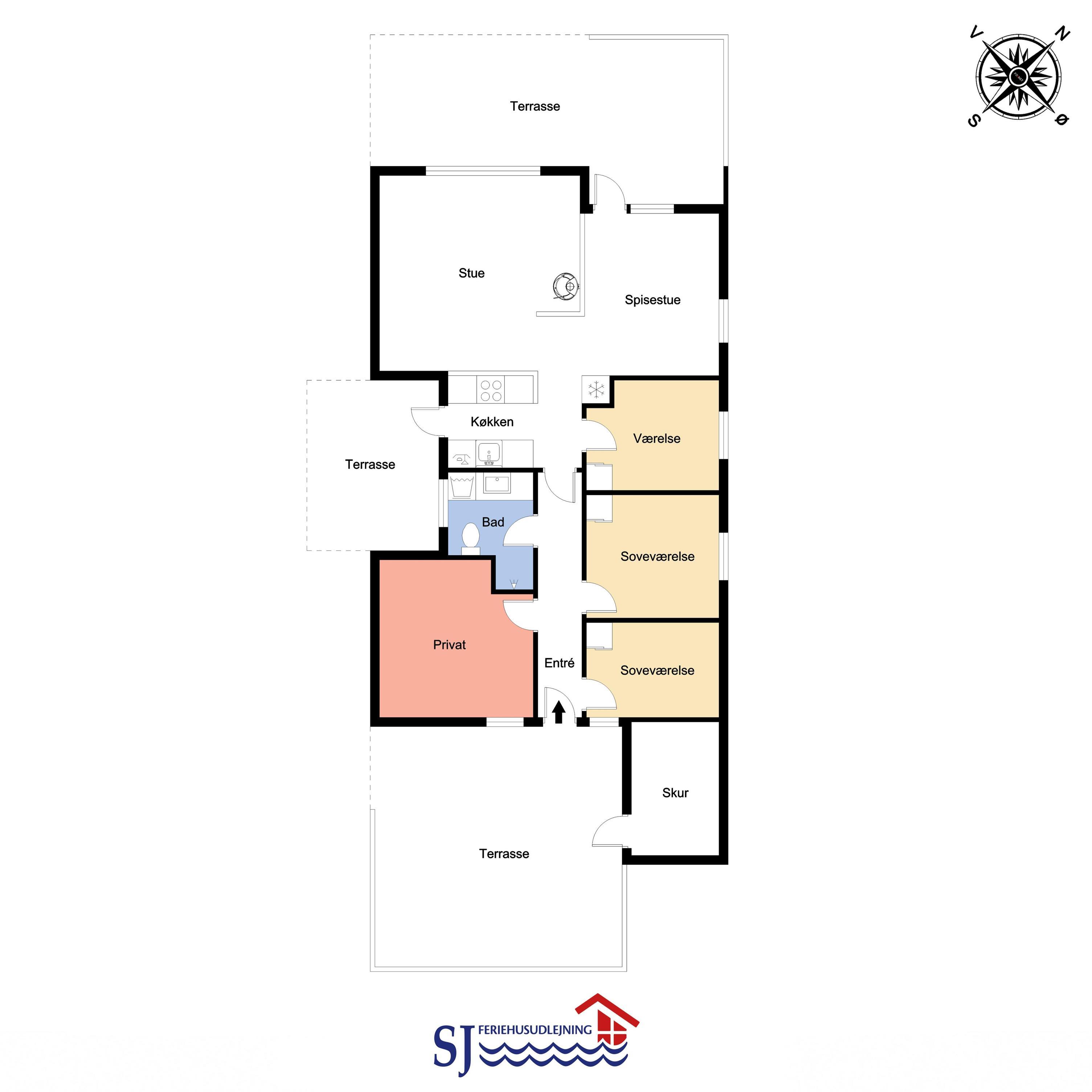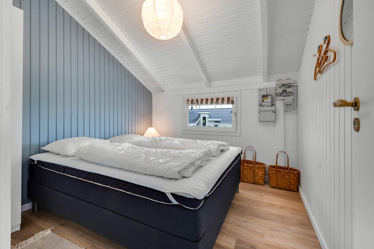 Godt indrettet 76 m2 stort træhus. Huset er bygget i 1978 og renoveret i 2024 således med nyt køkken og badeværelse. 3 soveværelser (1DS, 1DS, 2ES). En praktisk og lys entré byder jer velkommen. For enden af entréen træder man ind i huset helt nye køkken med induktionskogeplader og indbygget bordemhætte, indbygningsovn, opvaskemaskine og køleskab med fryseboks. Køkkenet er kombineret med opholds-/spisestuen. Opholdsstuen som er nedsænket i forhold til køkken og spiseafdeling er med lædermøbler og stofmøbler og en dejlig brændeovn. TV kun med tysk programmer. Danske tv-kanaler streames via chromecast, så har du en mobiltelefon eller et andet device med kan du streame, hvad du nu har af abonnement. Der er anlæg, hvor man ligeledes kan streame sin egen musik. Der er pergo trægulv i hele huset. Badeværelset er i mikrocement. Badeværelse med toilet, håndvask og bruser. Vaskemaskine. Husdyr ikke tilladt. Ikke rygerhus.