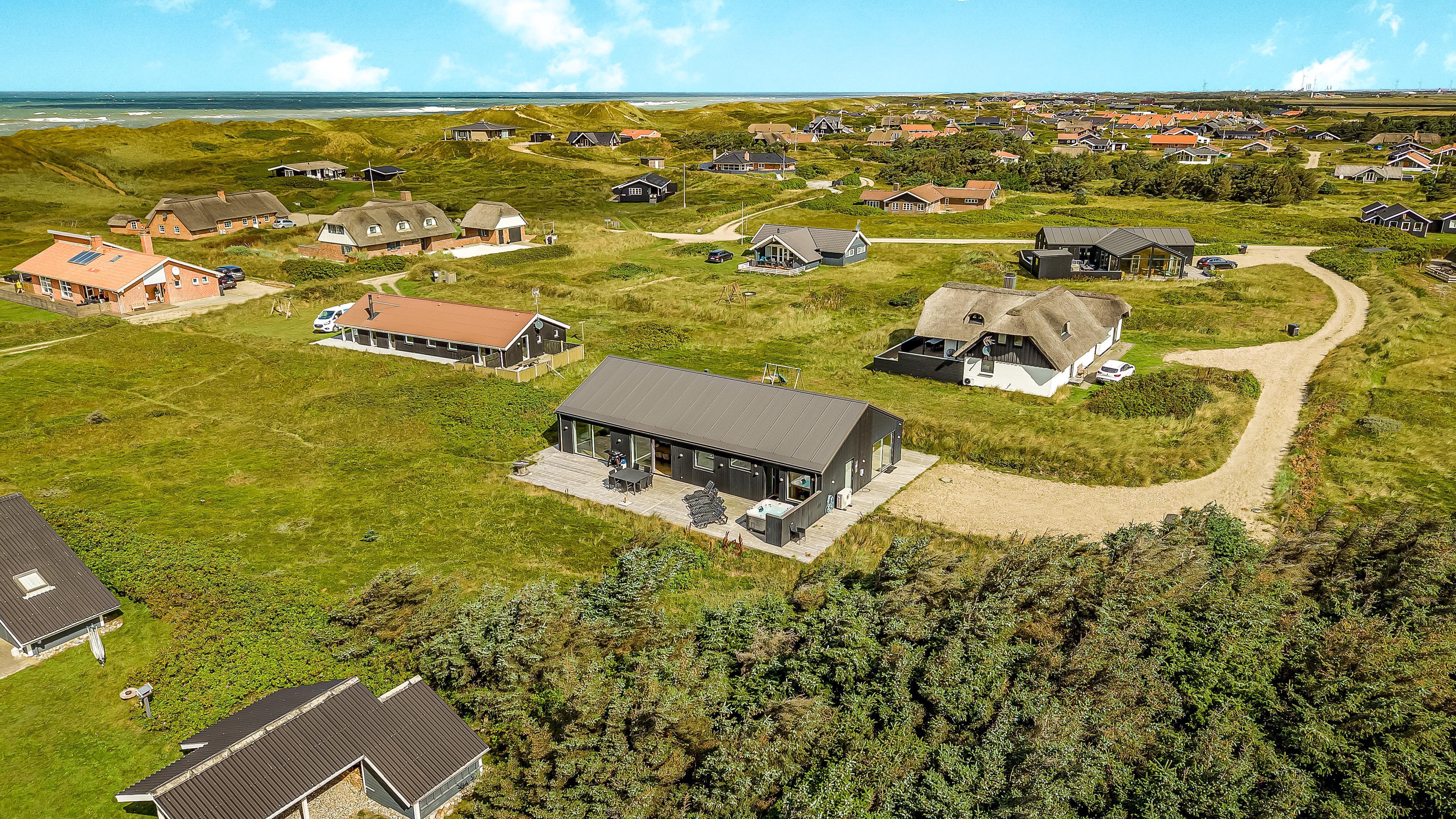 Fuldstændig unikt og fantastisk beliggende, nybygget, energibesparende luksushus. Huset er bygget tæt ved Vesterhavet med fantastisk udsigt til de høje klitter ved Vesterhavet og tæt ved til Ferring Sø. Moderne liebhaverbyggeri som er noget ganske særligt. Der er bl.a. stort udendørs spa til 5 personer, sauna, gratis fibernet (200 mbit) og aktivitetsrum med bl.a. billard og bordfodbold. Et hus med plads til max. 8 personer som kan nyde denne luksus. En rolig stund, en plads i solen eller konkurrencer i aktivitetsrummet er blot noget af det huset tilbyder.
