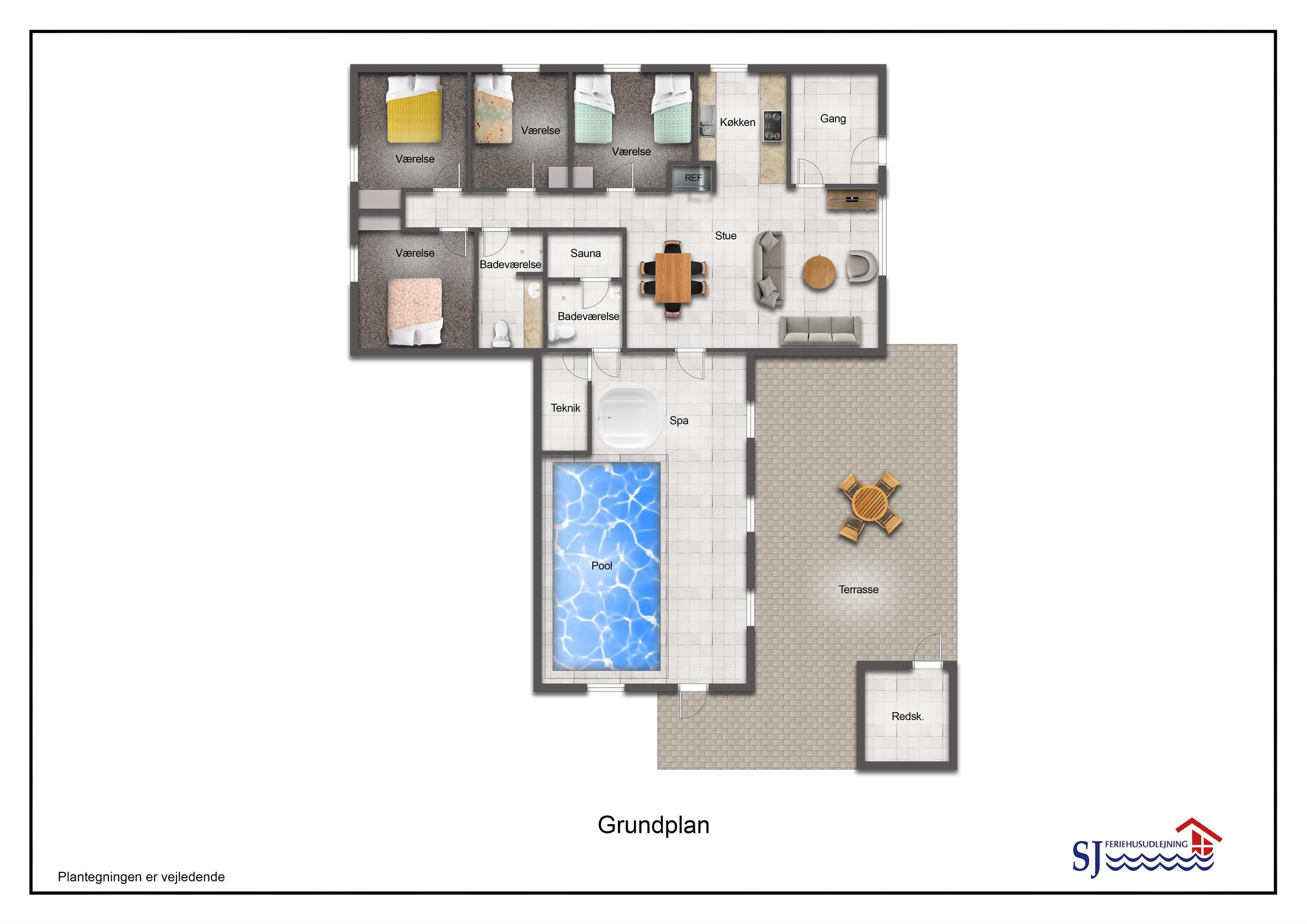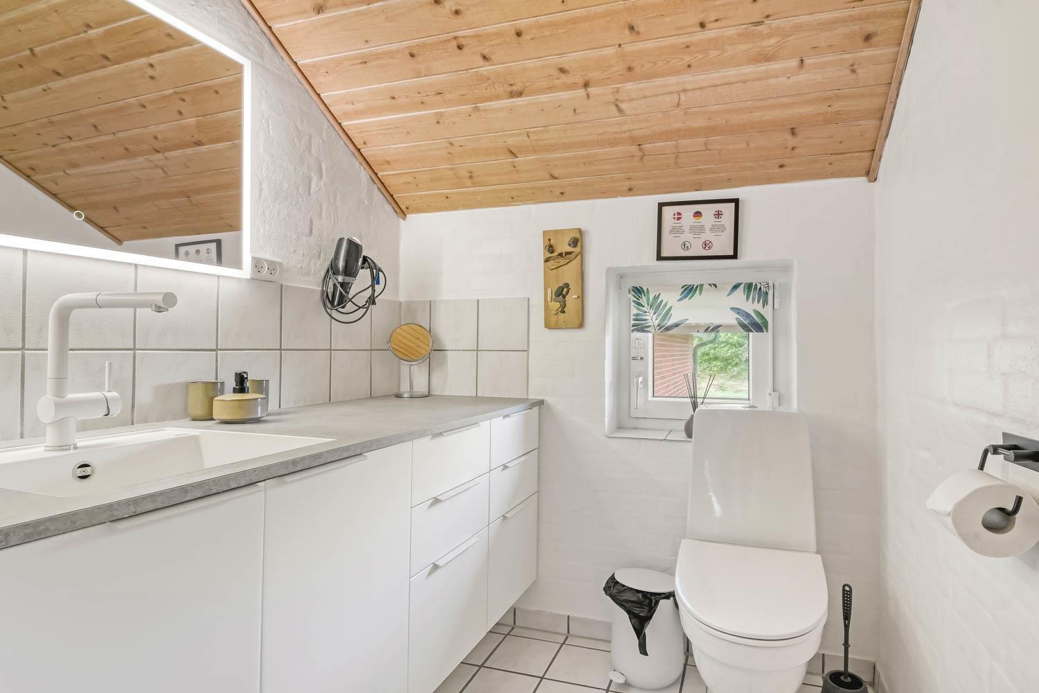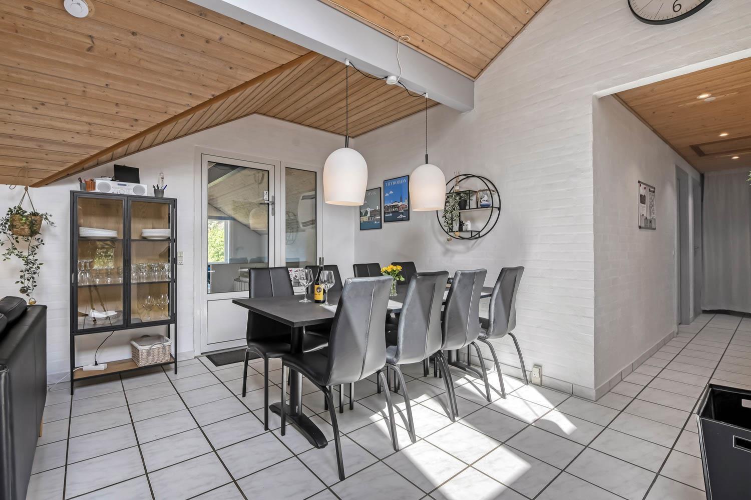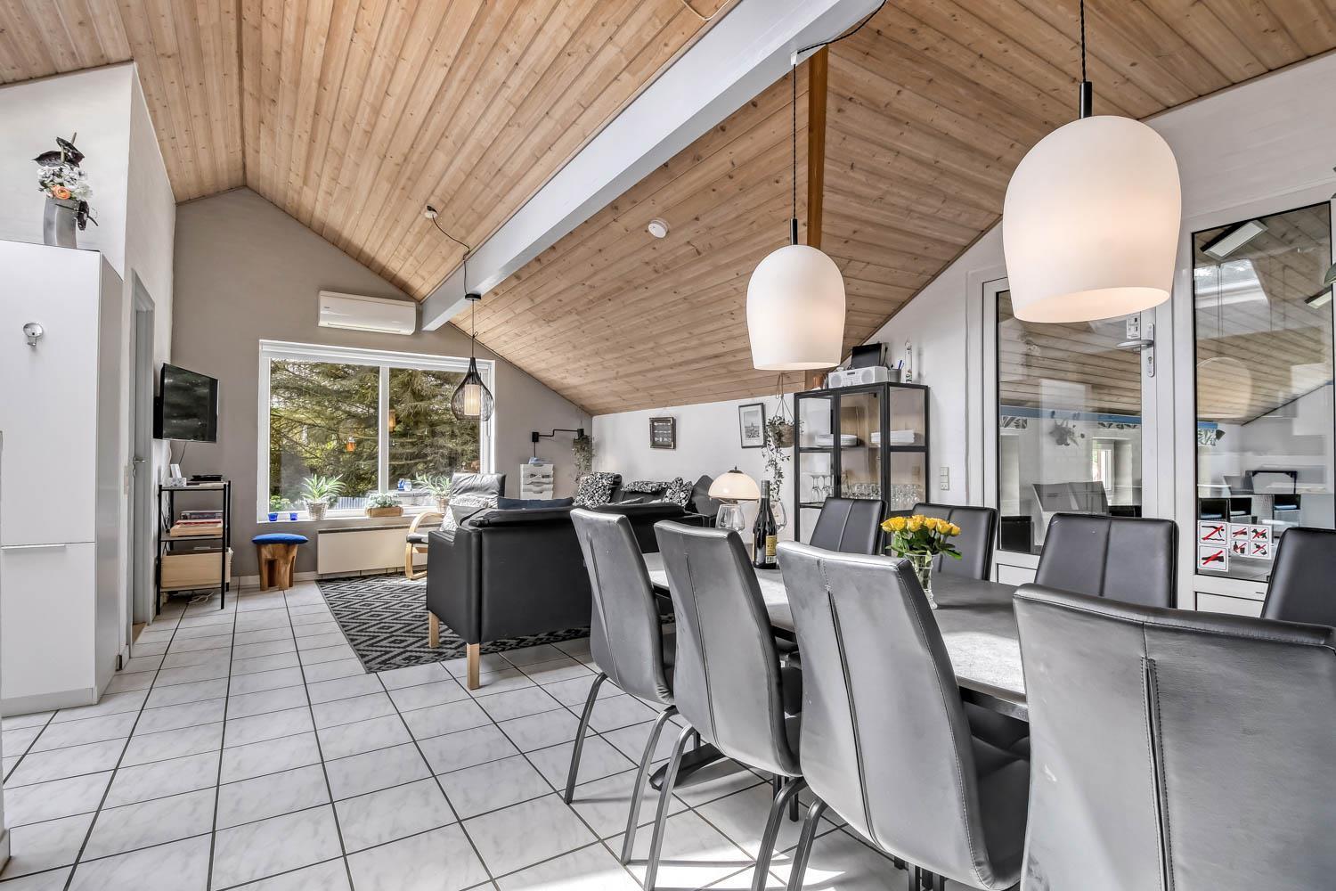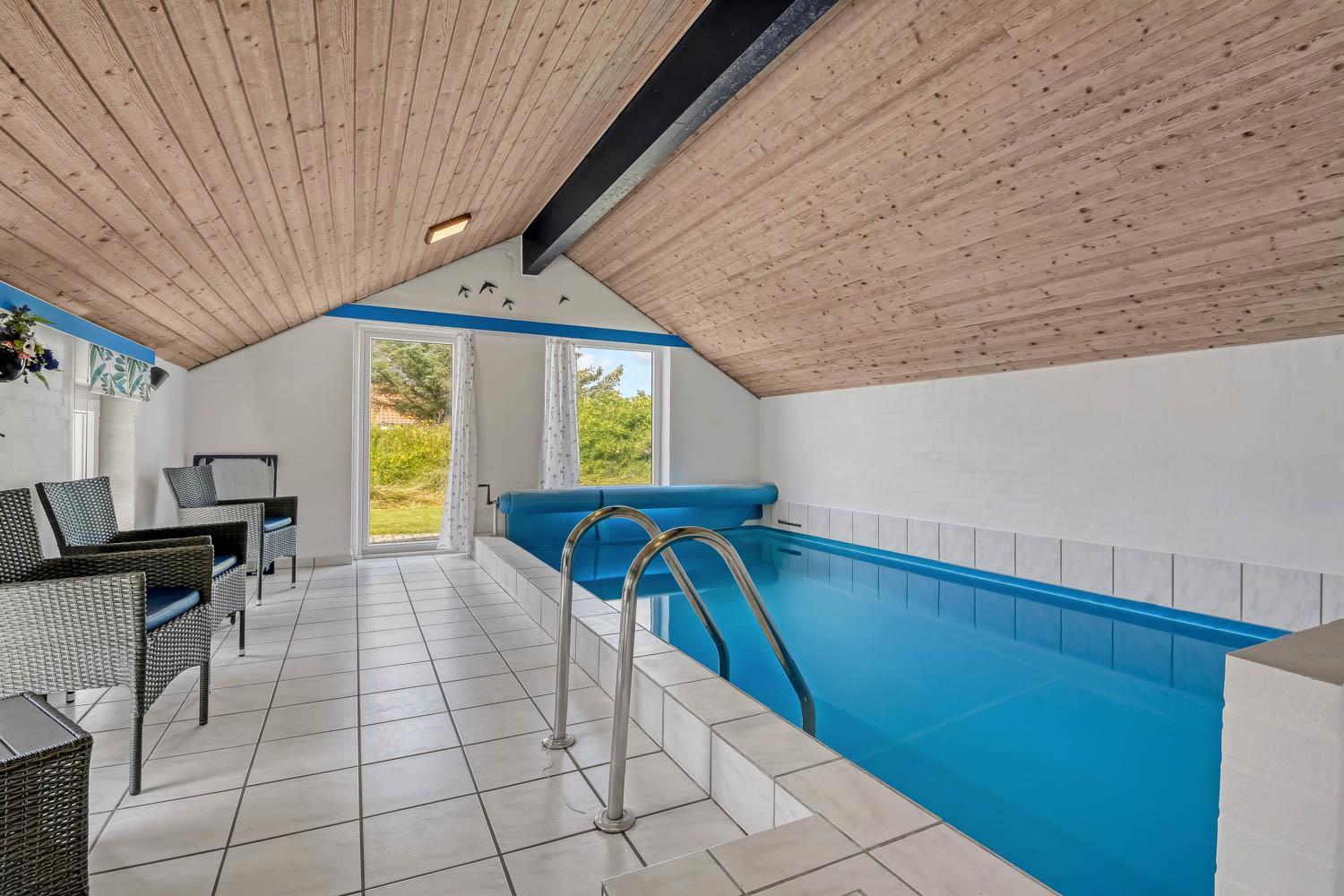 Huset er 153 m2 stort og har 4 dejlige soverum (1xdobbeltseng, 1xdobbeltseng, 2xenkeltsenge og 2xenkeltsenge). I hjertet af huset findes et veludstyret køkken/alrum hvor loftet går til kip og hvor de store vinduer bidrager til den hyggelige feriestemning. Her er alt i hårde hvidevarer; komfur med glaskeramiske kogeplader, emhætte, opvaskemaskine, mikroovn, køle-/fryseskab med fryseboks. Nyd maden ved spisebordet eller slap af i de behagelige sofamøbler. TV i stuen er med danske og tyske kanaler, DVD og CD afspiller. Skulle det blive for koldt, eller skal stemningen blusses op, sætter man blot gang i husets brændeovn, hvor flammerne og den intensive varme kan nydes og sammen med husets varmepumpe er de begge medvirkende til en god varme samt et lavere forbrug. Der er hvide klinkegulve i stue og køkkenområde med gulvvarme og der er gulvtæpper i soveværelserne. Husets wellness pool-afdeling rummer udover poolen et ekstra TV, spabad og en sauna og huset har hele 2 badeværelser, med toilet, bruser, håndvask samt gulvvarme. Vaskemaskine og tørretumbler er en selvfølge og er placeret i husets entré. Der er udgang til husets store indhegnede terrasse. På terrassen er der havemøbler, parasol. Huset er et ”ikke ryger hus”. Max. 2 husdyr er tilladt. Der er installeret varmepumpe i huset, hvilket betyder at du som gæst kan spare en del på din elvarmeregning - varmepumpen leverer op til 4 gange så meget effekt, som den bruger. I udhuset er der en ekstra 100 l fryser. Huset lejes ikke ud til ungdomsgrupper. Har man el-bil eller en Plug-In hybrid, så er der mulighed for opladning gennem opsat ladeboks på gavlen i den nordlige ende af huset. Til de mindste gæster er der en højstol. Depositum vintersæson kr. 4.500 og sommersæson kr. 2.500.