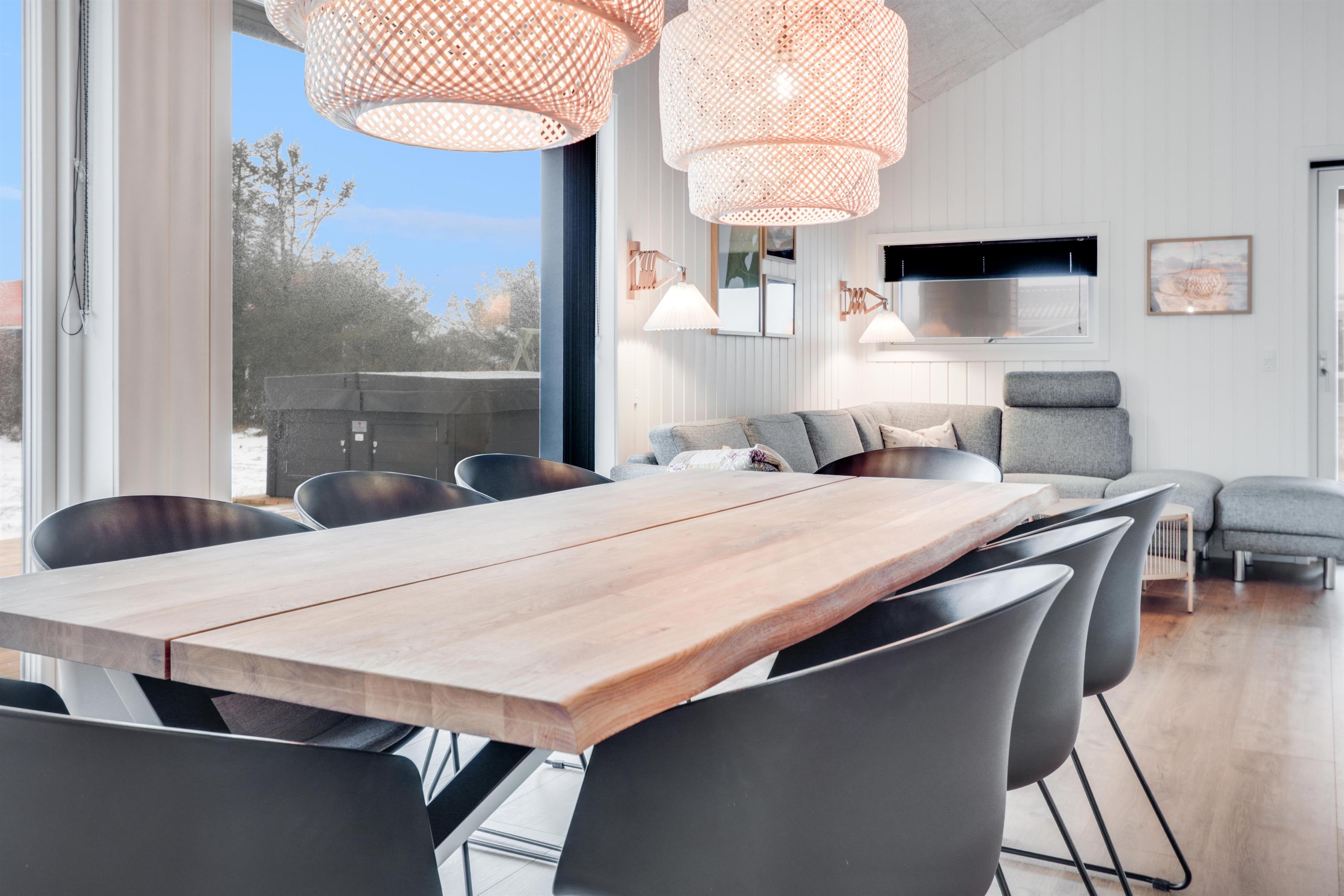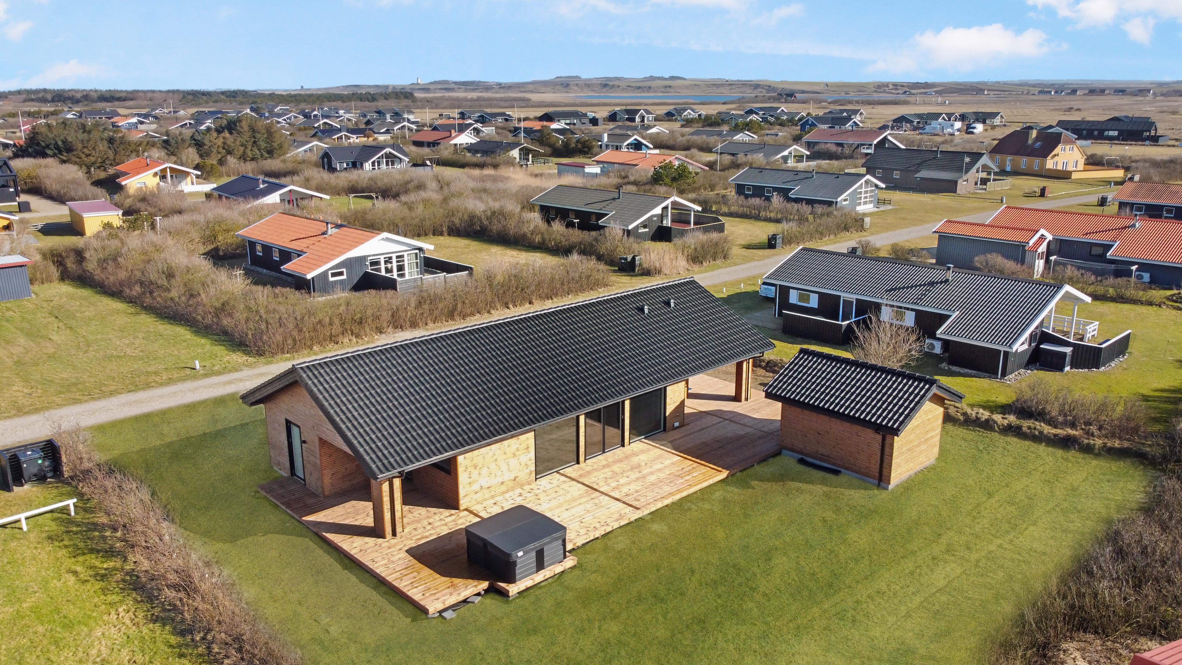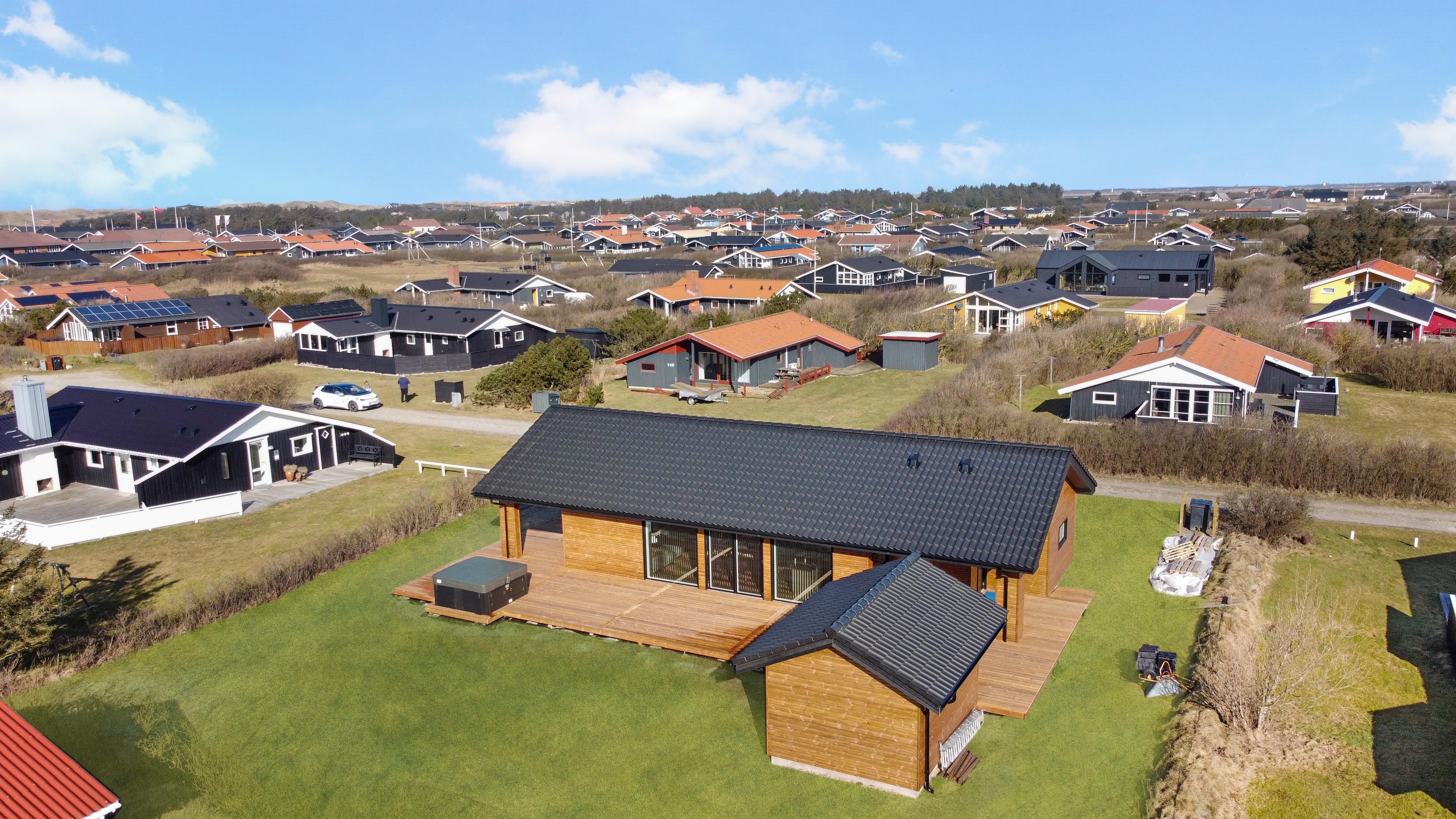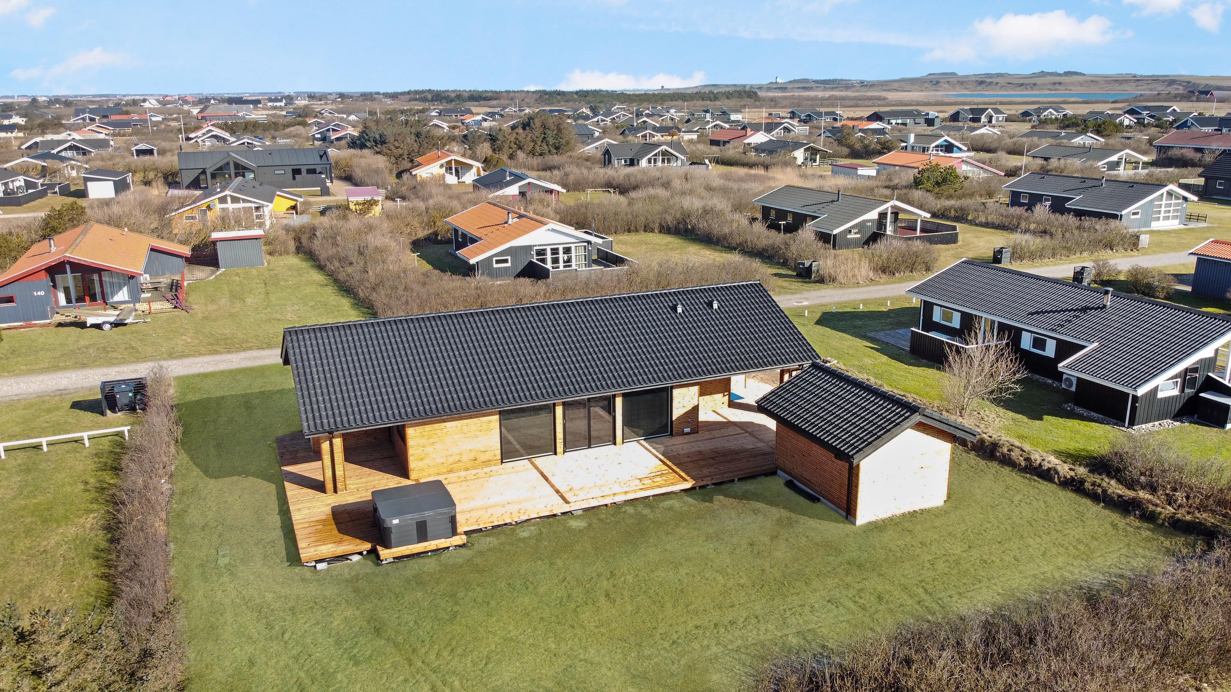 Dette nyopførte feriehus står klar til udlejning fra den 11. april 2026. Huset er ideelt beliggende med kig til klitterne og byder på skønne udendørs faciliteter, herunder en delvist overdækket terrasse, udendørs jacuzzi og masser af plads til solbadning og afslapning. Her er rammerne sat for den perfekte ferie.