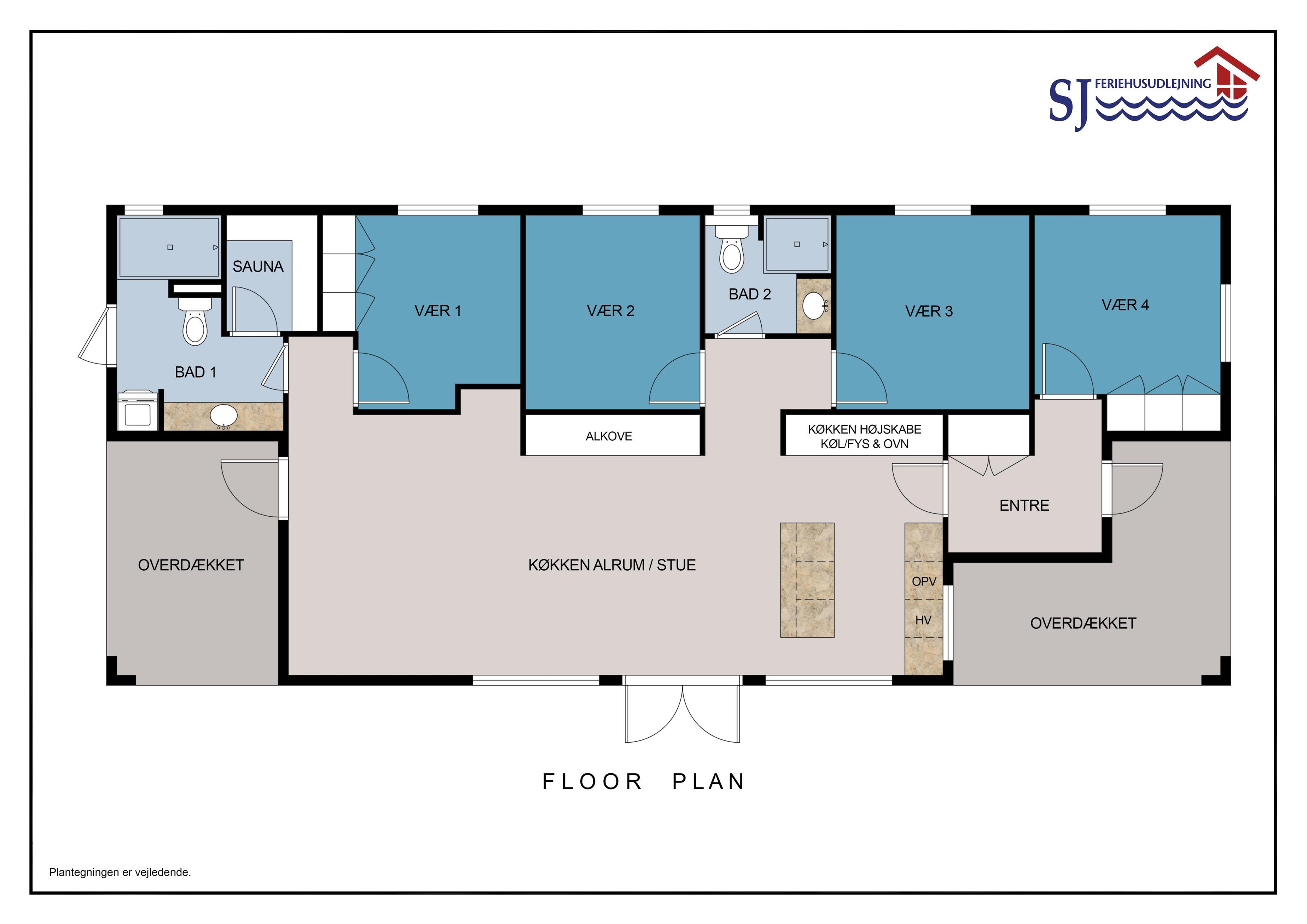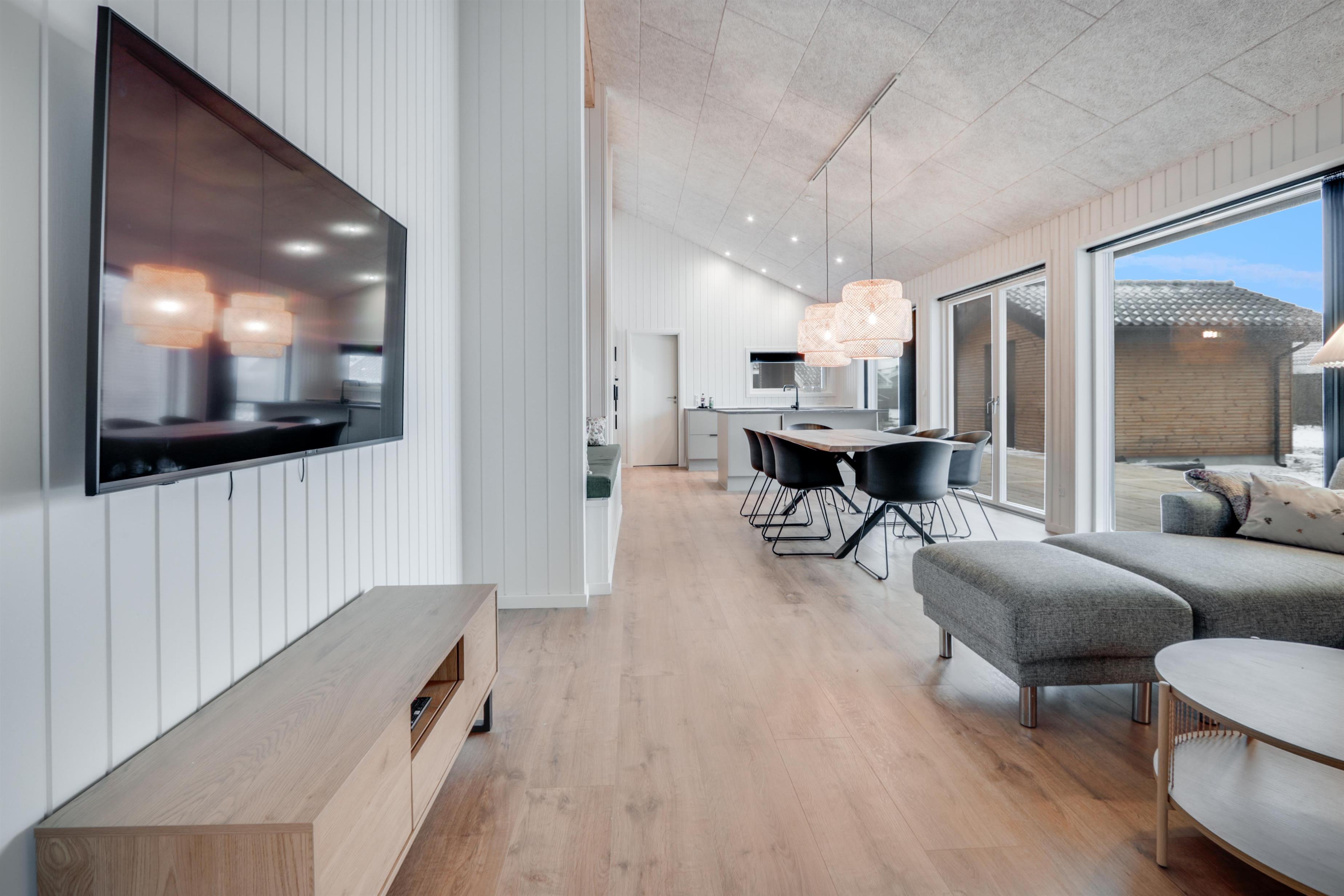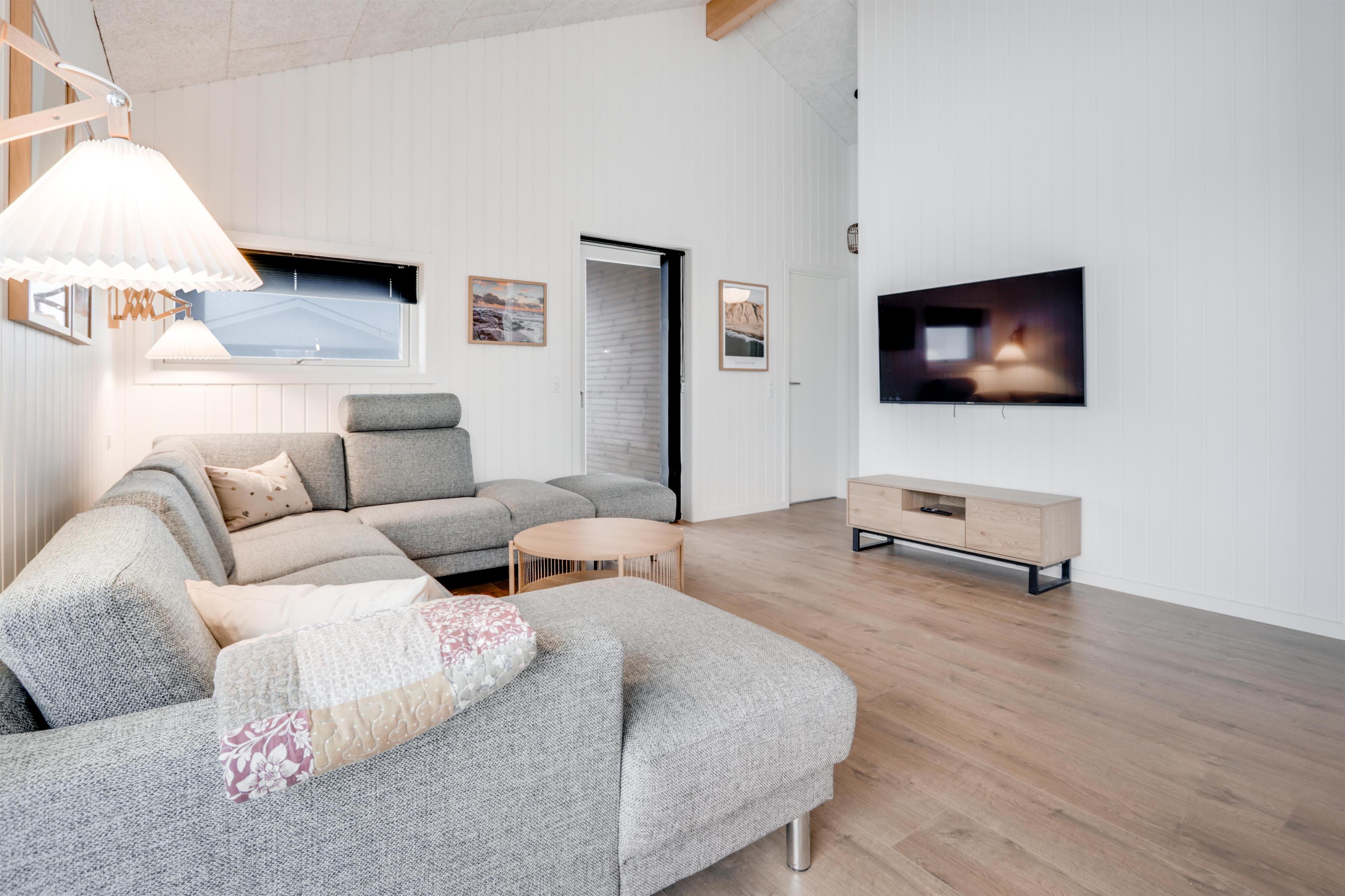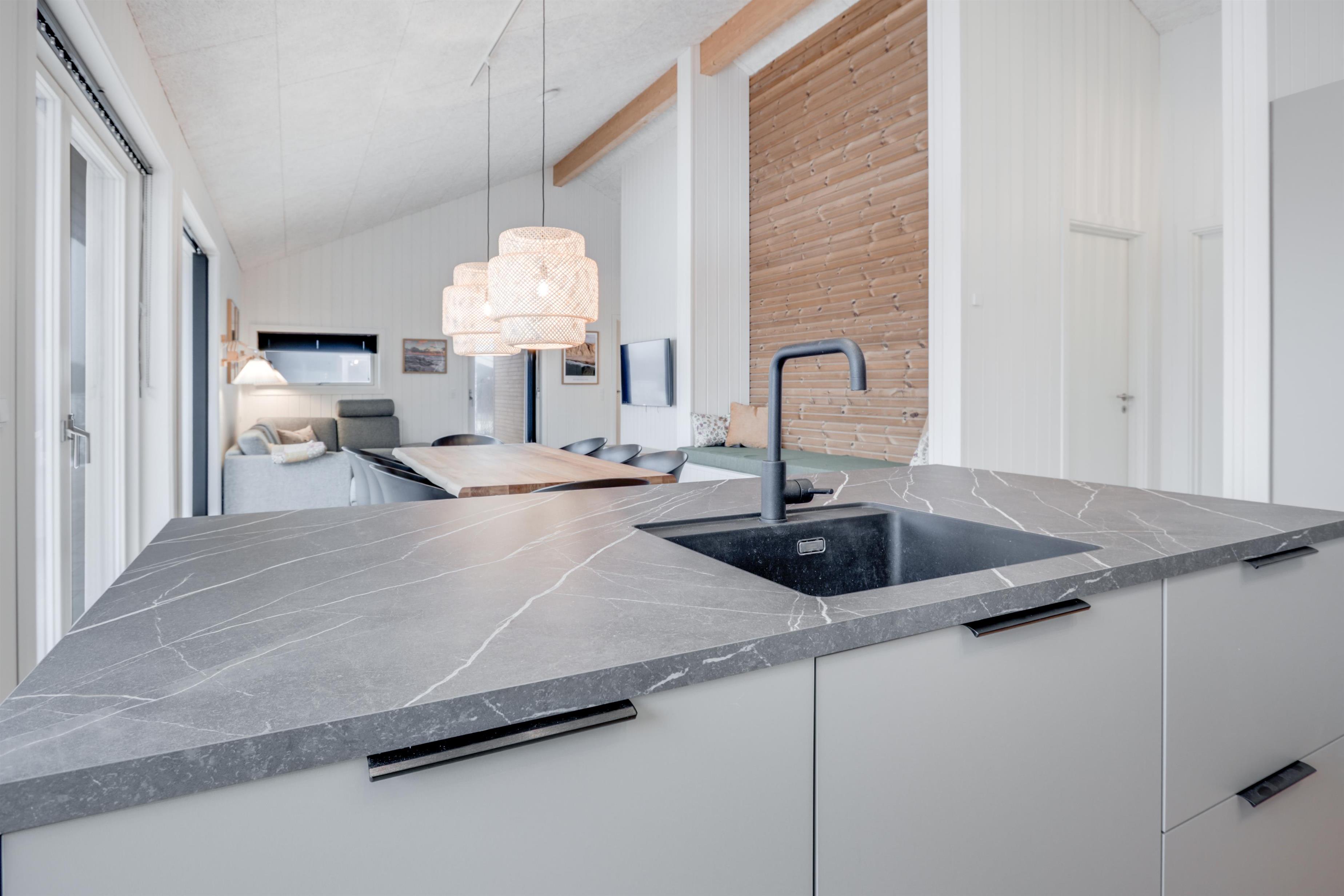 Det 118 m² store feriehus er moderne og velindrettet med god plads og høj funktionalitet. Det centrale køkken/alrum er kombineret med en hyggelig opholdsstue – husets hjerte, hvor hele familien kan være sammen, uanset om der laves mad, spilles spil eller ses film. I alrummet findes også en indbydende alkove, perfekt til afslapning. Store vinduespartier giver masser af lys og udsigt til det smukke klitlandskab.