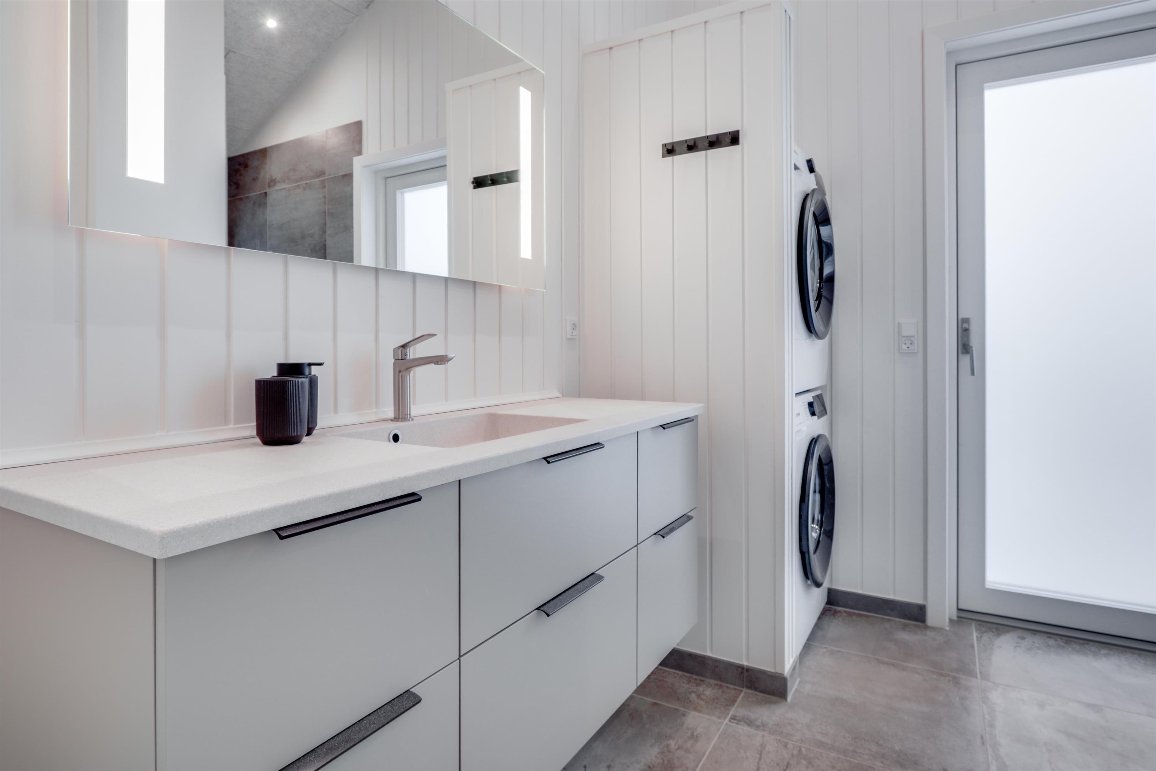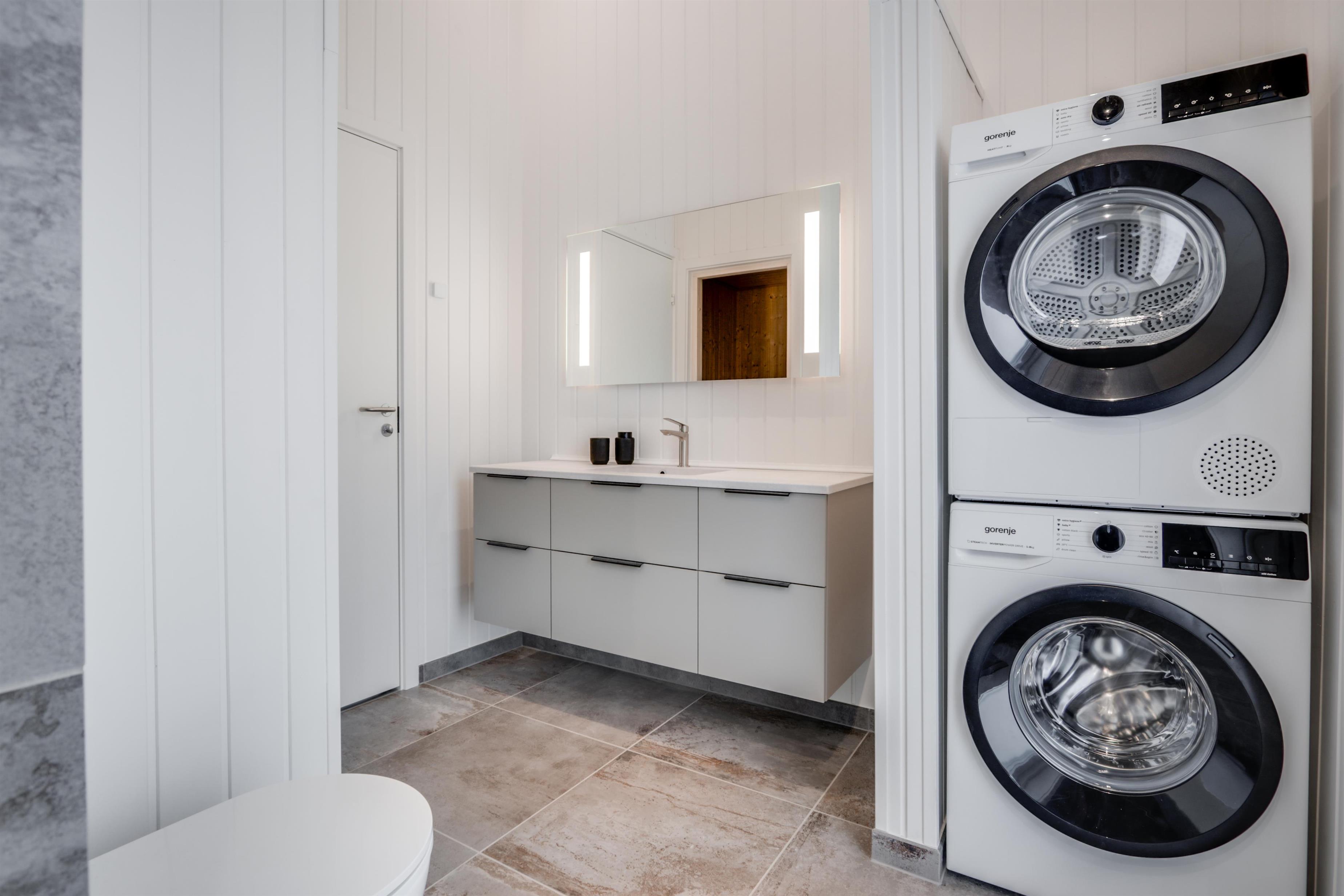 Derudover er der vaskemaskine og tørretumbler til fri afbenyttelse. Hele huset har gulvvarme, som drives af en luft-til-vand-varmepumpe.