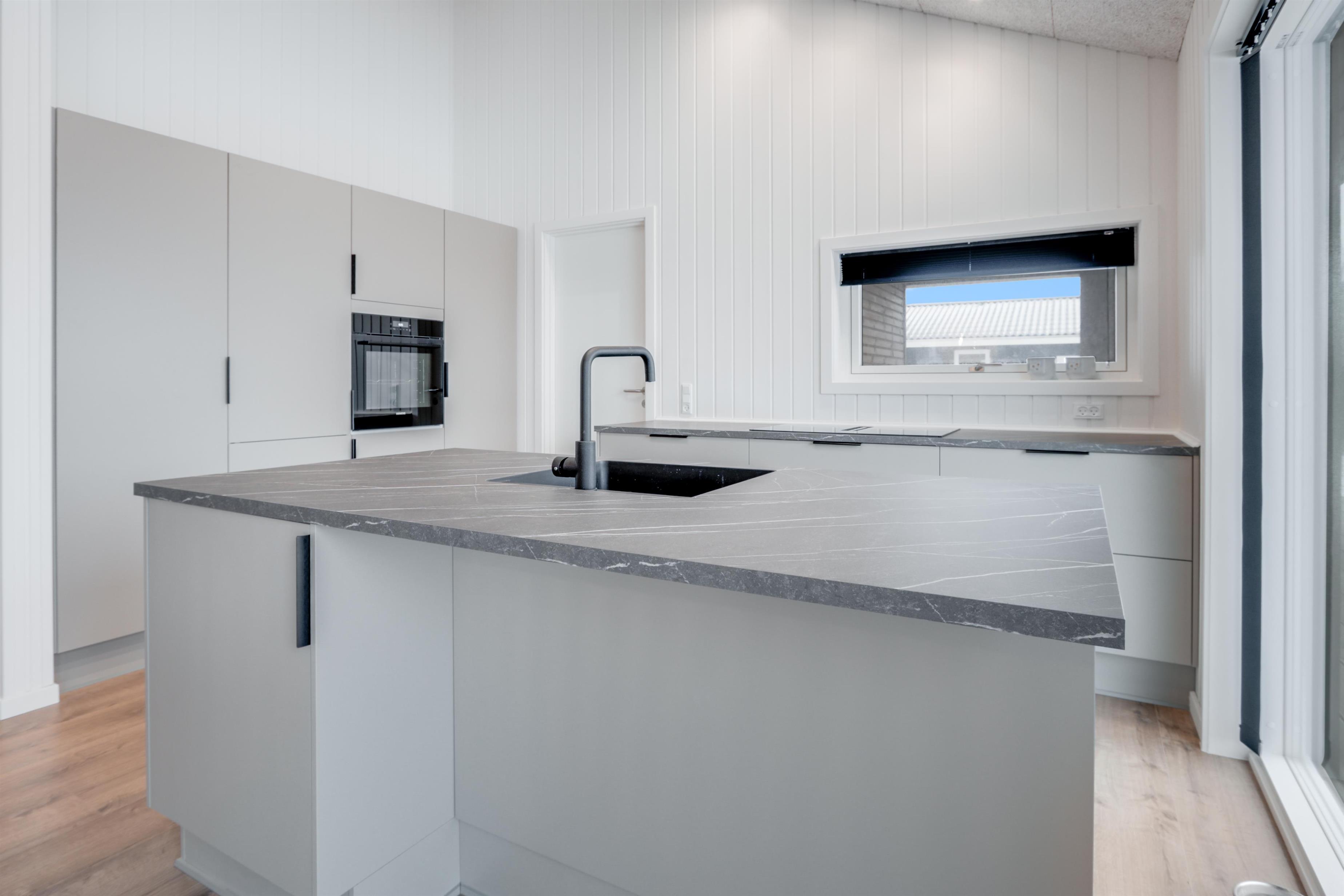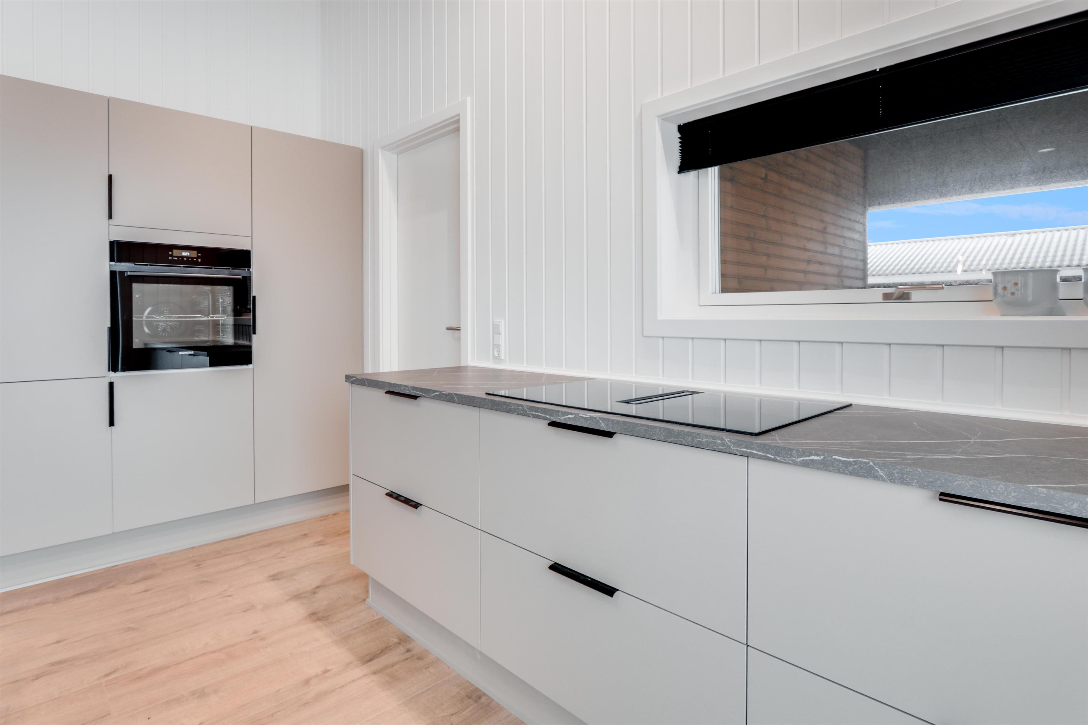 Køkkenet er moderne og fuldt udstyret med bl.a. induktionskogeplade, indbygningsovn, emhætte, køle-/fryseskab og opvaskemaskine.