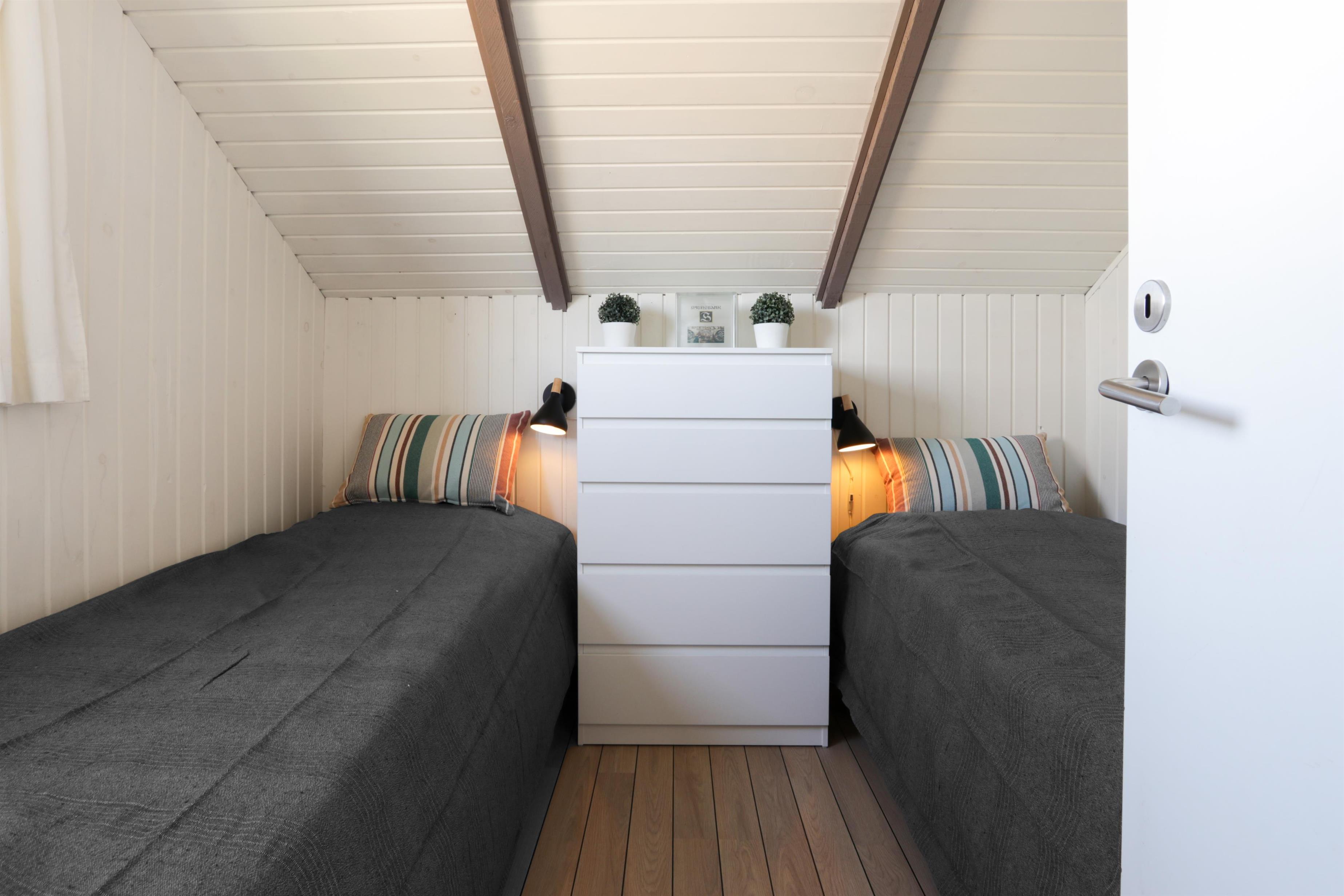 Dette velbeliggende feriehus har 3 soverum (1DS + 1DS + 2S). I børneværelset er der tv med Chromecast Desuden et depot f.eks til opbevaring af bagage. En lys og åben stue, hyggeligt indrettet med lædermøbler, spiseplads, stort drejeligt TV med danske og tyske kanaler samt Chromecast til streaming af alt det du selv har adgang til. Der er DVD/CD-afspiller og Sonos (til musik/radio) koblet til anlægget, som også kan spille lyden fra fjernsynet i højttalerne. For at sikre hurtigt internet til bl.a. streaming, har huset fået indlagt fiber og et effektivt dækkende WiFi. I huset findes desuden ca 50 DVD film til fri afbenyttelse, hvis ysten er til en inde-dag.