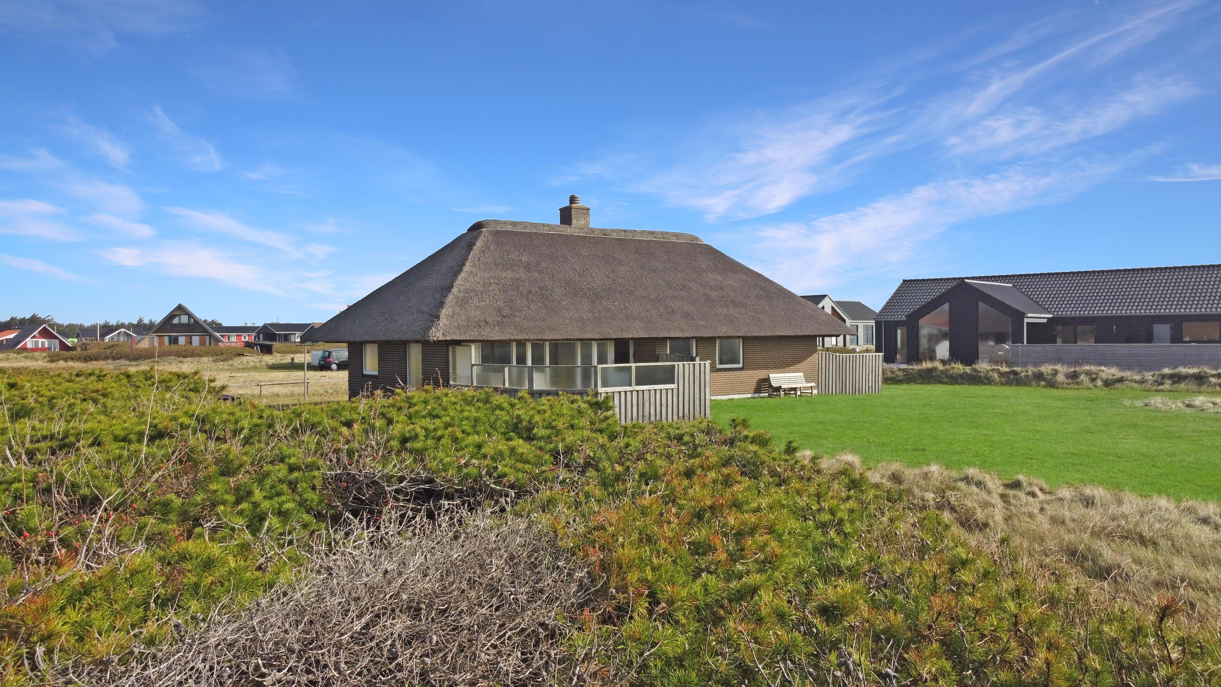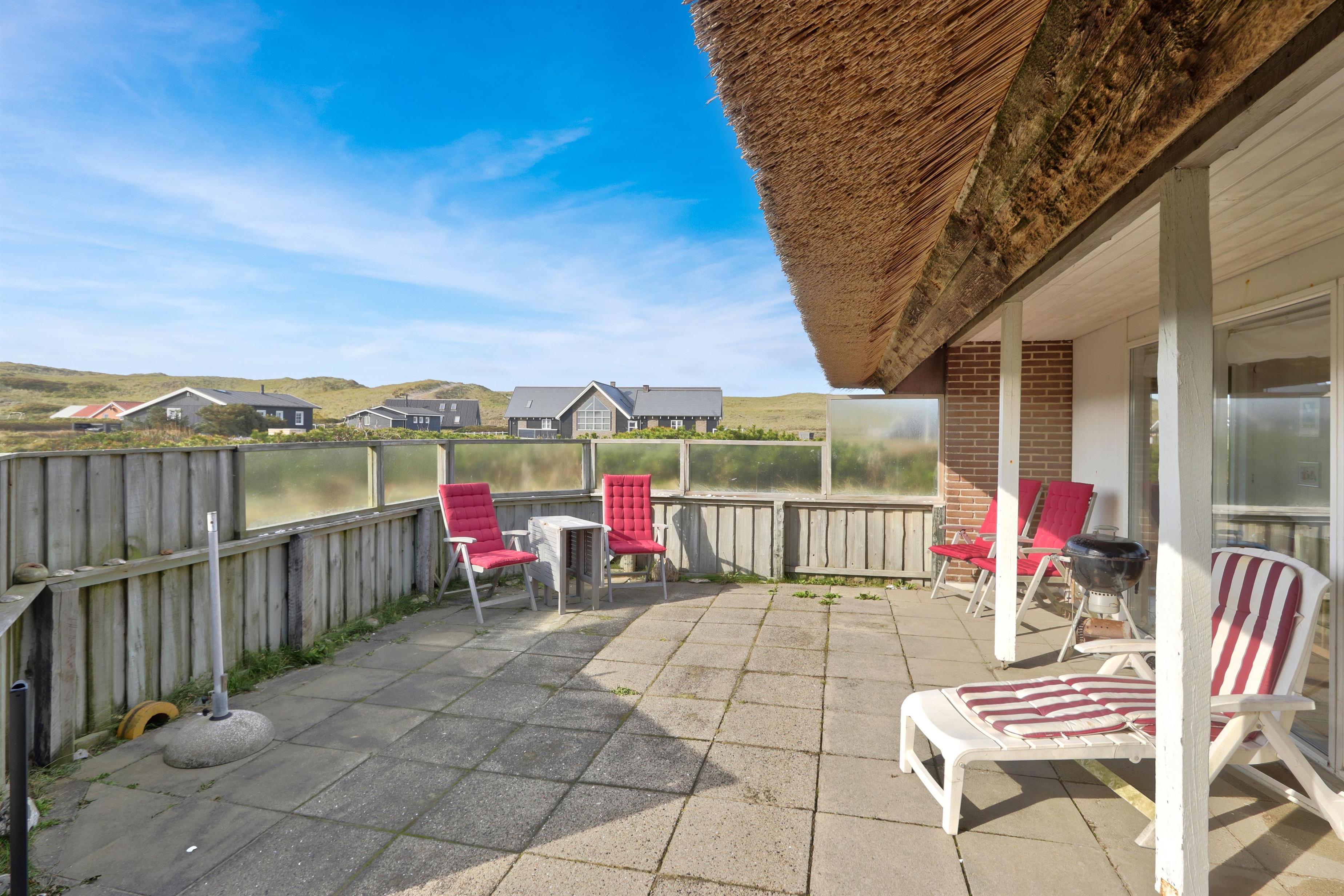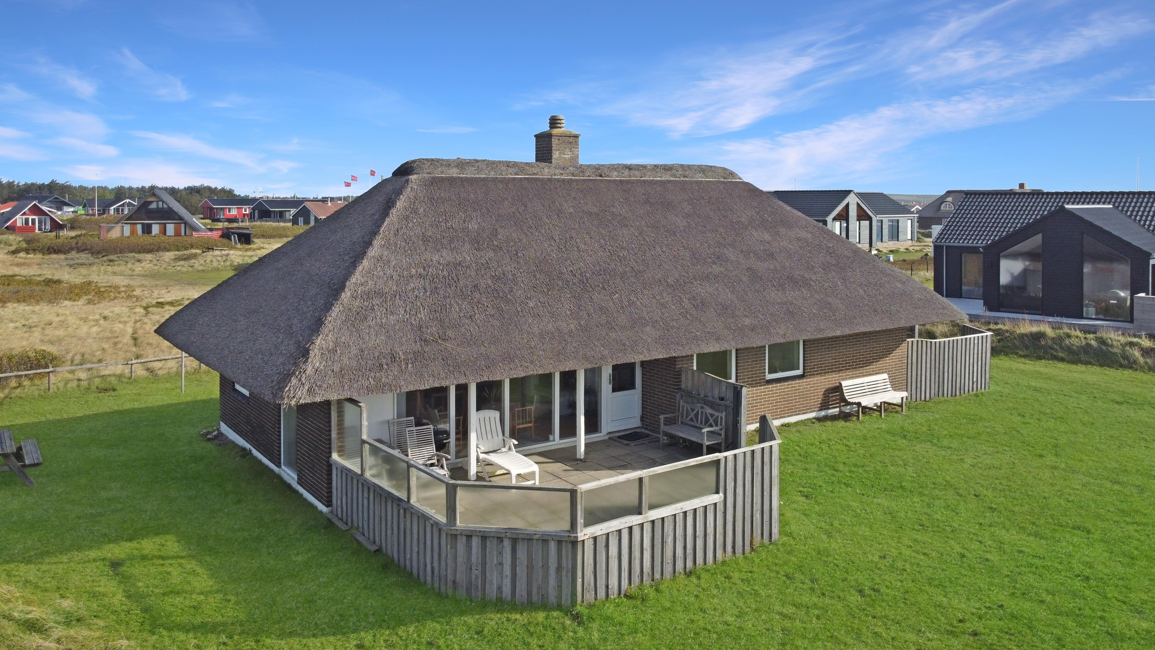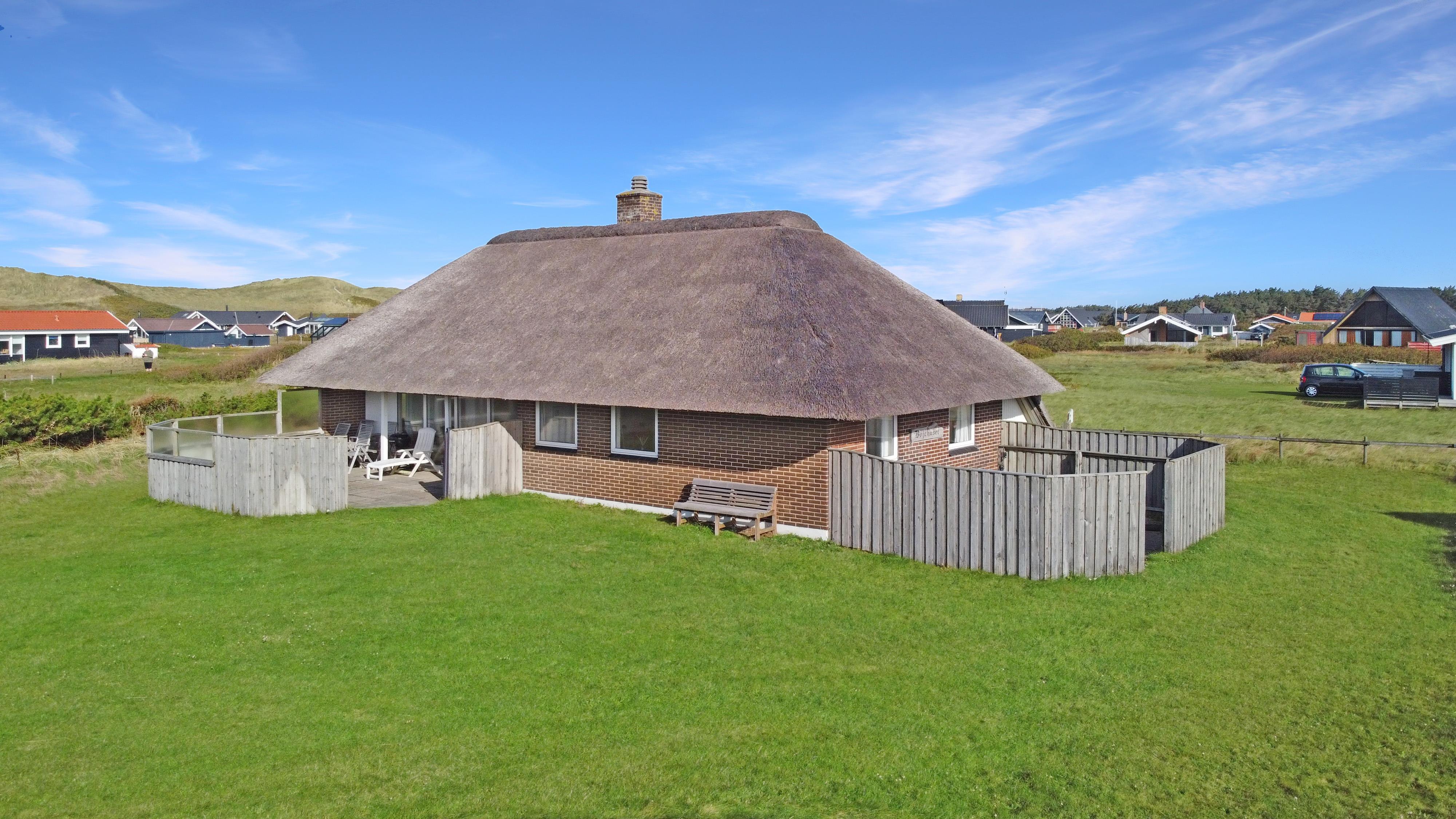 Huset ligger på en 2.536 m² stor naturgrund, kun 200 meter fra Vesterhavet. Der er en dejlig, delvist overdækket terrasse med havemøbler, liggestole og grill. Her er man godt beskyttet mod vinden og kan nyde udelivet året rundt.