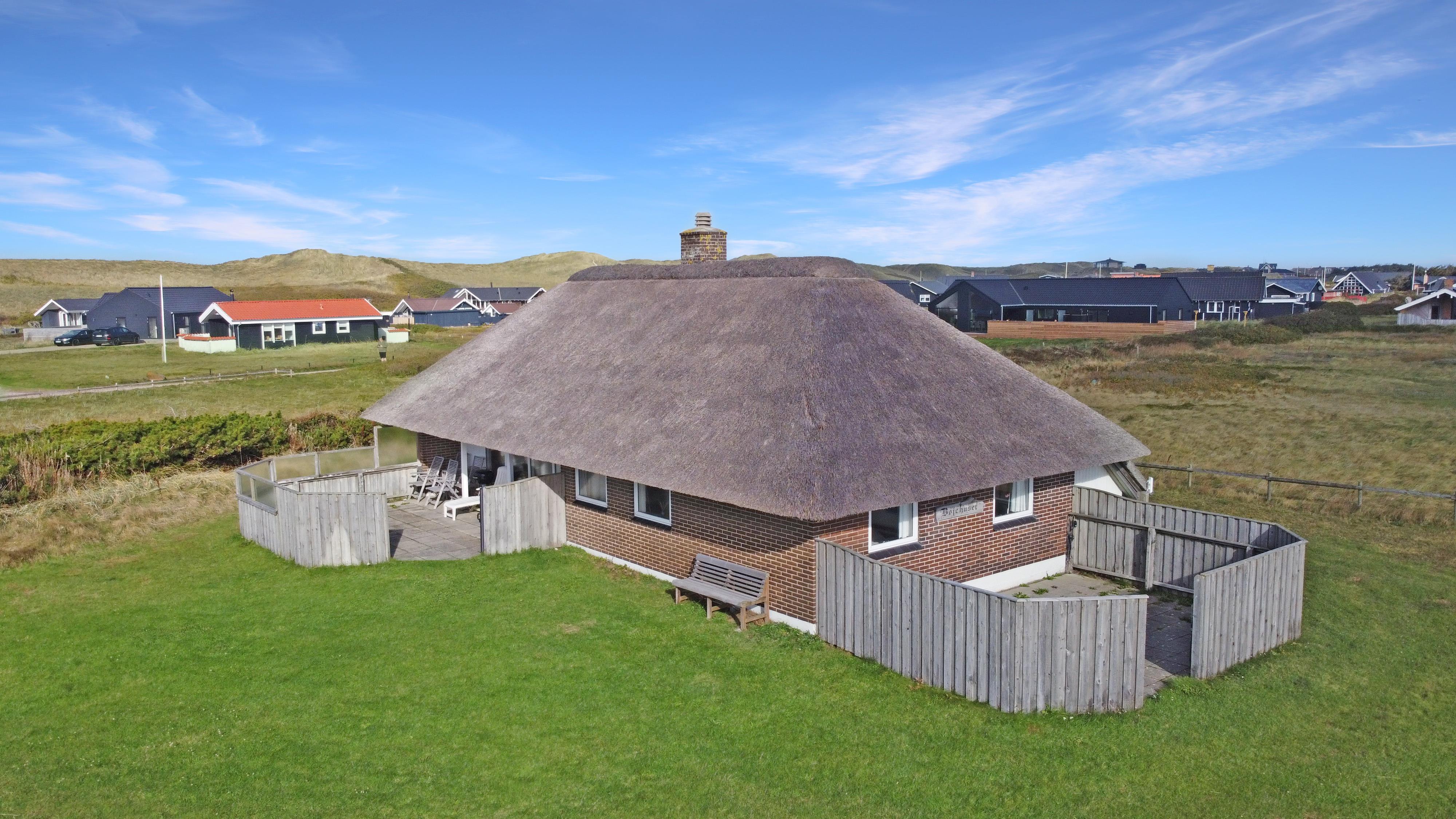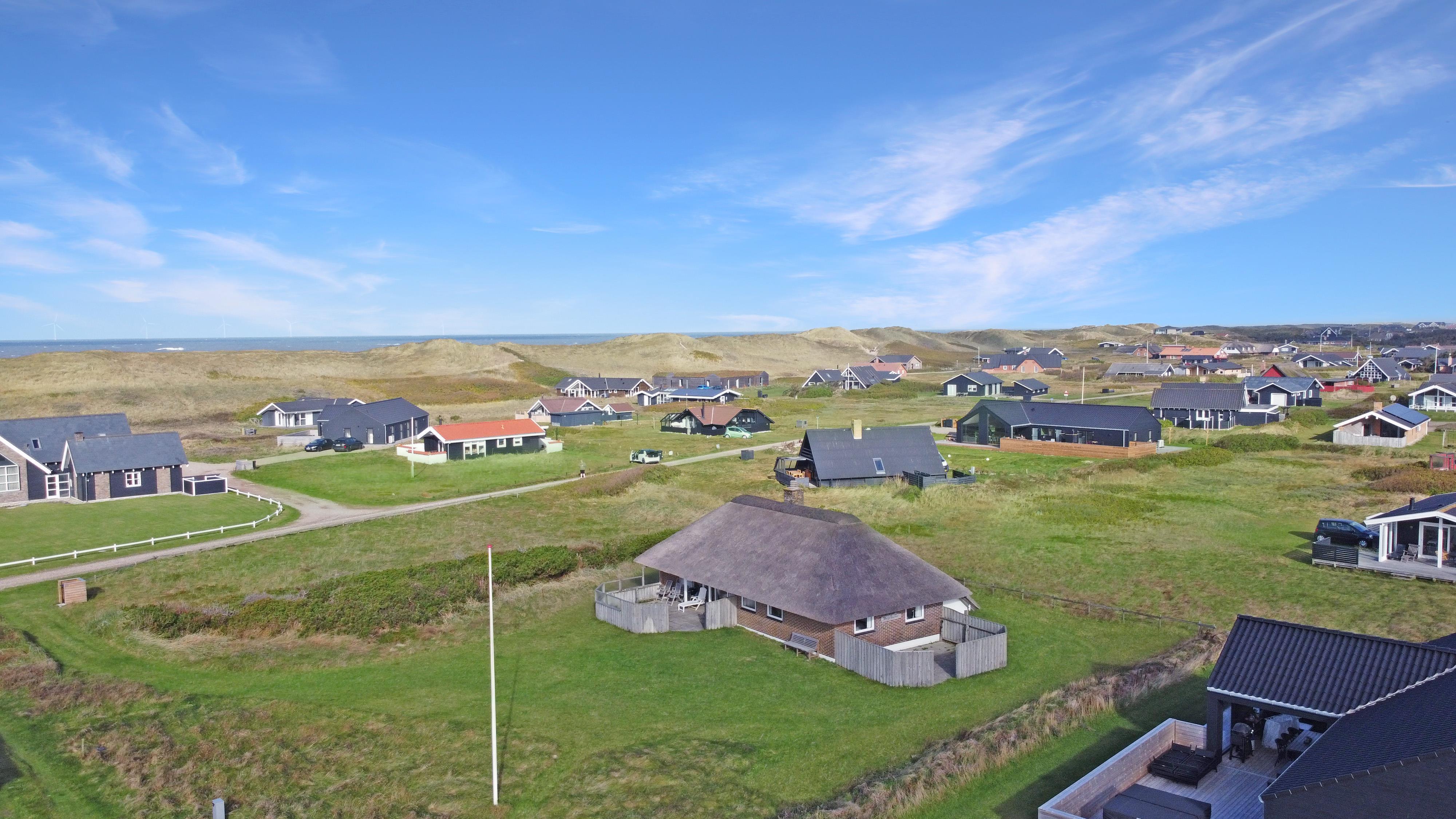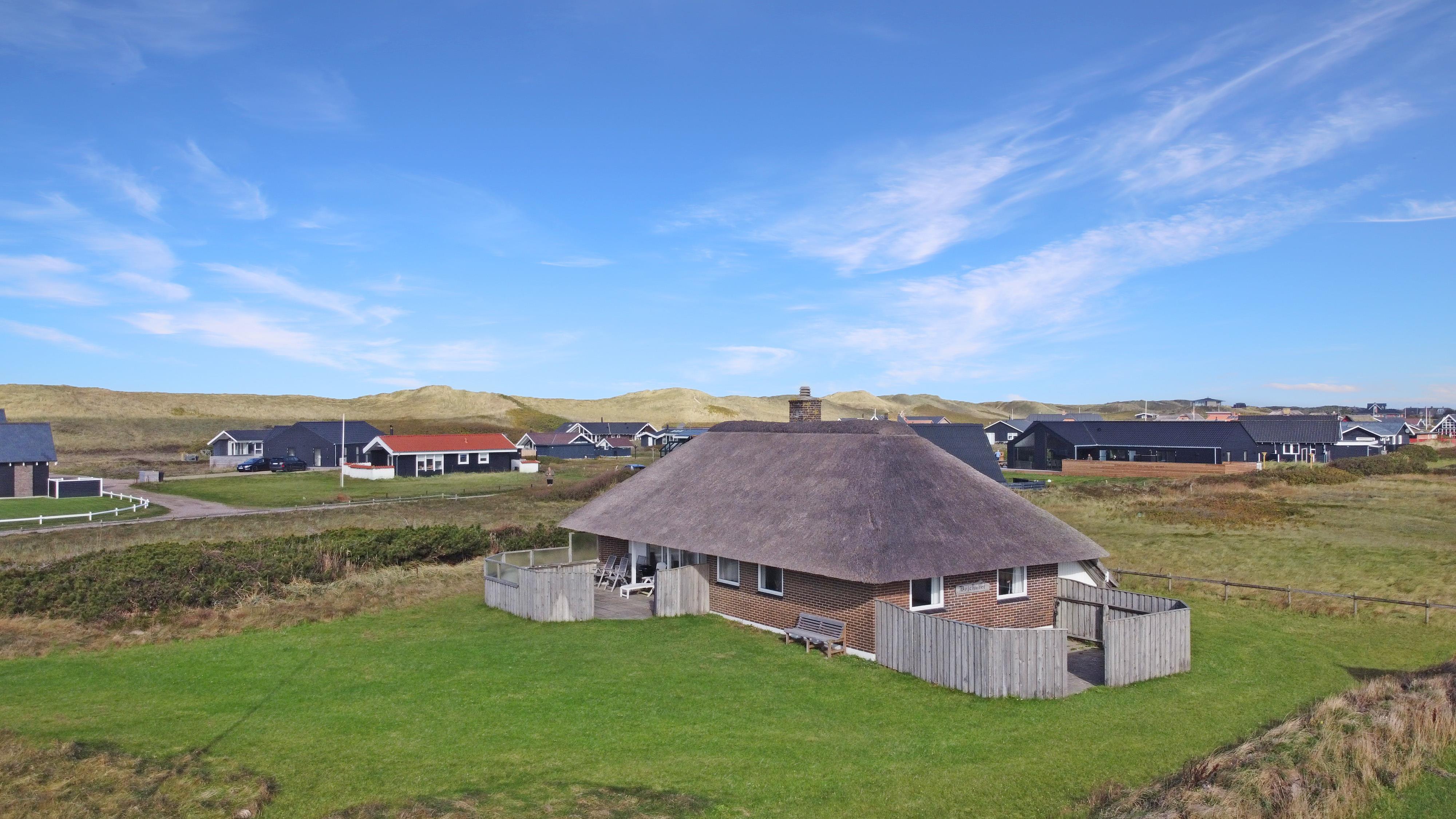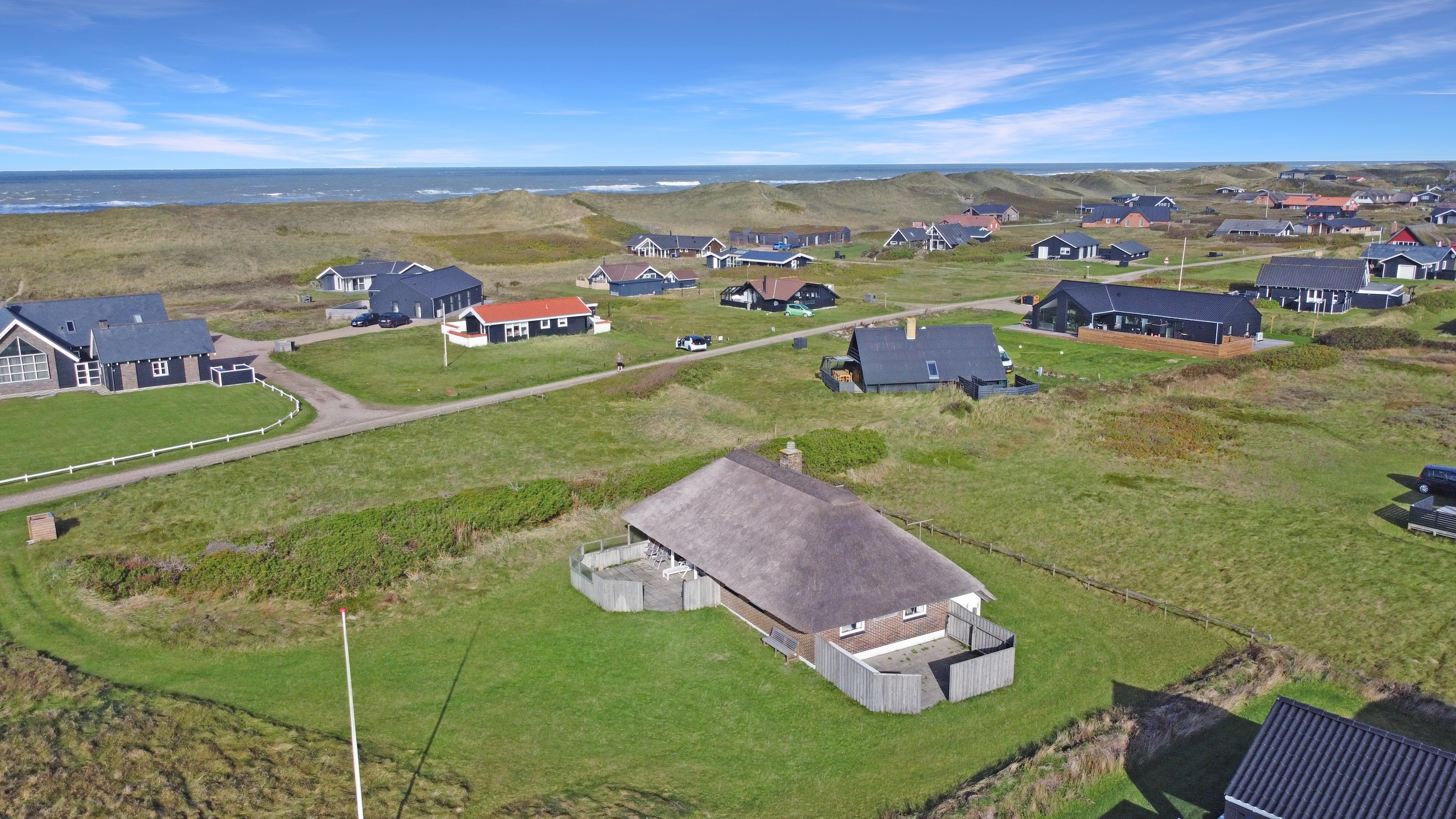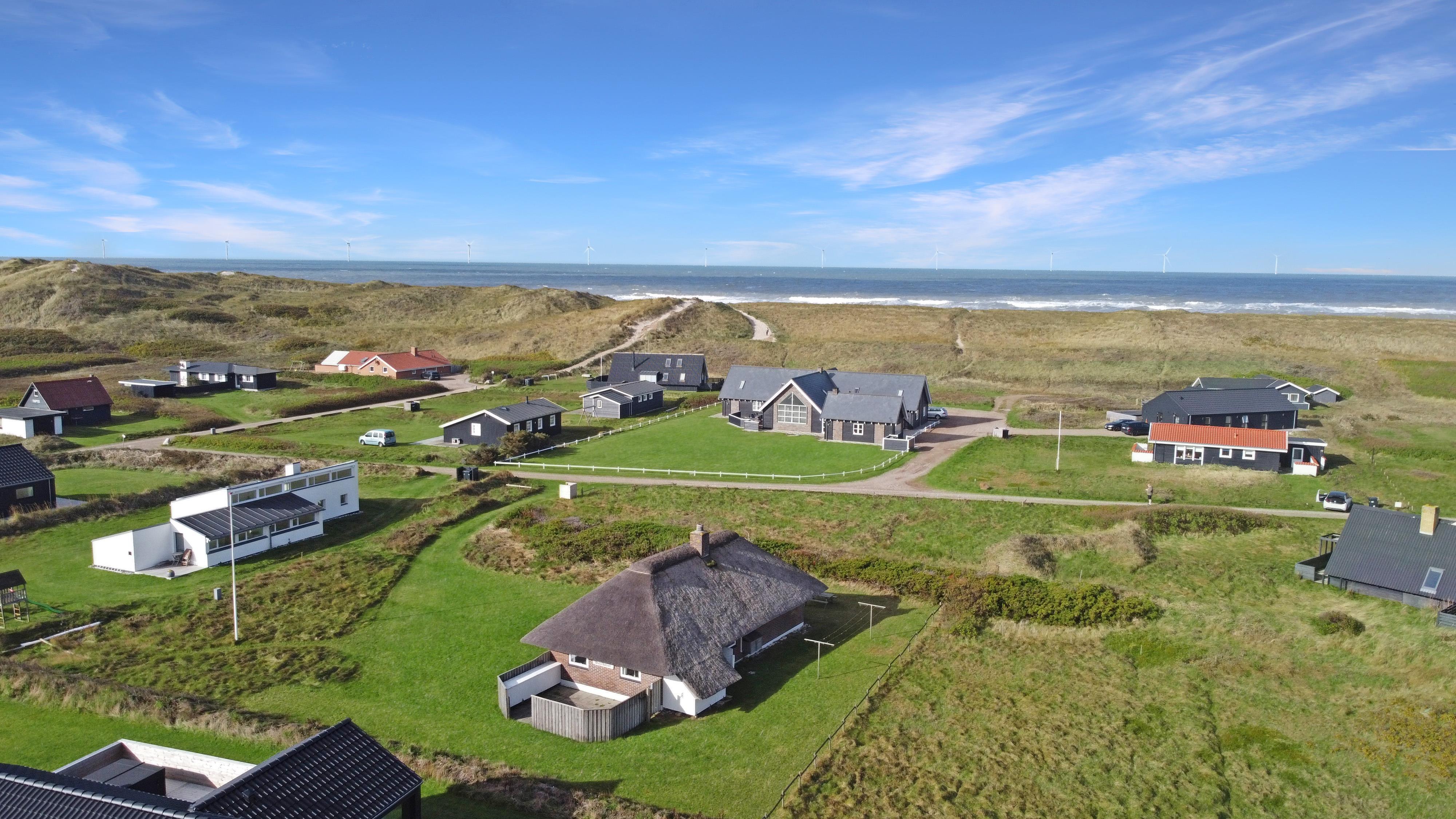 Huset ligger på en 2.536 m² stor naturgrund, kun 200 meter fra Vesterhavet. Der er en dejlig, delvist overdækket terrasse med havemøbler, liggestole og grill. Her er man godt beskyttet mod vinden og kan nyde udelivet året rundt.