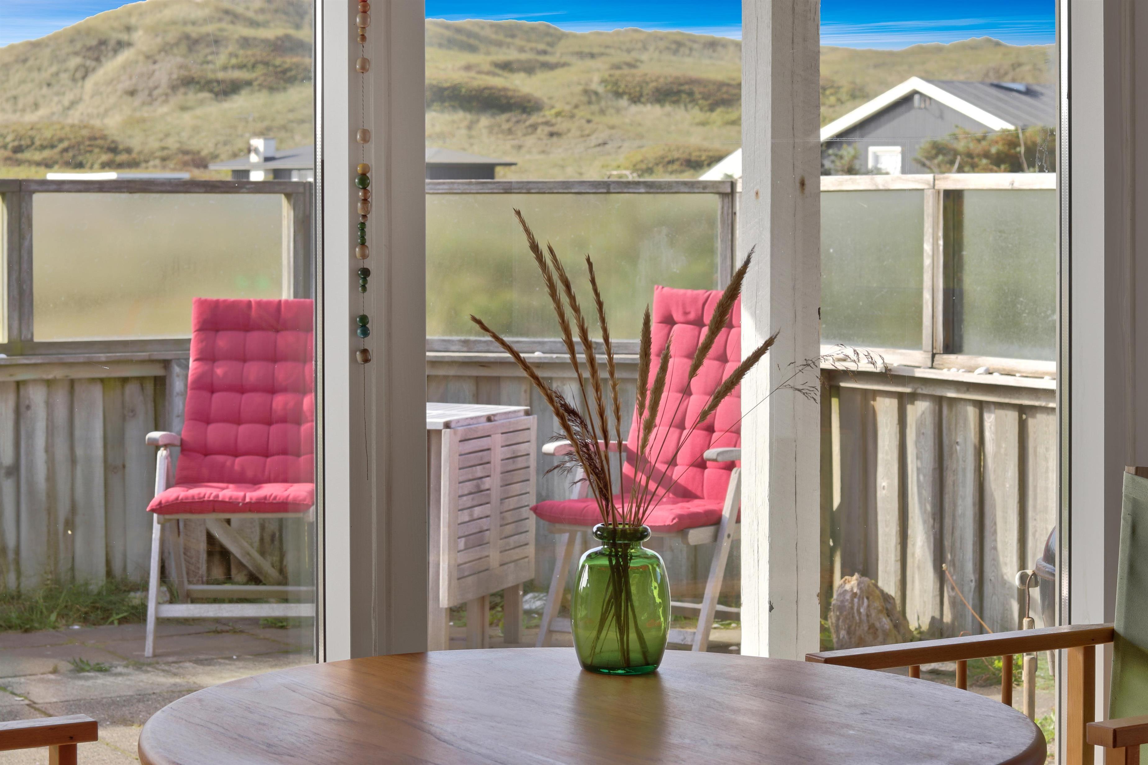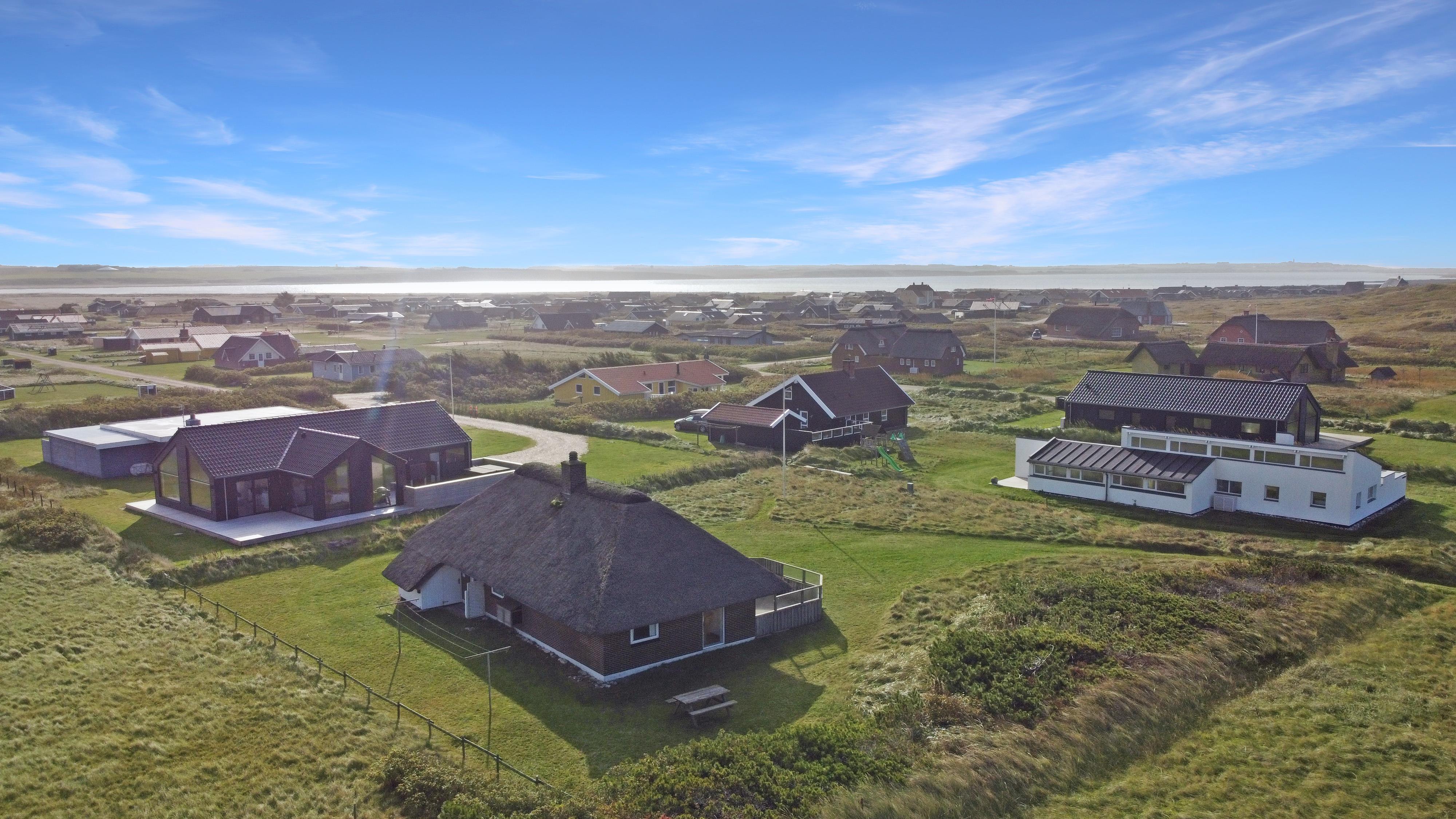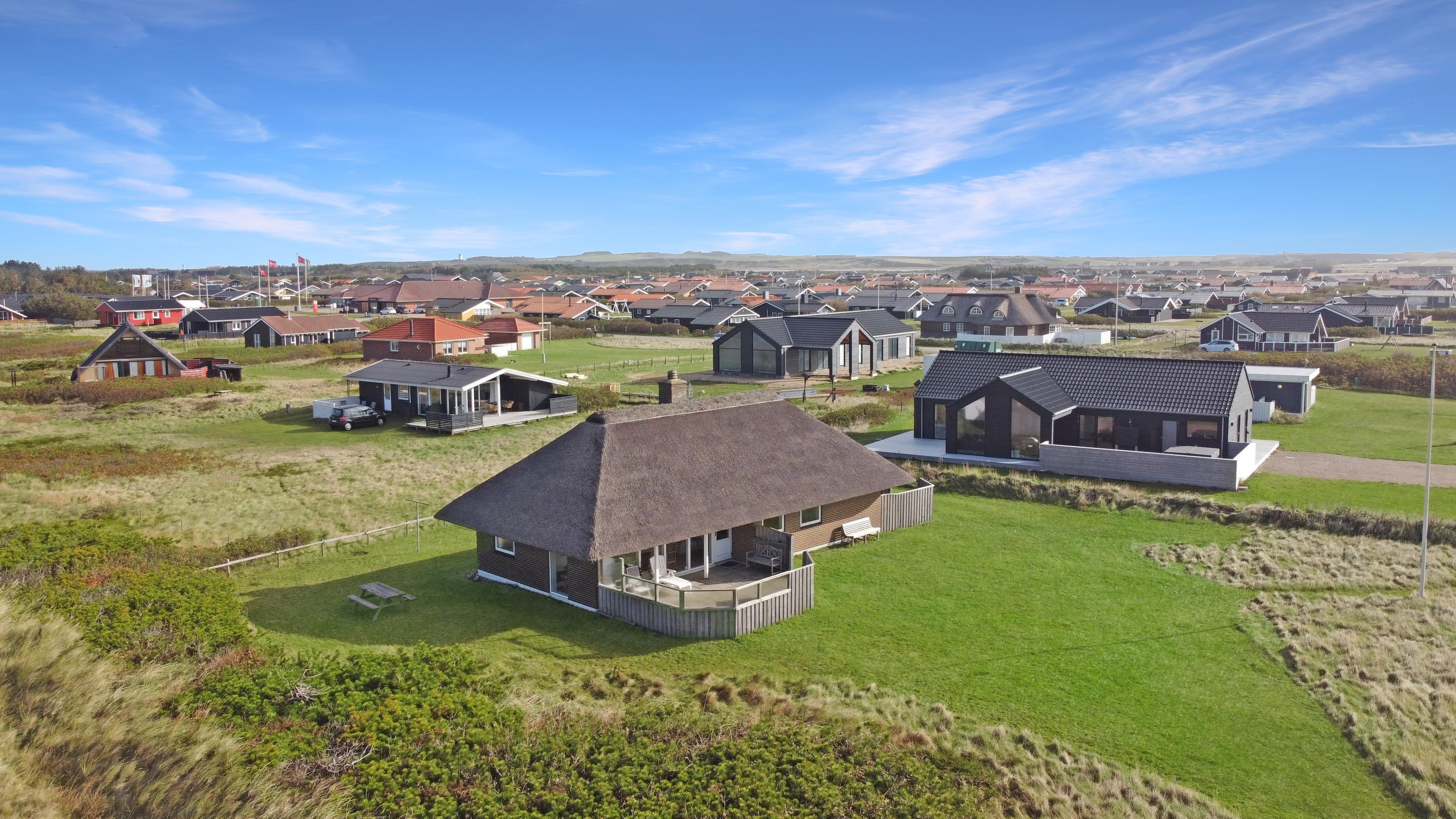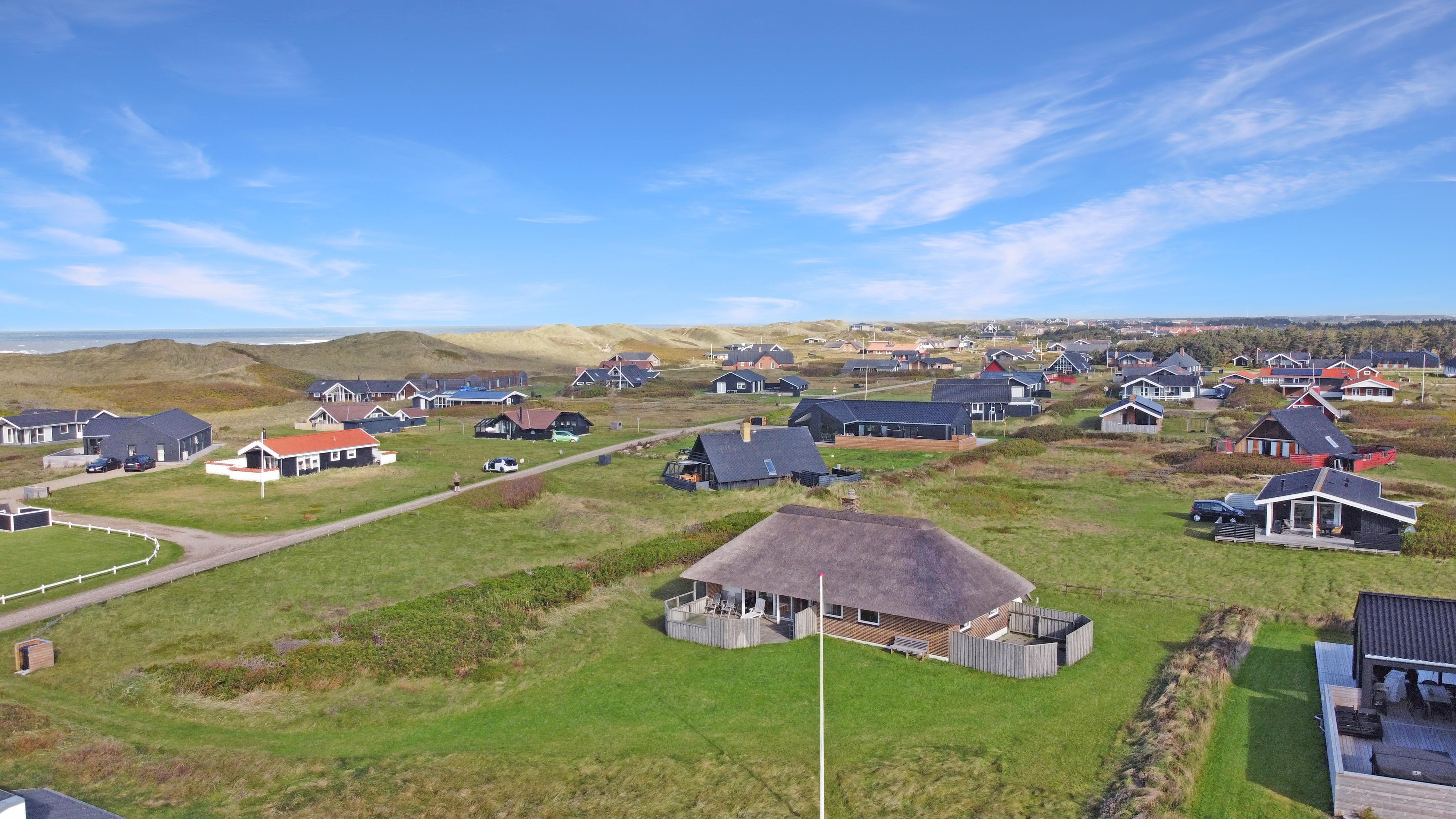 Huset ligger på en 2.536 m² stor naturgrund, kun 200 meter fra Vesterhavet. Der er en dejlig, delvist overdækket terrasse med havemøbler, liggestole og grill. Her er man godt beskyttet mod vinden og kan nyde udelivet året rundt.