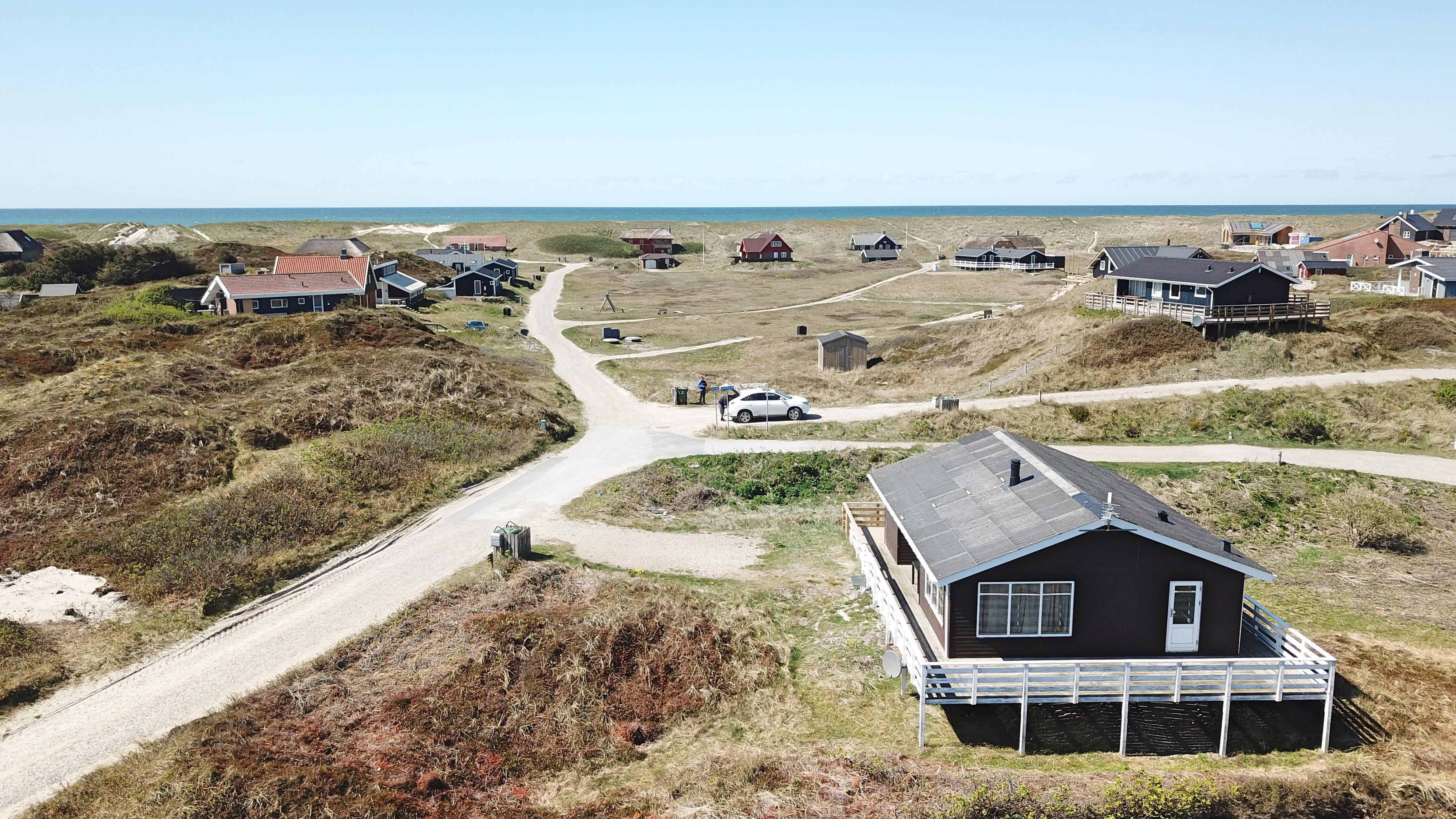 Udendørs ligger huset højt placeret på en stor, 2.500 m² naturgrund, hvor I kan nyde ro, frisk havluft og en flot udsigt over det omkringliggende landskab. Vesterhavet ligger blot ca. 200 meter fra huset og byder på lange gåture, badning, fiskeri og uforglemmelige solnedgange. Terrassen løber hele vejen rundt om huset og er udstyret med havemøbler og grill, så I altid kan finde en sol- eller lækrog og nyde ferien udendørs.
