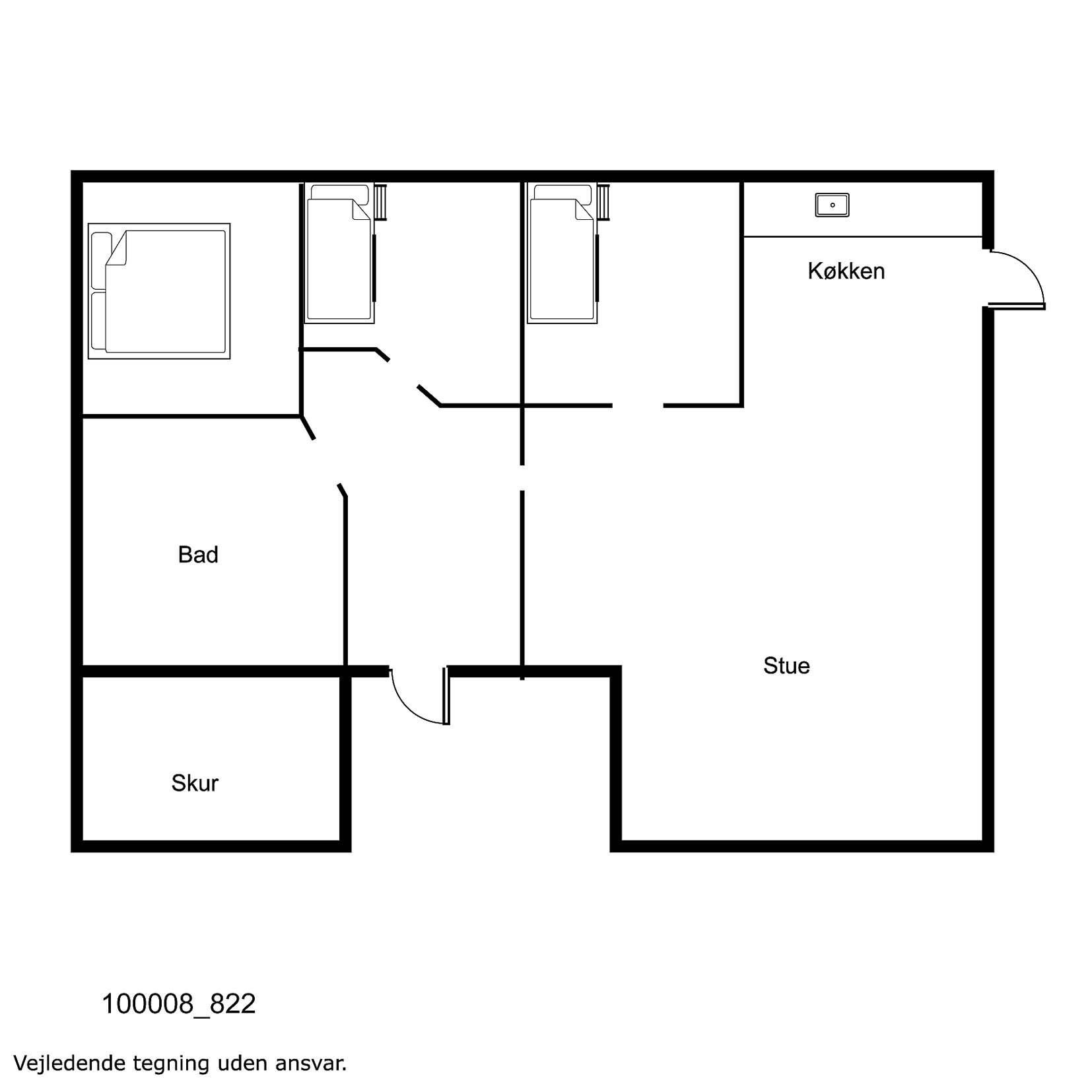 Huset rummer tre gode soveværelser: to med dobbeltsenge og ét med enkeltseng – velegnet til både familie og par. Badeværelset er lyst og moderne med klinkegulv, bruseniche og behagelig gulvvarme. Til familiens mindste gæster er der barnestol.