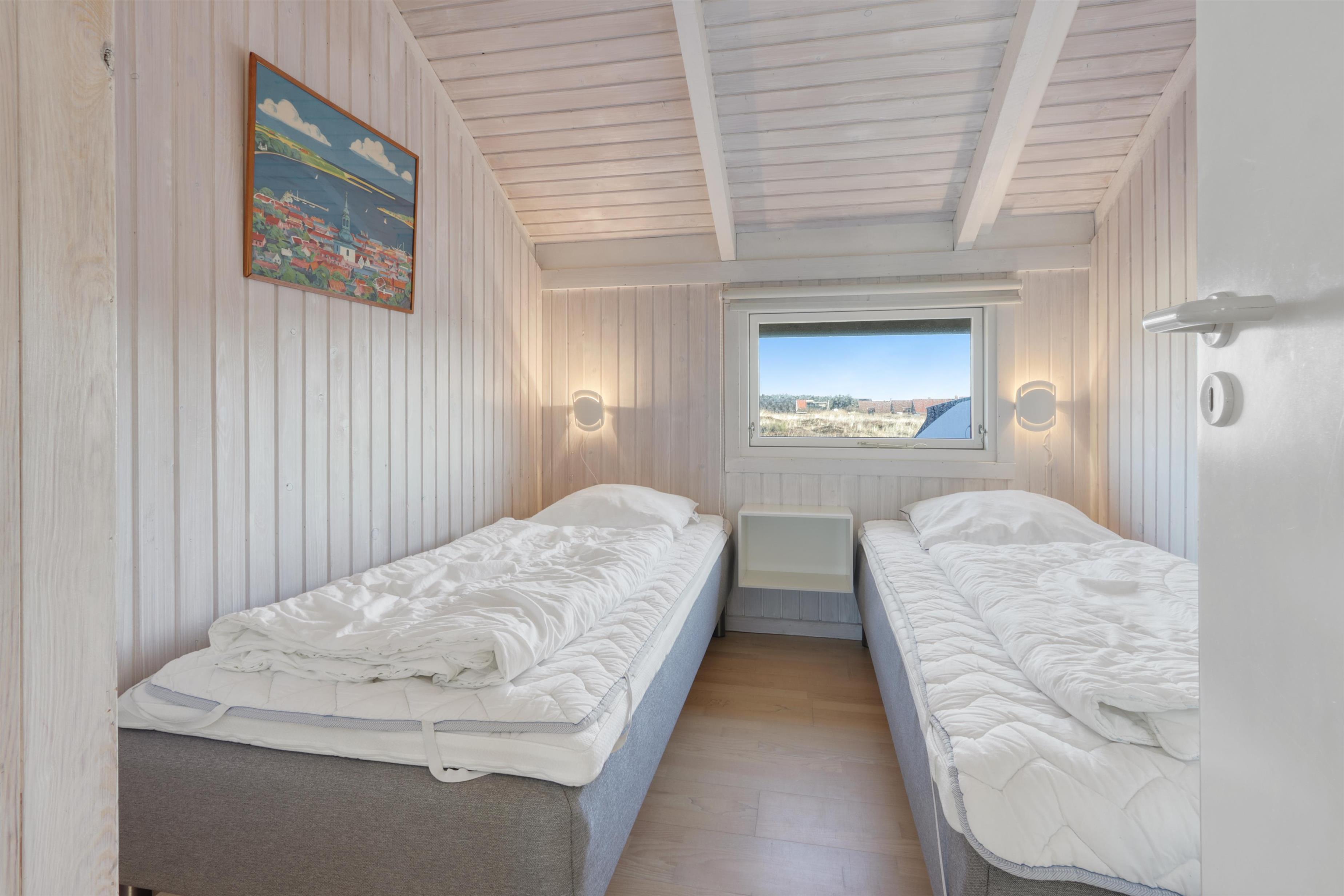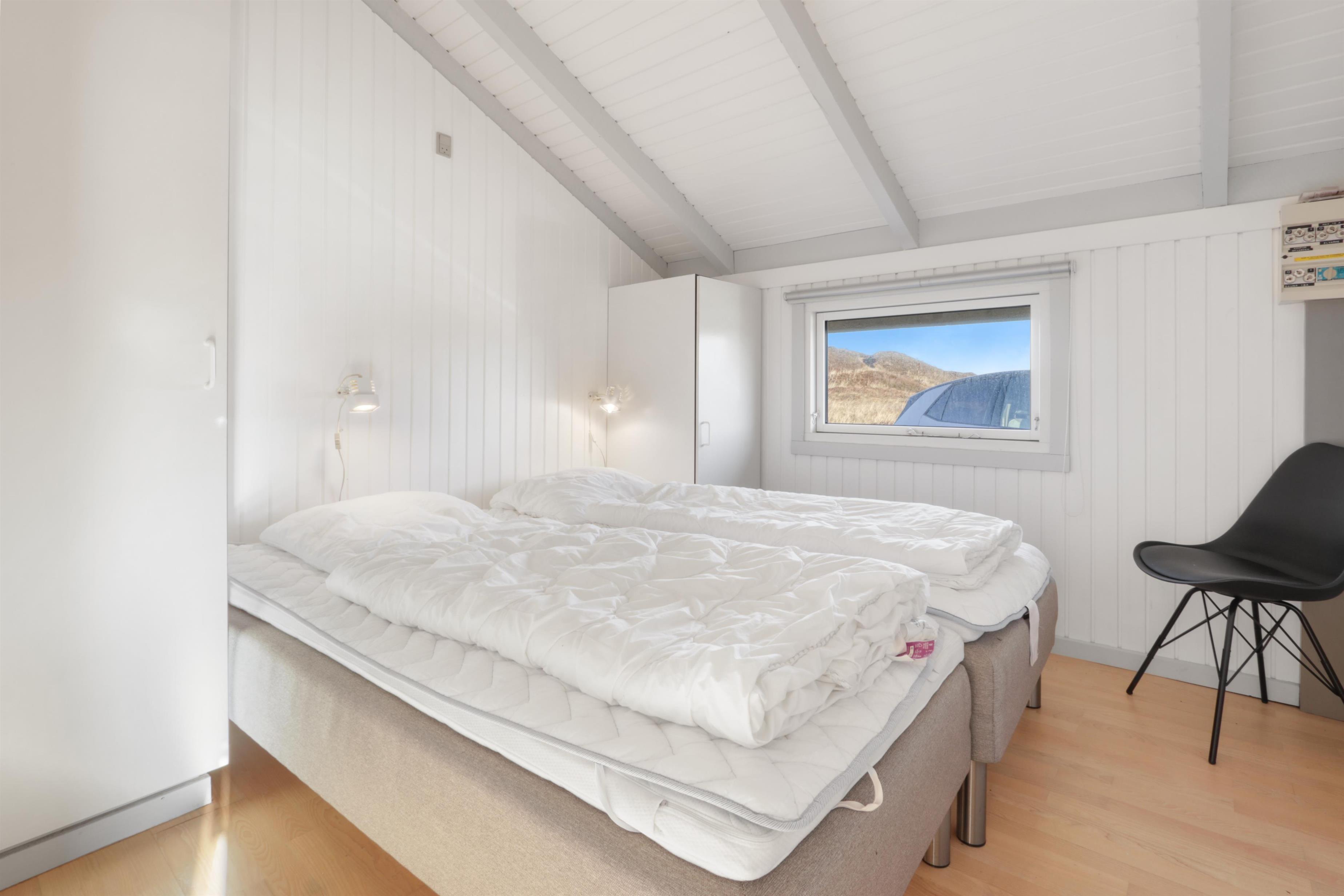 I huset er der 3 soveværelser hvoraf de 2 har dobbeltsenge og den sidste har 2 enkeltsenge. Badeværelse har bruser, toilet og håndvask. Dertil er der også en sauna og vaskemaskine i huset.