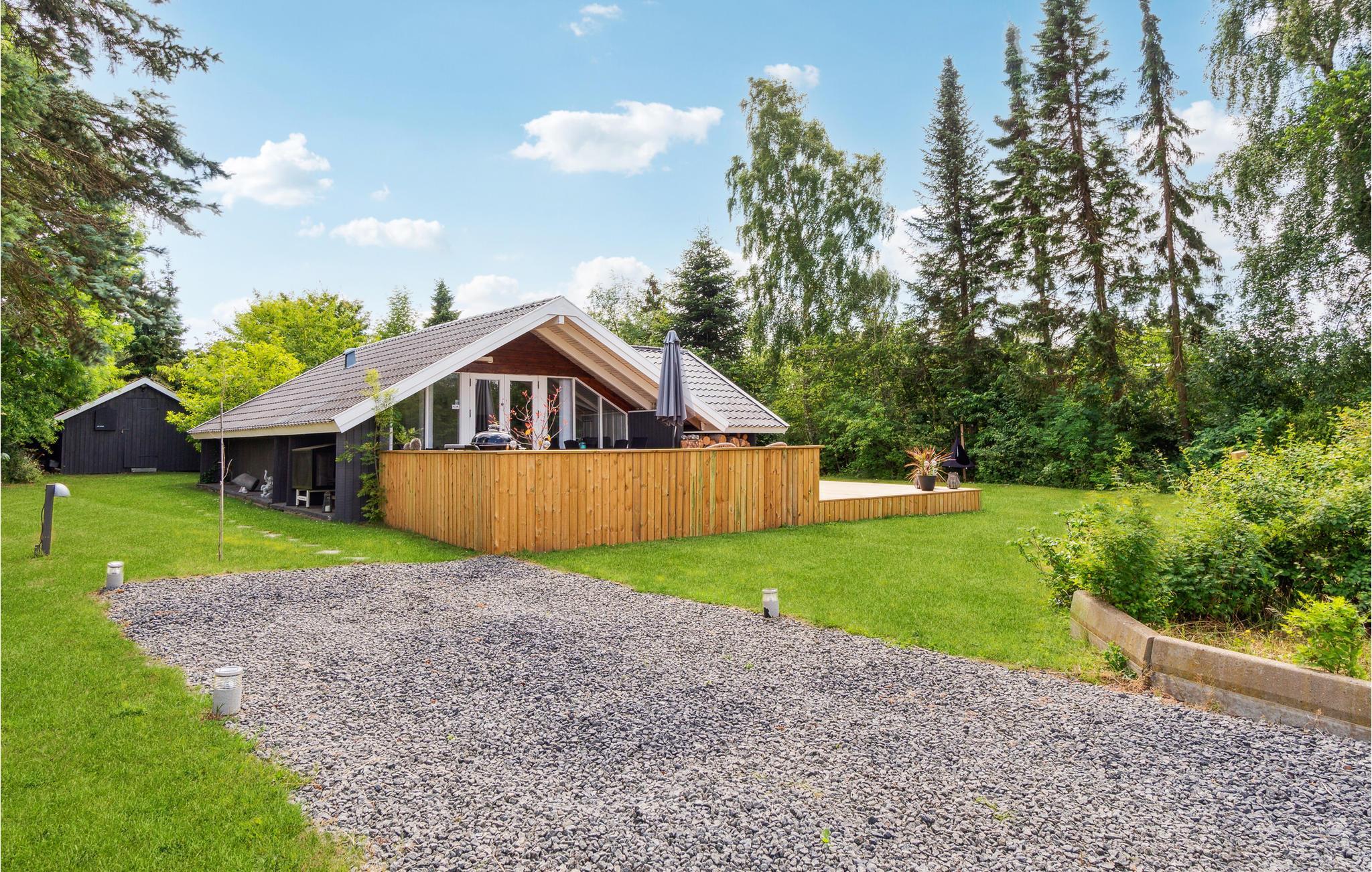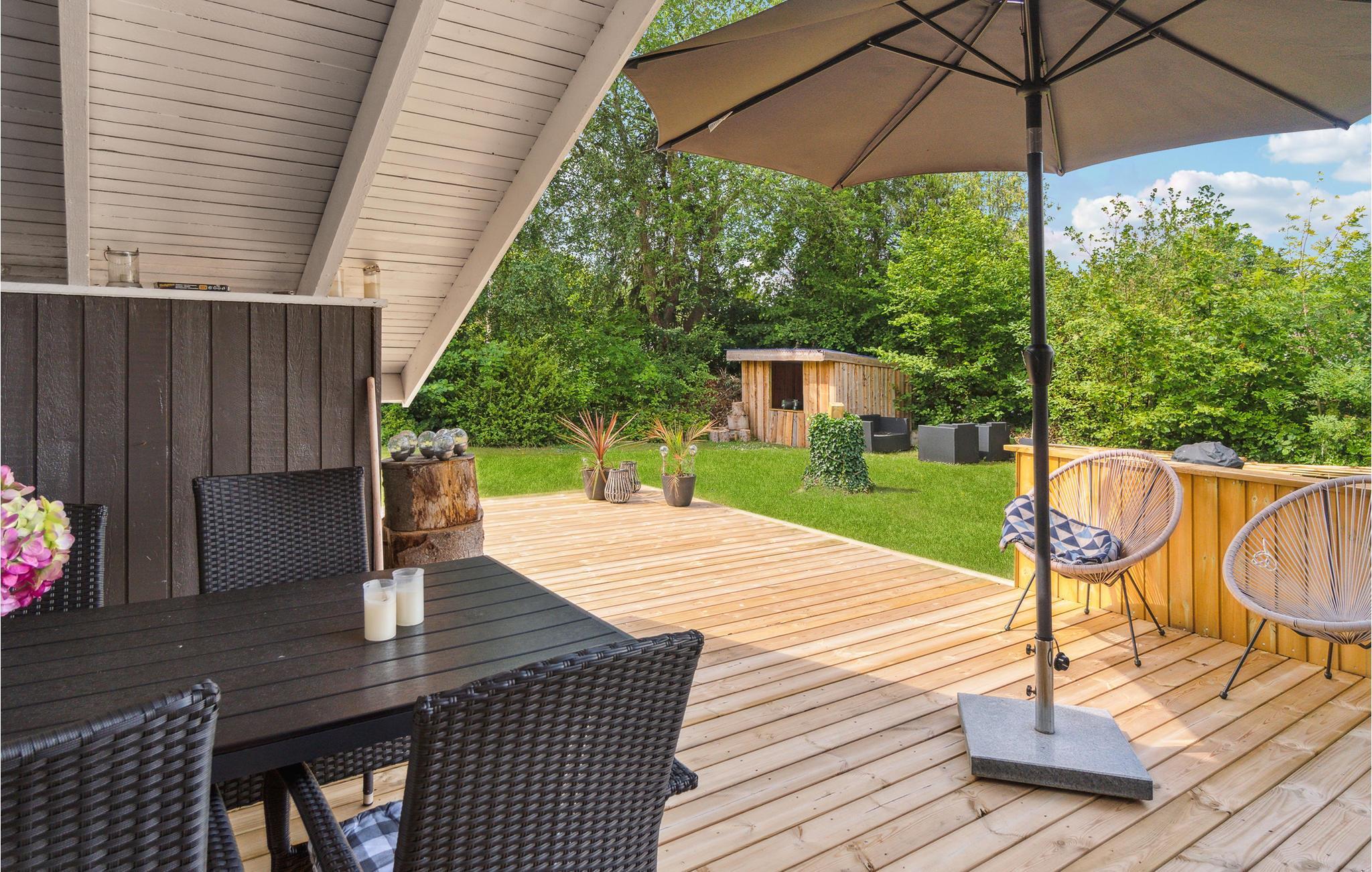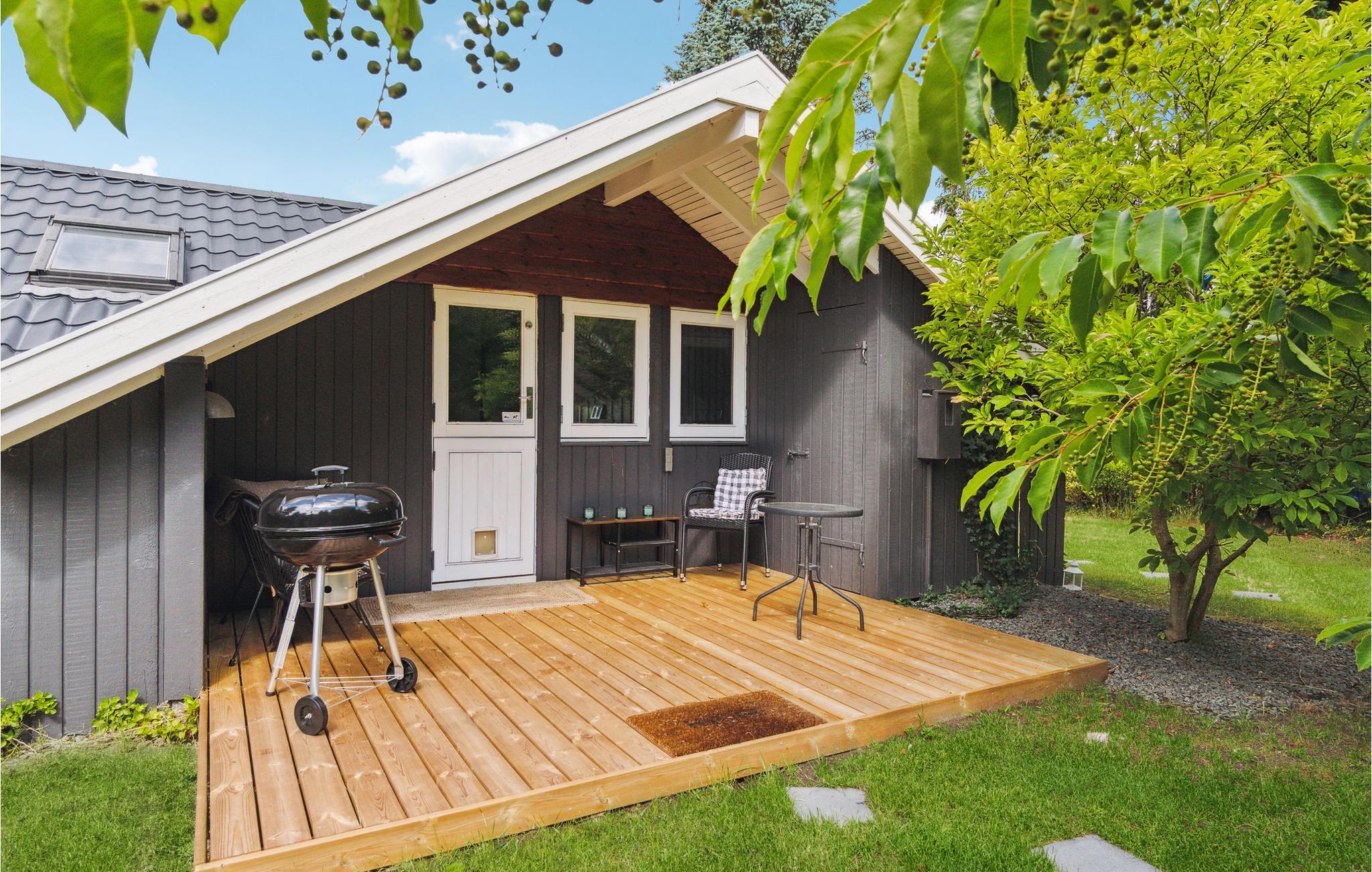 Hyggeligt sommerhus i træ ved Vellerup Strand med terrasse, have og moderne faciliteter for en afslappende ferie.