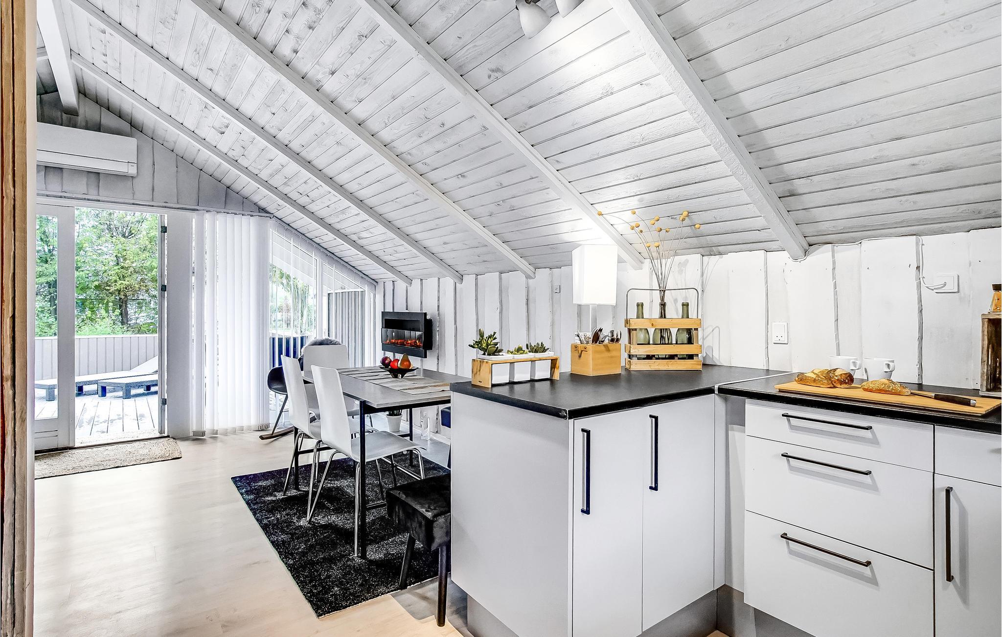 Velkommen til dette feriehus, som er hyggeligt indrettet og har en skøn atmosfære, der rigtig får dig i feriehumør. Husets boligareal spreder sig over en stue i åbent plan med køkken og spiseplads, to soveværelser og et badeværelse. Efter en lang dag med aktiviteter kan I slappe af sammen i sofaen og streame jeres yndlingsserie via Chromecast eller afslutte dagen med et godt måltid ved spisebordet.