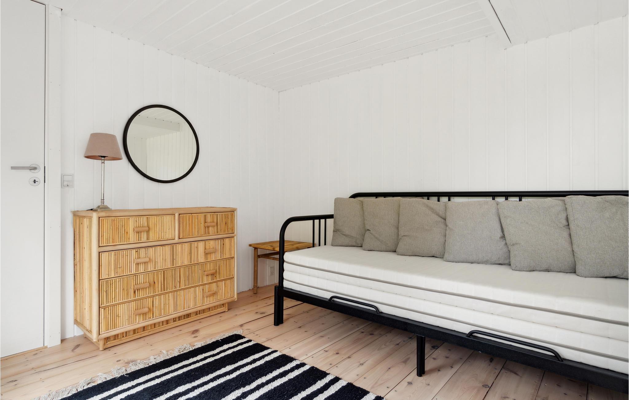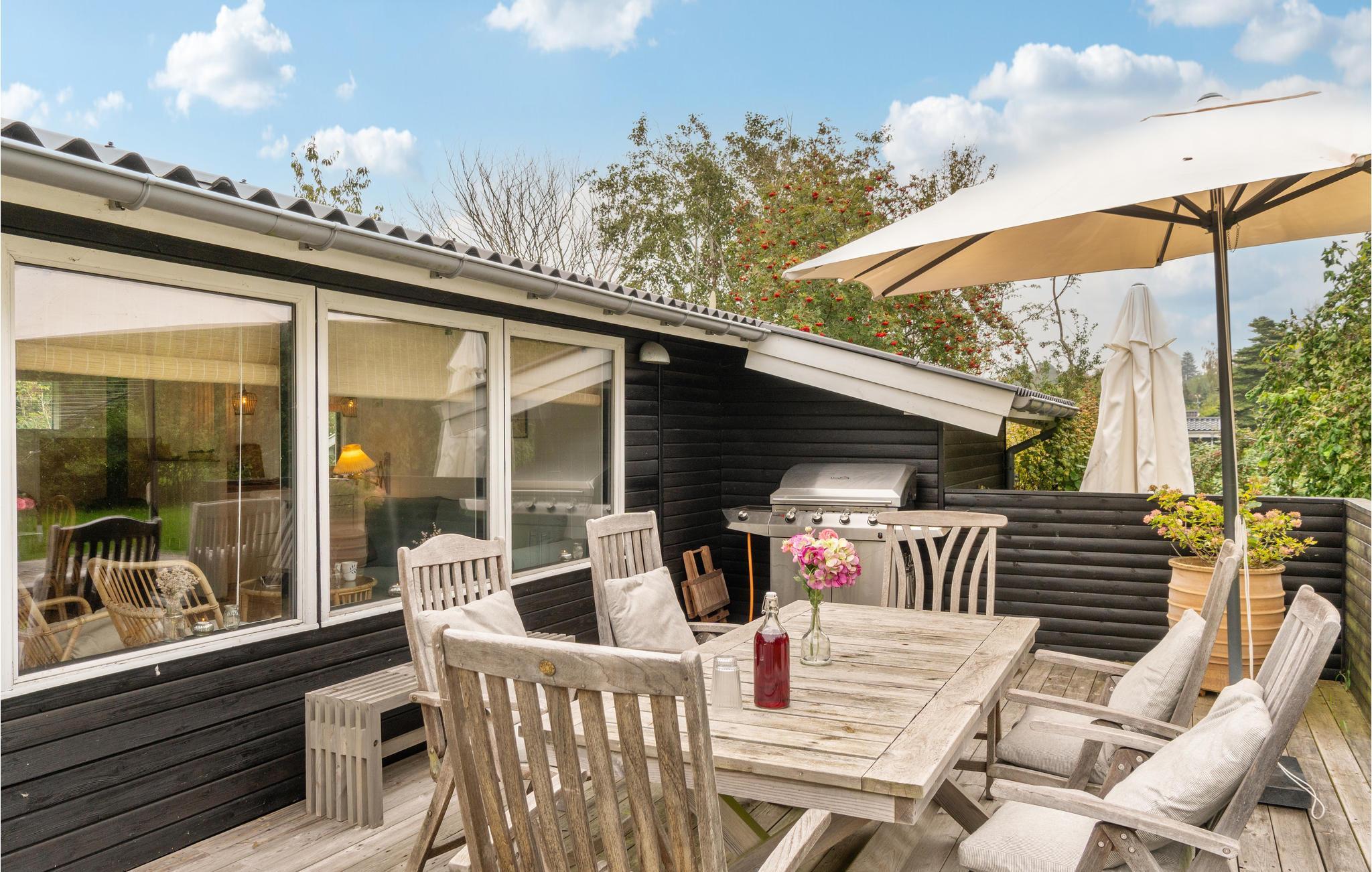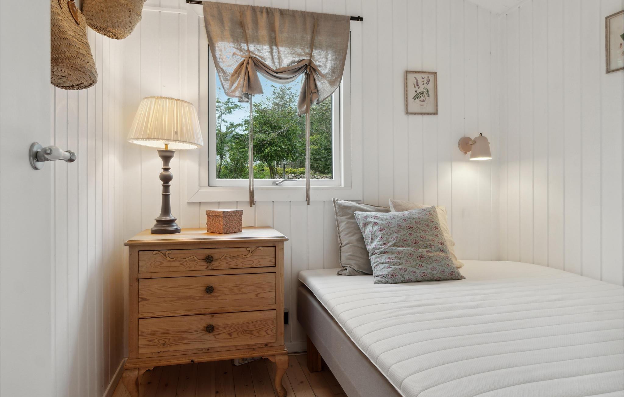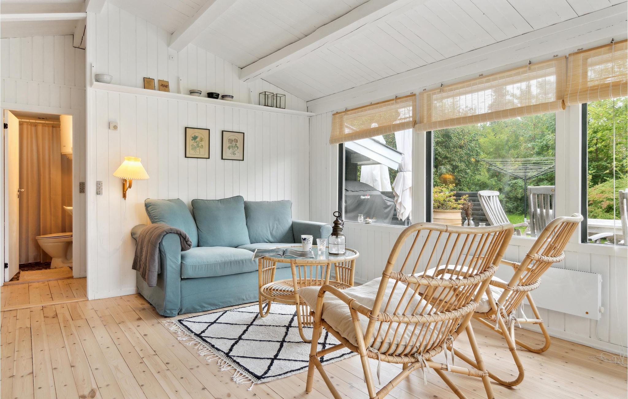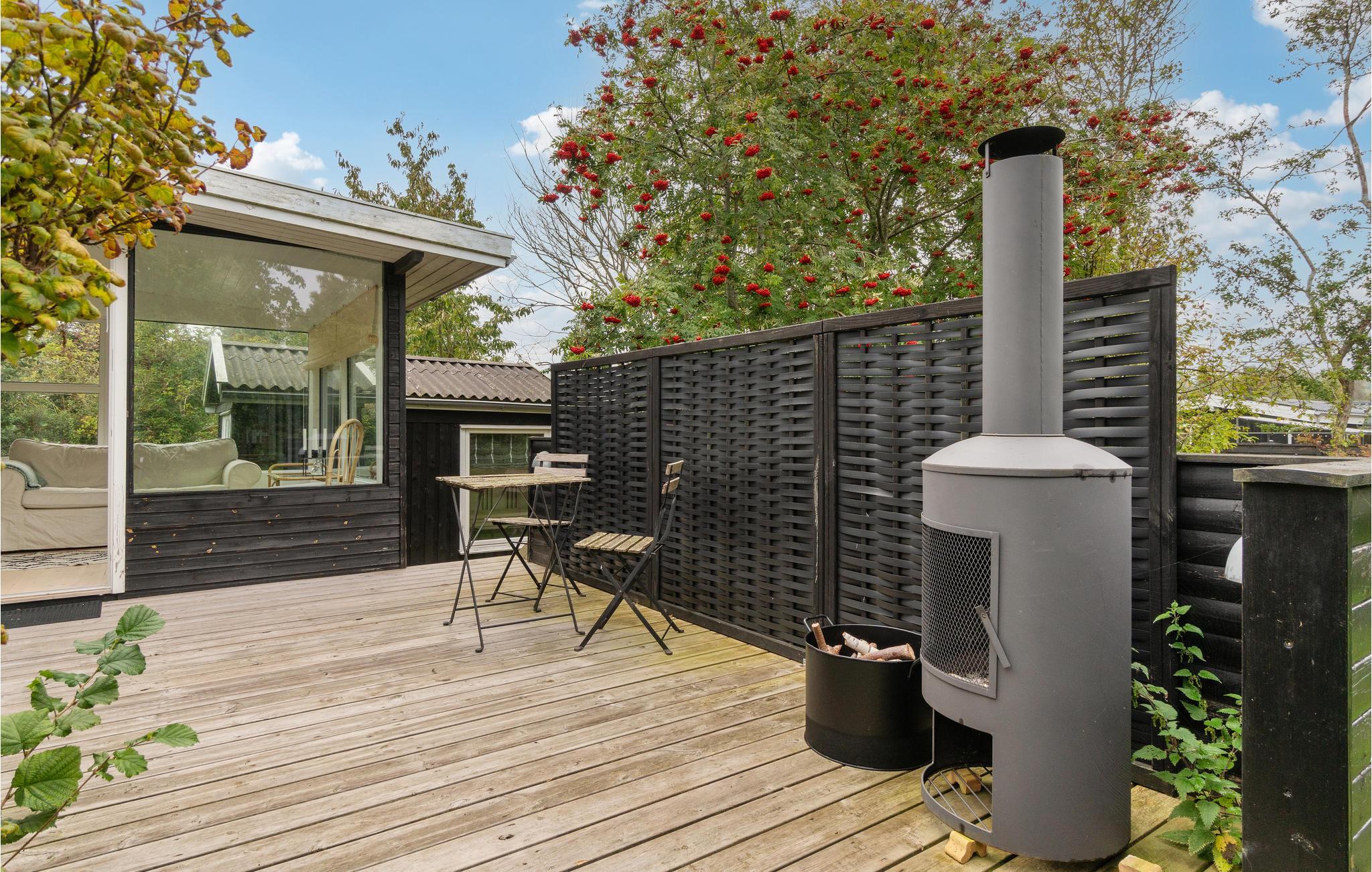 Velkommen til dette hyggelige feriehus med en idyllisk beliggenhed, ikke mange skridt fra fjorden. De lyse værelser får deres charme fra kombinationen af bambus, hvid, lyst træ og det smukke dagslys fra de store vinduer. Gennem vinduerne i opholdsstuen vil I føle jer meget tæt på naturen, uanset hvad I foretager jer. Hold hyggelige spilleaftener ved det store spisebord og skab en særlig hyggelig stemning med ild i brændeovnen. Slå jer ned på terrassen og nyd solen og udsigten over den velplejede naturgrund, mens jeres børn leger lystigt. Her kan I afslutte en dejlig feriedag med et lækkert måltid fra grillen. Gå en tur til fjorden, hvor I kan bade og fiske. Her finder I også en badebro.