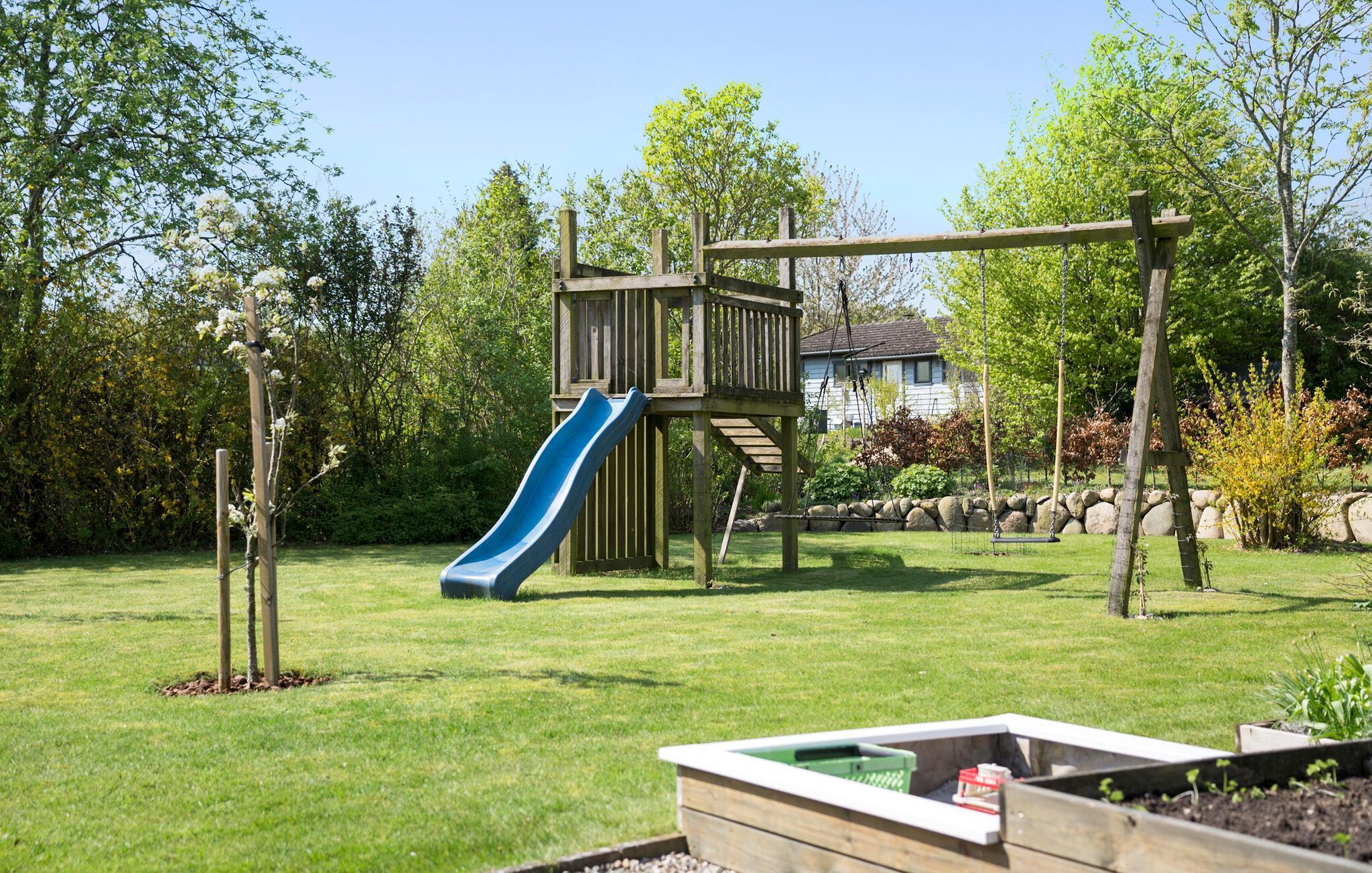 Når solen skinner, kan I nyde den på terrassen lige fra morgenstunden med en god kop kaffe, mens børnene løber rundt og leger i haven. Her er der både legetårn, gynge, sandkasse og andre legeredskaber, de små kan boltre sig på, mens de voksne nyder solen og tænder op i grillen og tilbereder nogle saftige bøffer ud på eftermiddagen.