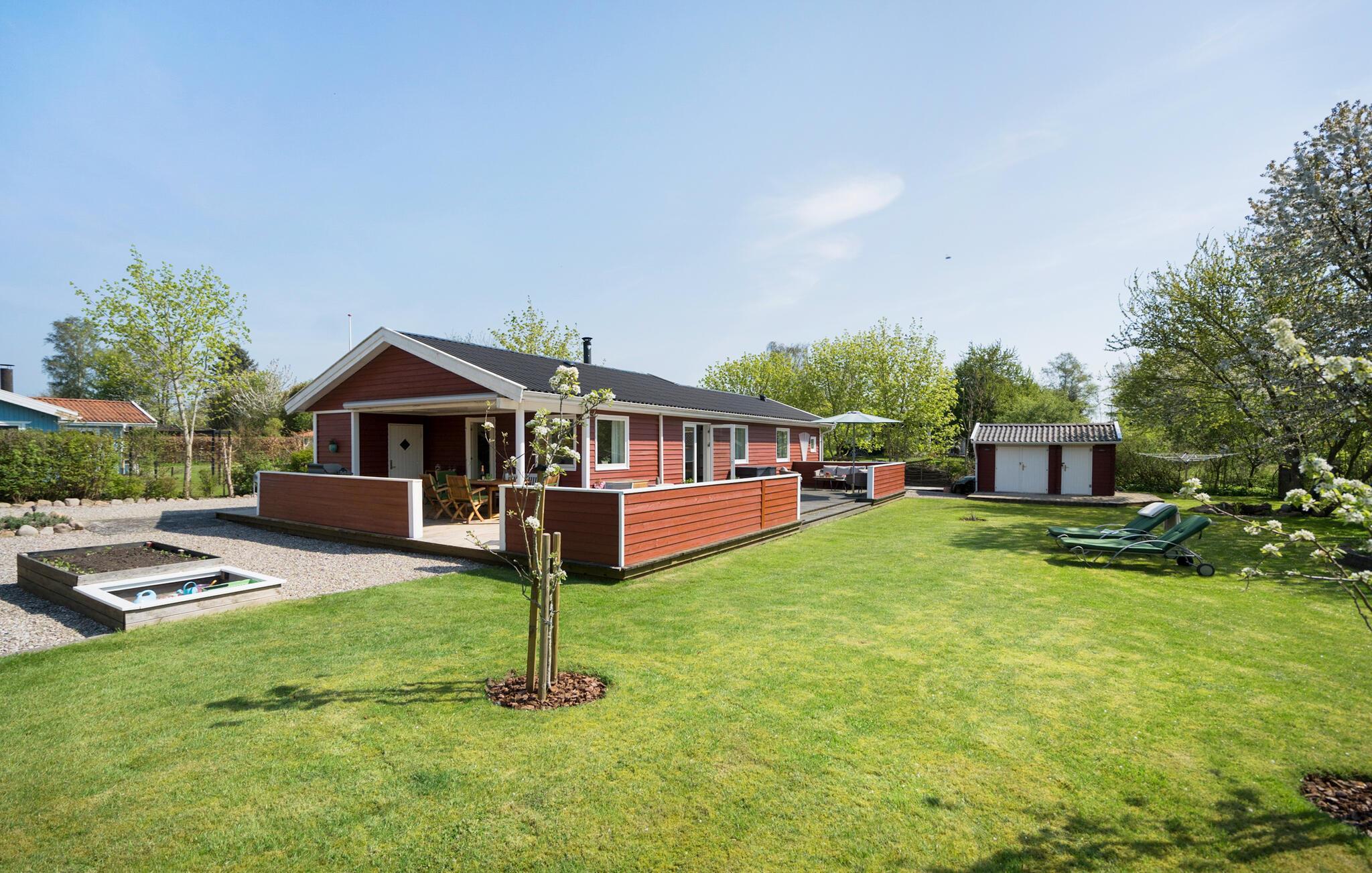 Hyggeligt træhus ved Vellerup Strand med stor have