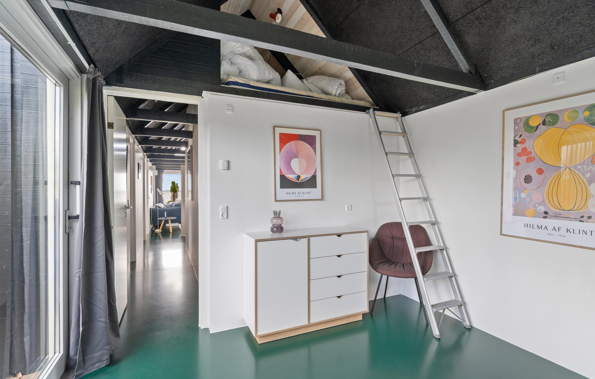 Dette er indbegrebet af en ægte ferieoase på dansk jord, for med sauna og stor ugeneret pool i baghaven lige ned til Isefjorden er kvaliteten og beliggenheden helt i top. Her er rigelig plads til jeres store familie eller et par familier, der rejser sammen. Indenfor er standarden høj, indretningen moderne, og intet er overladt til tilfældighederne. Der er i den grad leget med farverne for at skabe en unik og smagfuld atmosfære, hvilket blandt andet kommer til udtryk i et smukt mosgrønt gulv. De store gulv til loft-vinduer bringer fjorden, solnedgangen og naturen indenfor og oplyser opholdsrummet, hvor I kan tilberede lækre retter sammen i det store køkken om aftenen og hygge med brætspil eller kort. Nyd en stille stund i saunaen, når dagen går på hæld.