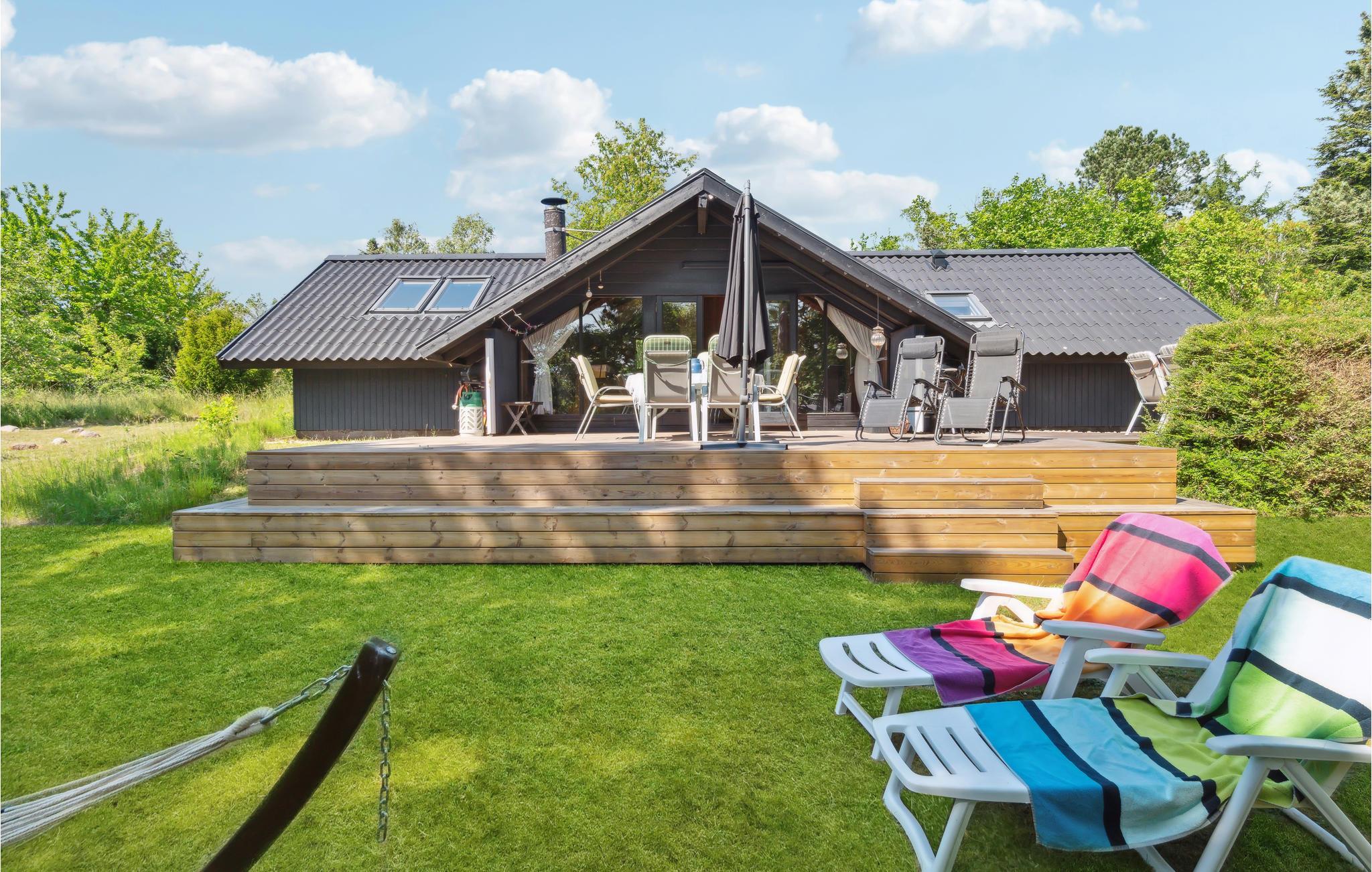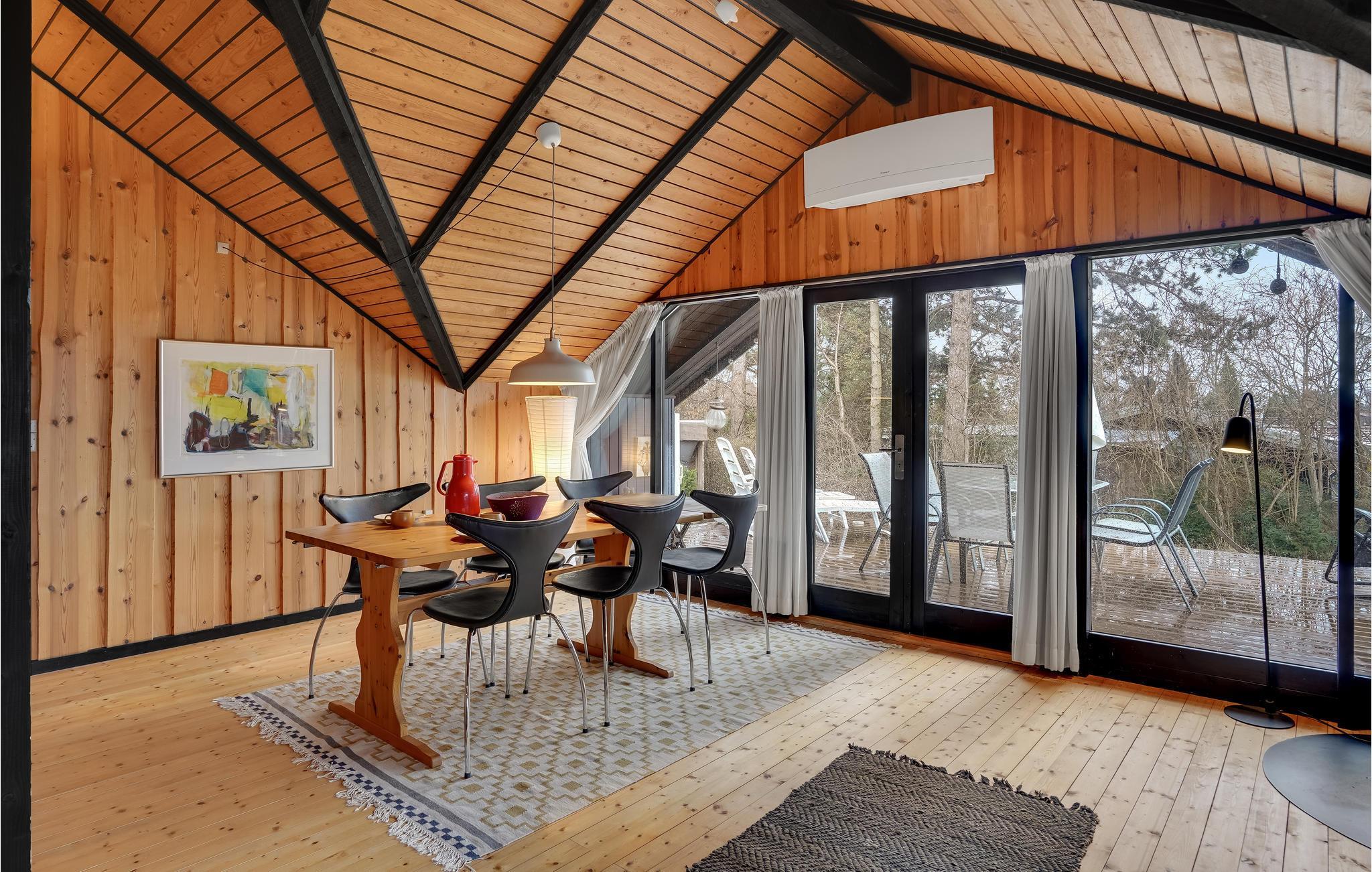 Velkommen til dette hyggelige sommerhus, som ligger ud til en dejlig, grøn grund. Huset har en helt særlig atmosfære, der forener de oprindelige detaljer med lækre tilføjelser. De sortmalede bjælker fremhæver arkitekturen og husets indretning, som også omfatter en køjeseng, der er bygget ind i et af soveværelserne. Nyd dagens måltider med udsigt til haven gennem de store vinduespartier og læn jer tilbage i sofahjørnet efter en lang dag på farten. Om aftenen kan I streame en serie eller snakke om dagen, der er gået, mens ilden knitrer i brændeovnen.