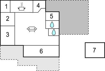 Komb. spisestue/køkken - 2 Sovepladser. (Sofa, madras eller lignende).