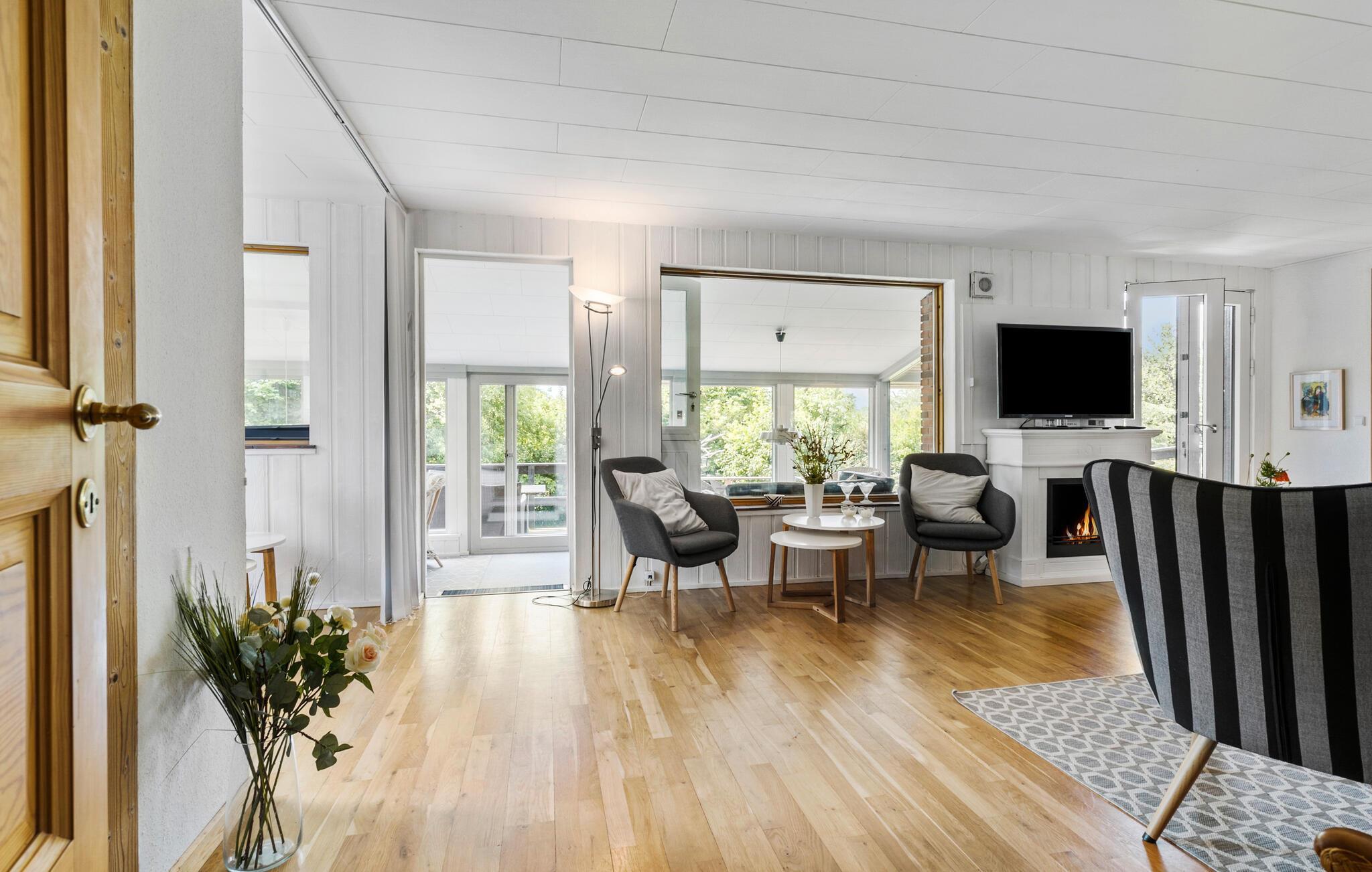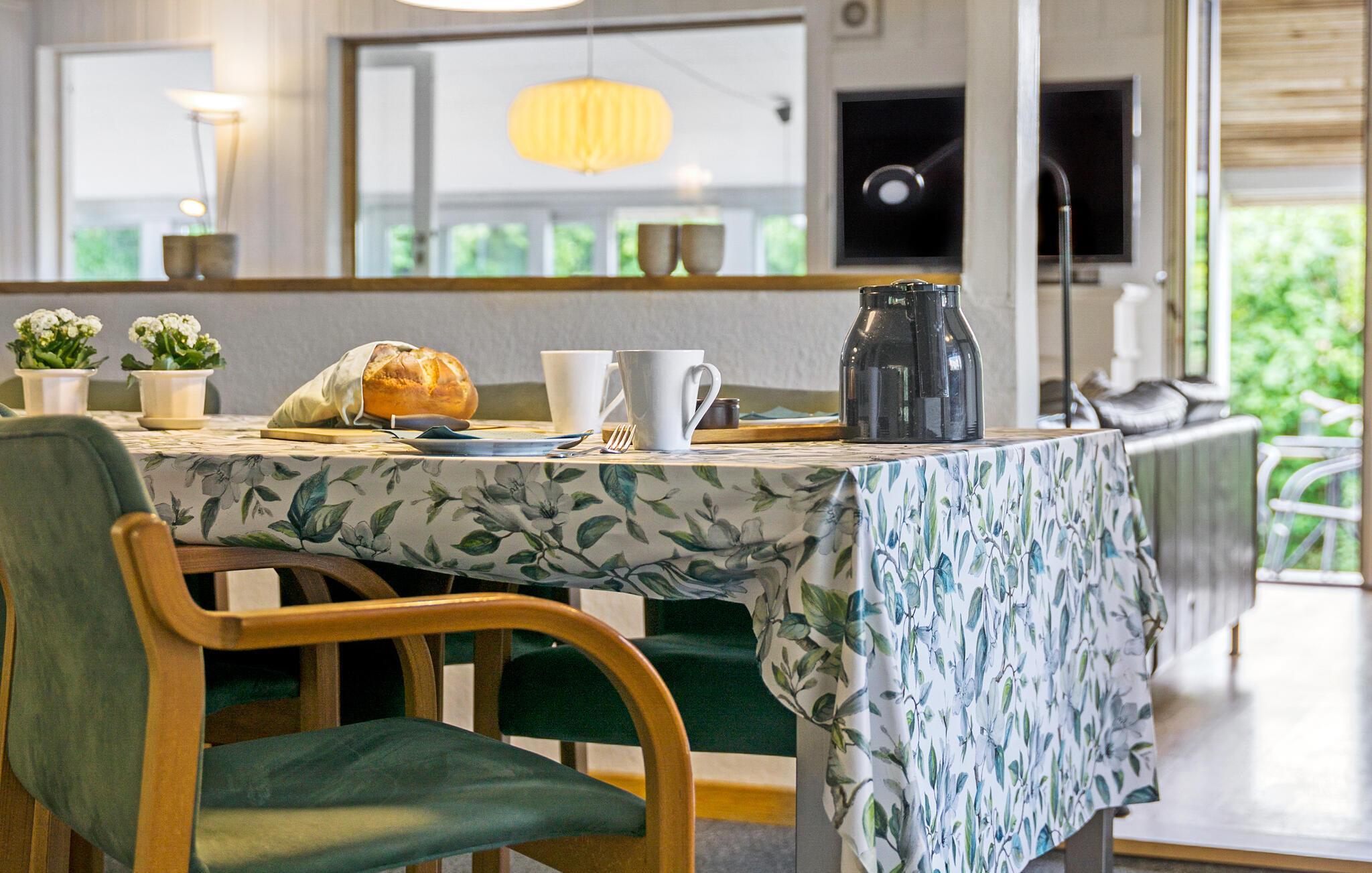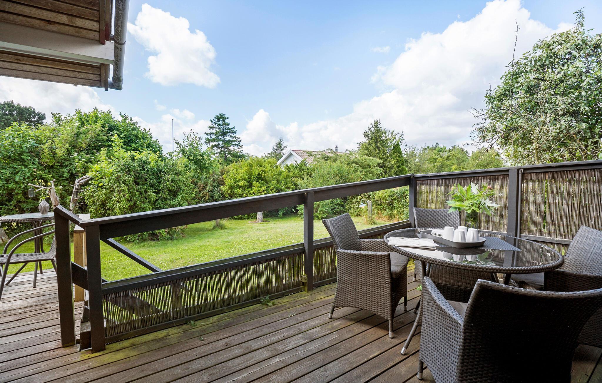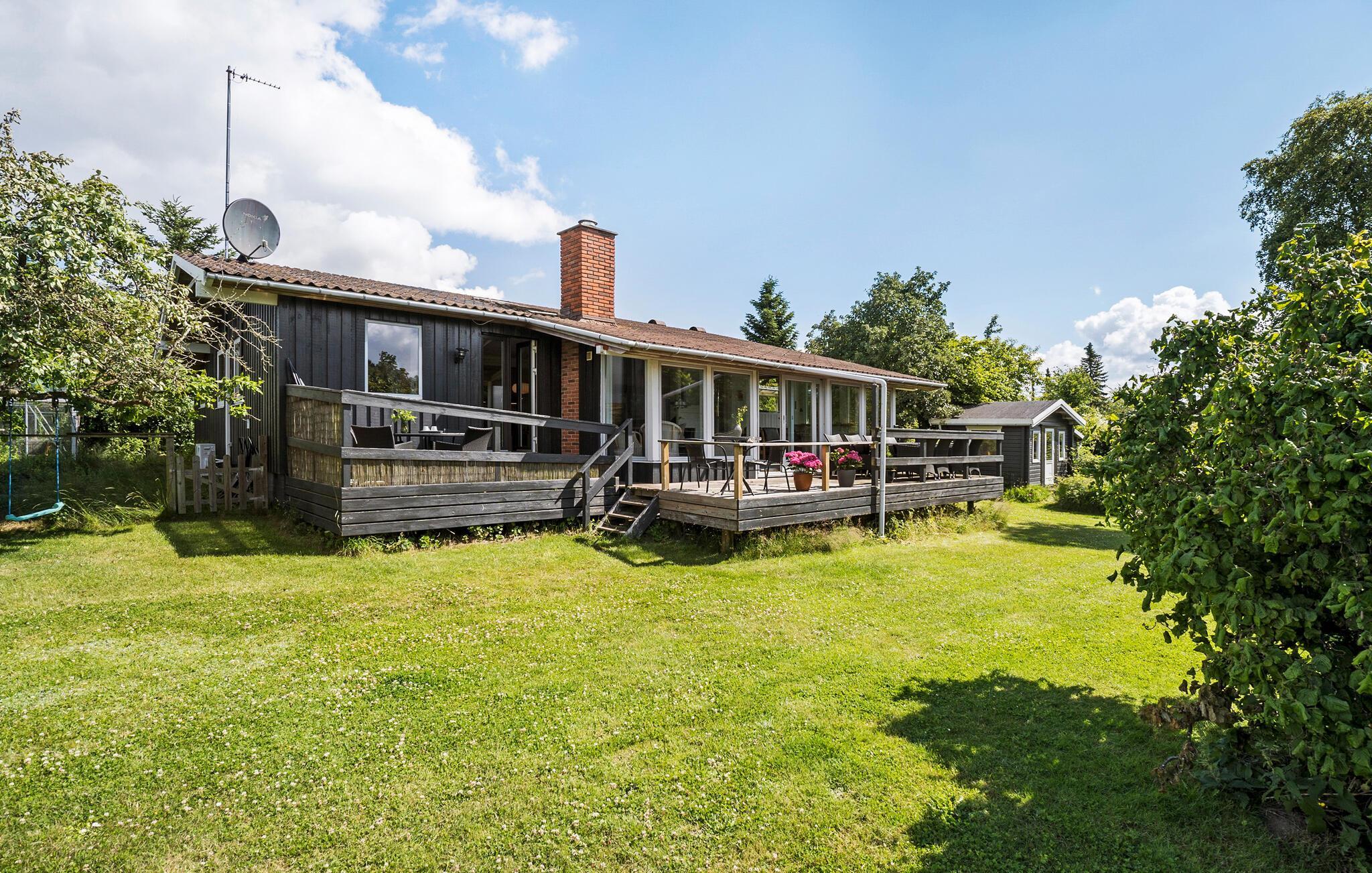 Den store have giver børnene masser af plads til at boltre sig. Mens de løber og leger på græsplænen, kan I benytte lejligheden til at planlægge dagens aktiviteter i ro og mag. Området omkring huset har et godt udvalg af aktiviteter og udflugtsmuligheder. Tag på en cykeltur gennem det maleriske fjordlandskab eller snup en frisk dukkert ved den nærliggende strand.