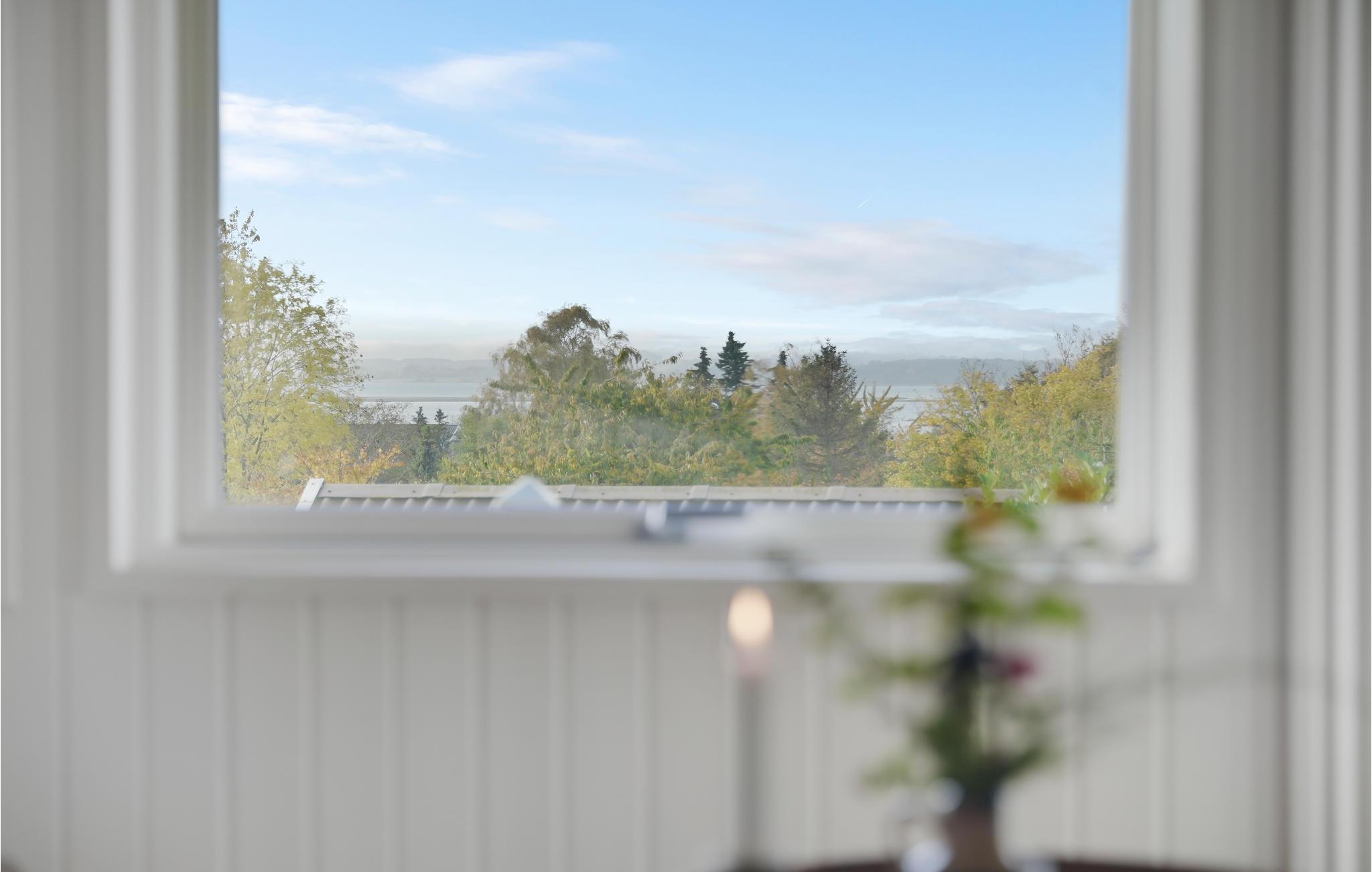 Sommerhus med flere terrasser, havudsigt og børnevenlige faciliteter tæt på fjorden.
