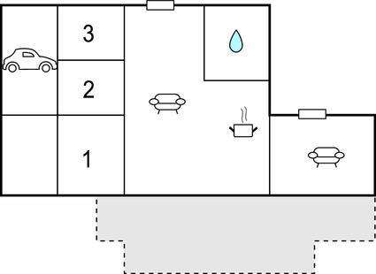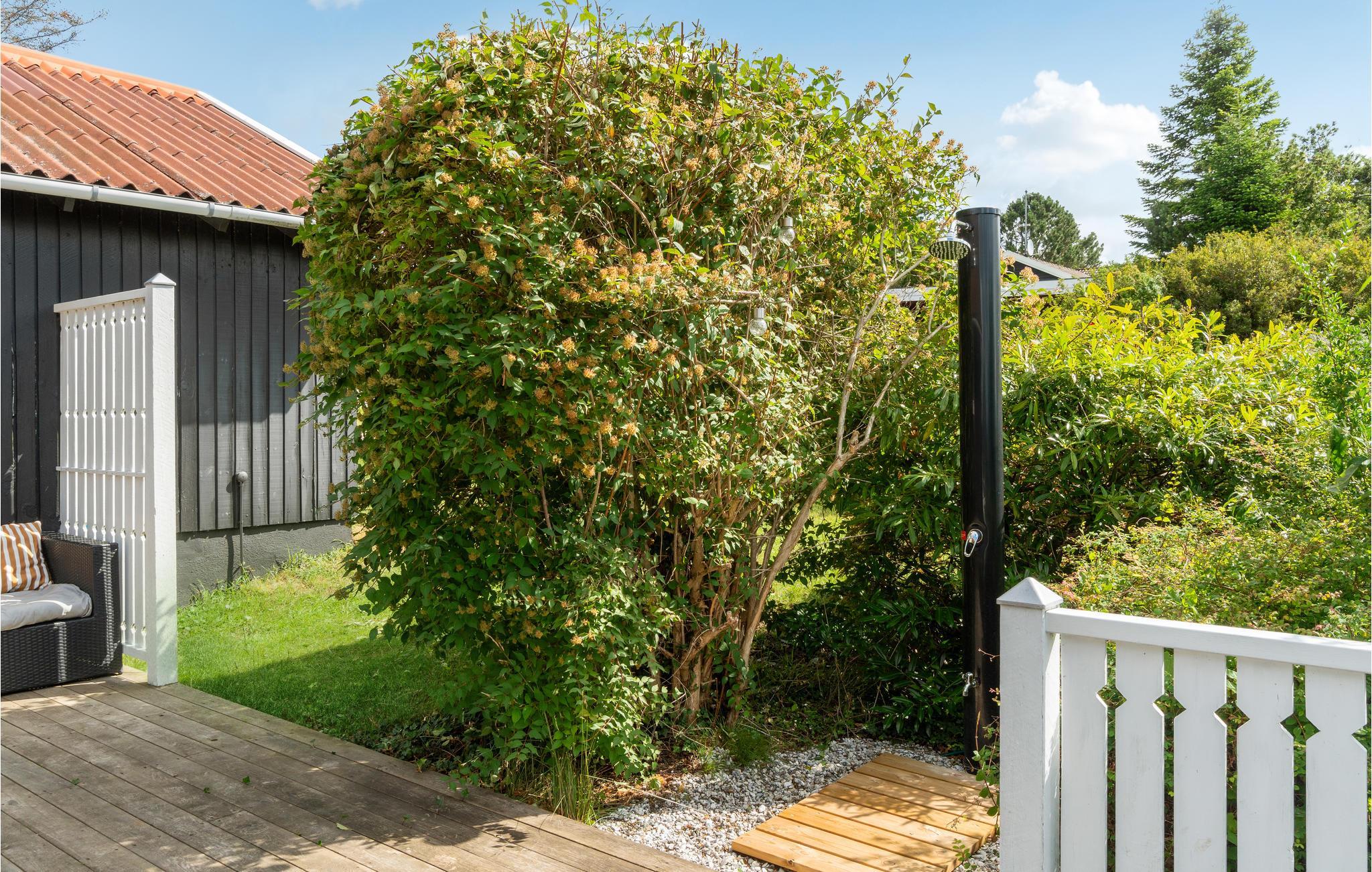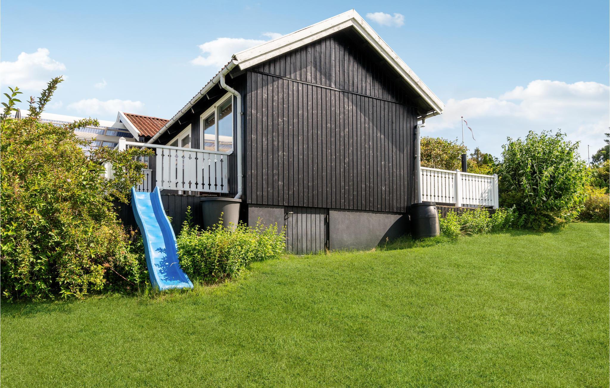 Udendørs finder I flere træterrasser, hvoraf den ene har en rutsjebane direkte ned i haven – et sikkert hit for alle børn. På terrassen står havemøbler, grill og parasol til rådighed, og her er også et overdækket område, så grillmiddagen kan nydes ude, uanset vejret. Haven har masser af plads til leg og spil, og de yngste vil få mange timer til at gå, blandt andet i sandkassen.