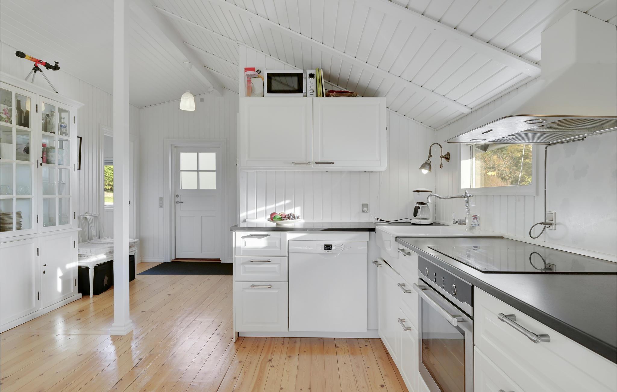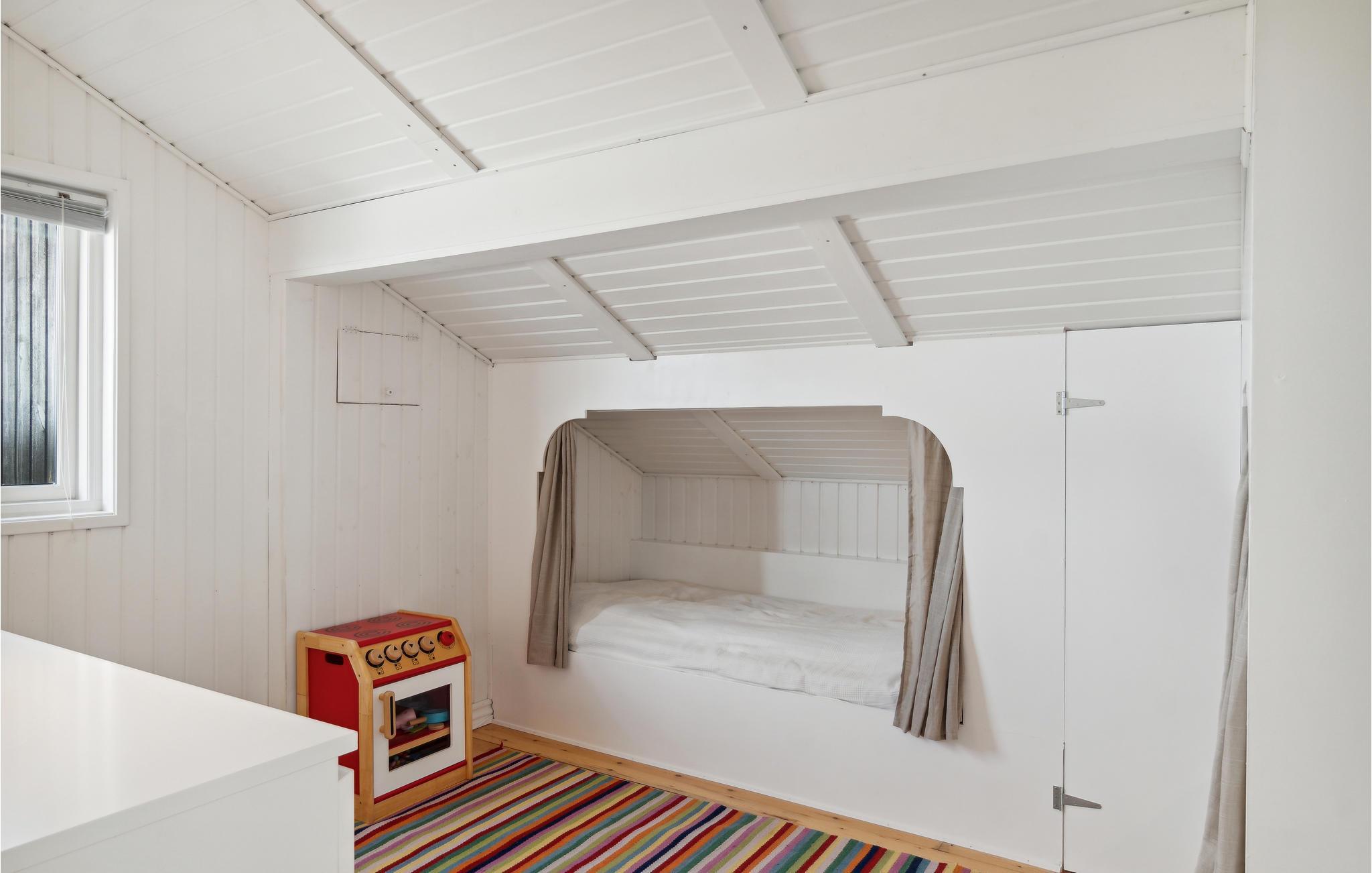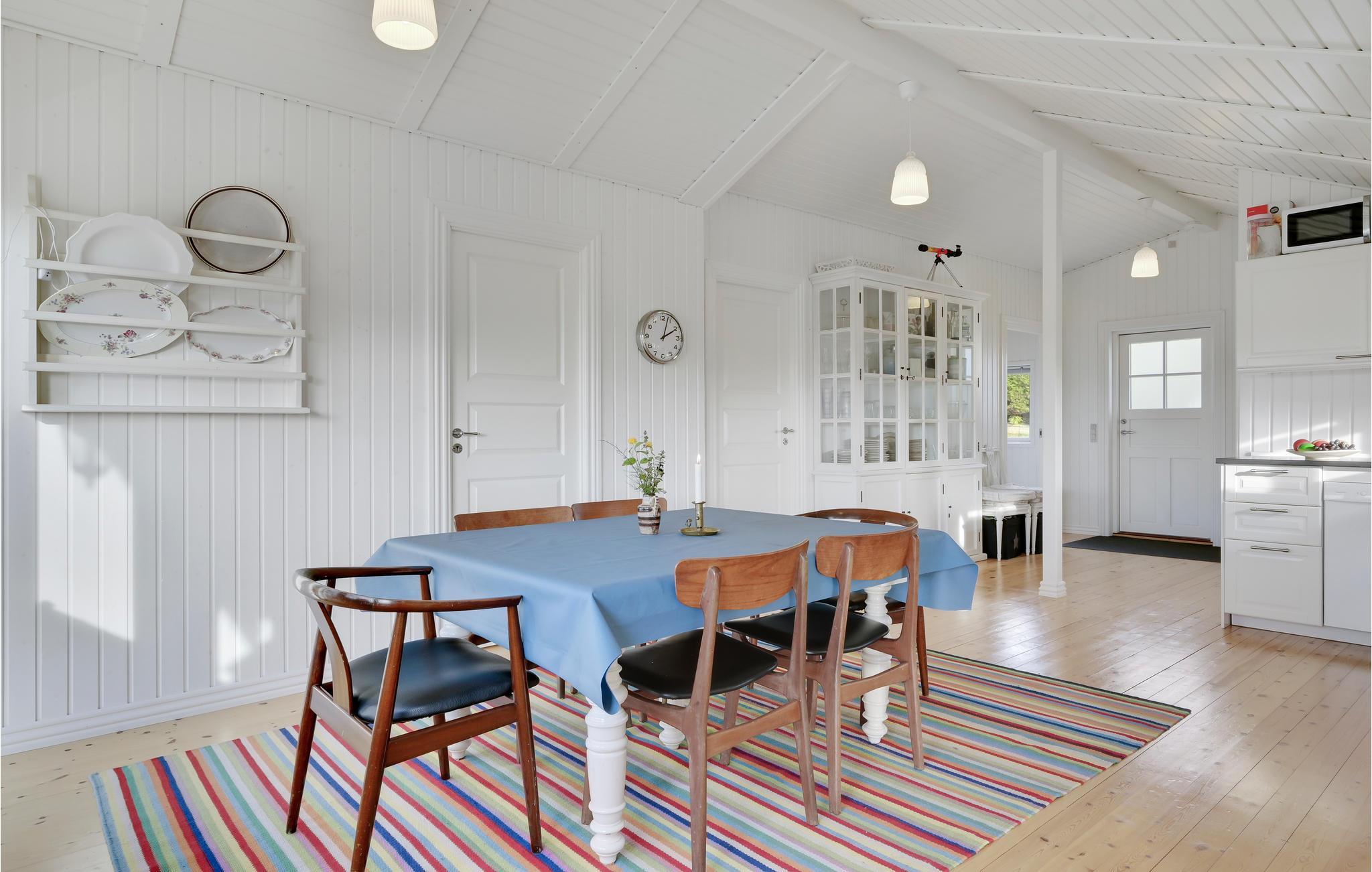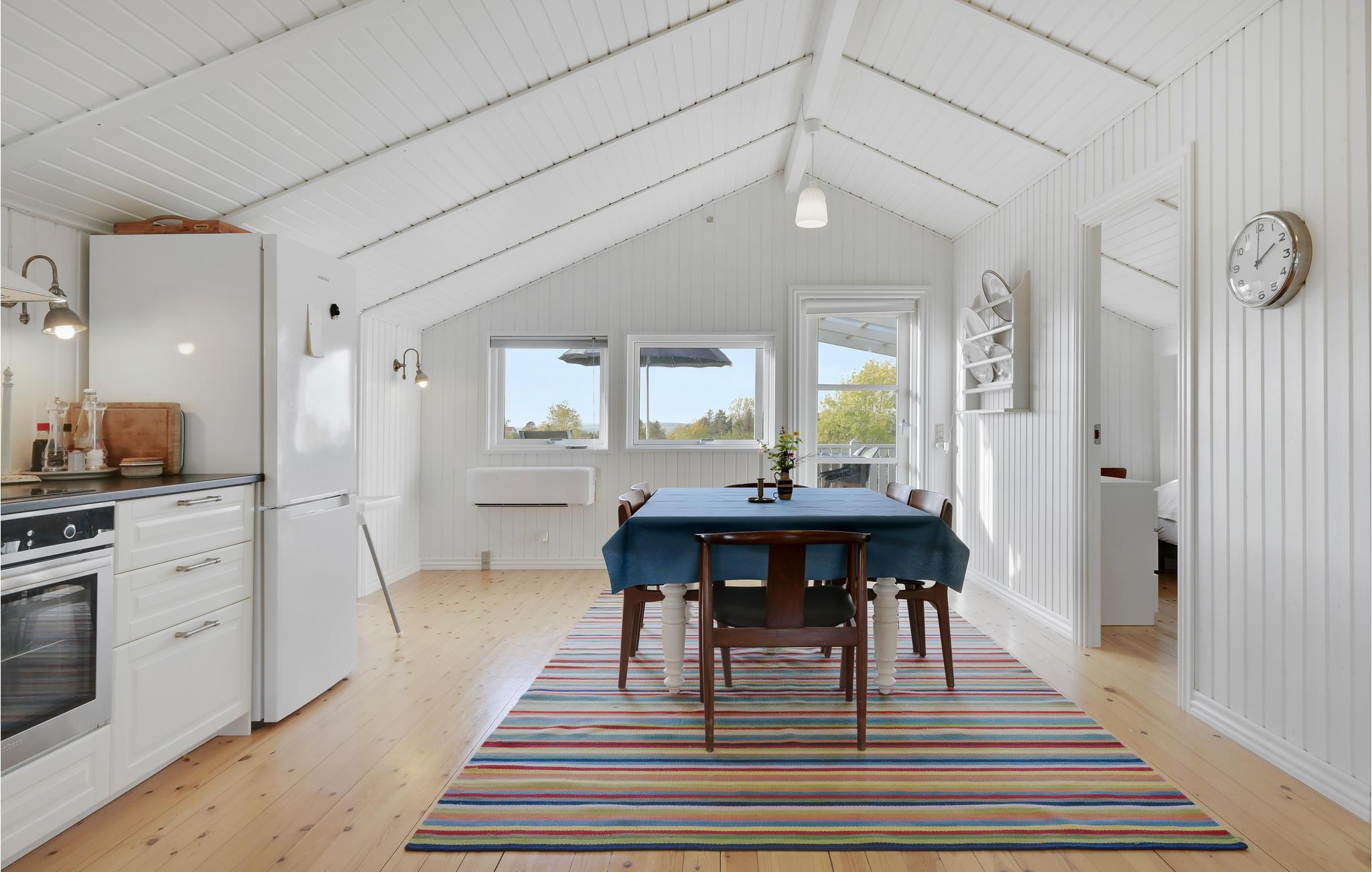 Glæd jer til at holde ferie i dette fine hus, med lyse rum og moderne indretning i flere plan. Spisestuen ligger i forlængelse af køkkenet og indbyder til mange hyggelige stunder med familien. Herfra er der et par trin ned til opholdsstuen, med brændeovn, lænestole og en blød sofa hvorfra I kan nyde udsigten over det smukke landskab.
